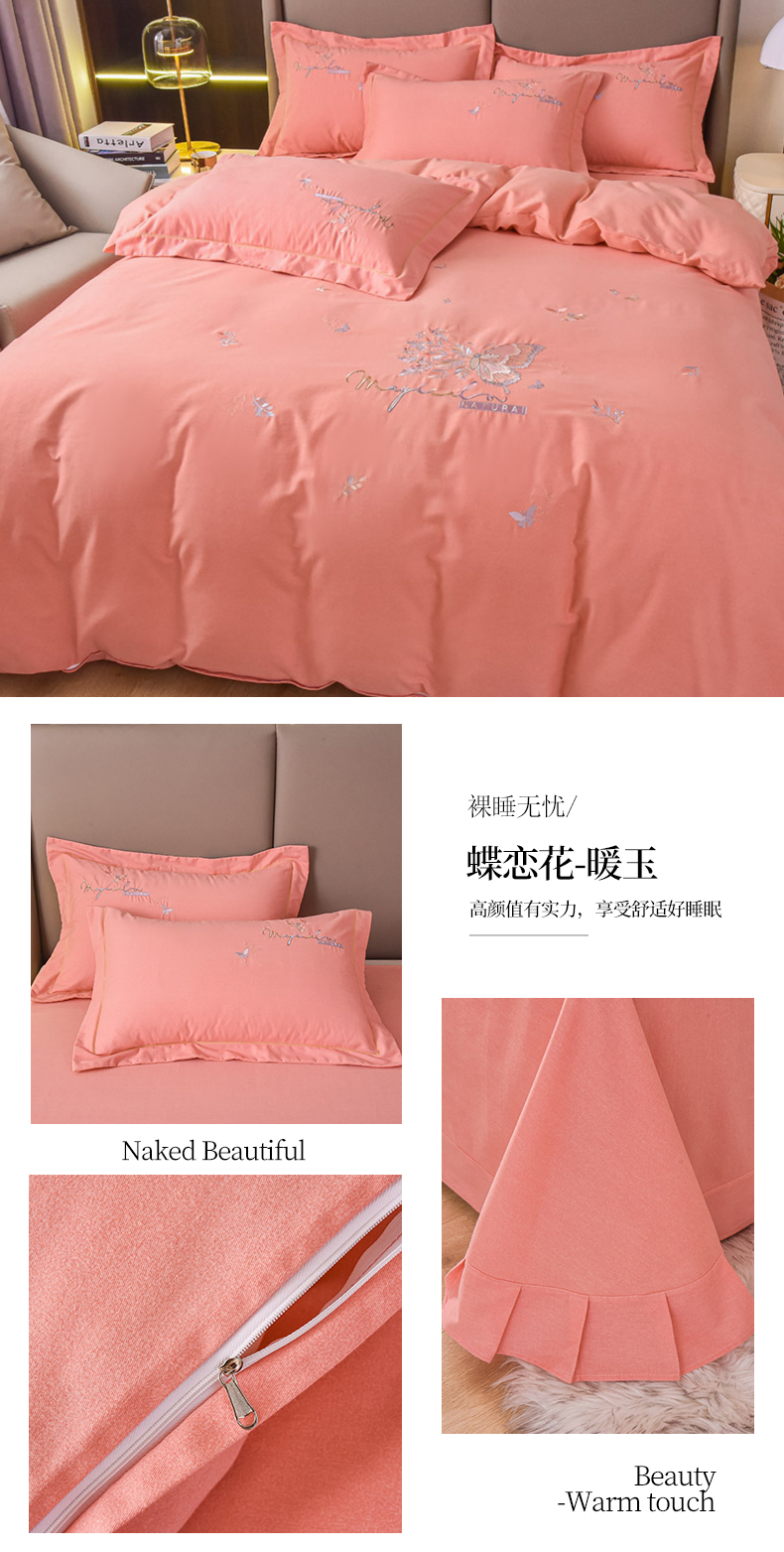 当前位置: 91家纺网 > 商品网购 > 床品套件 > 四件套 > 其它四件套 > 艾迪尚家纺 2025新款纯色生态磨毛绣花四件套 蝶恋花-暖玉
