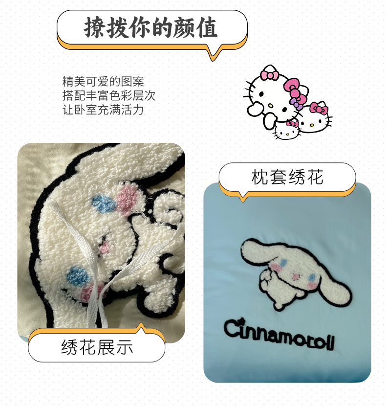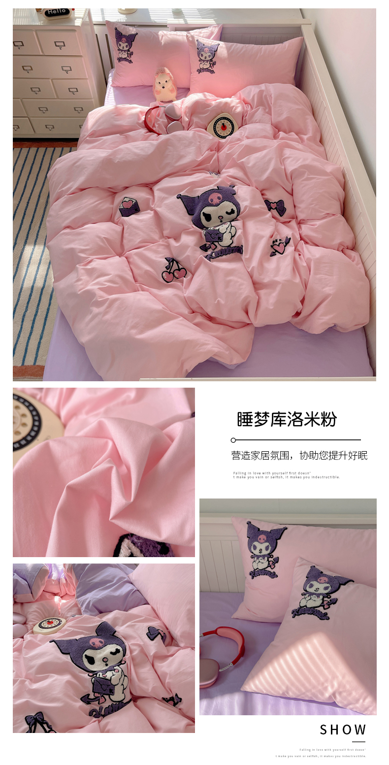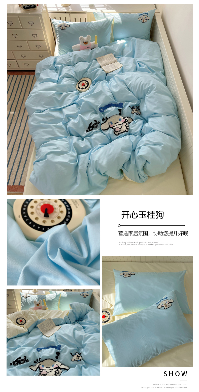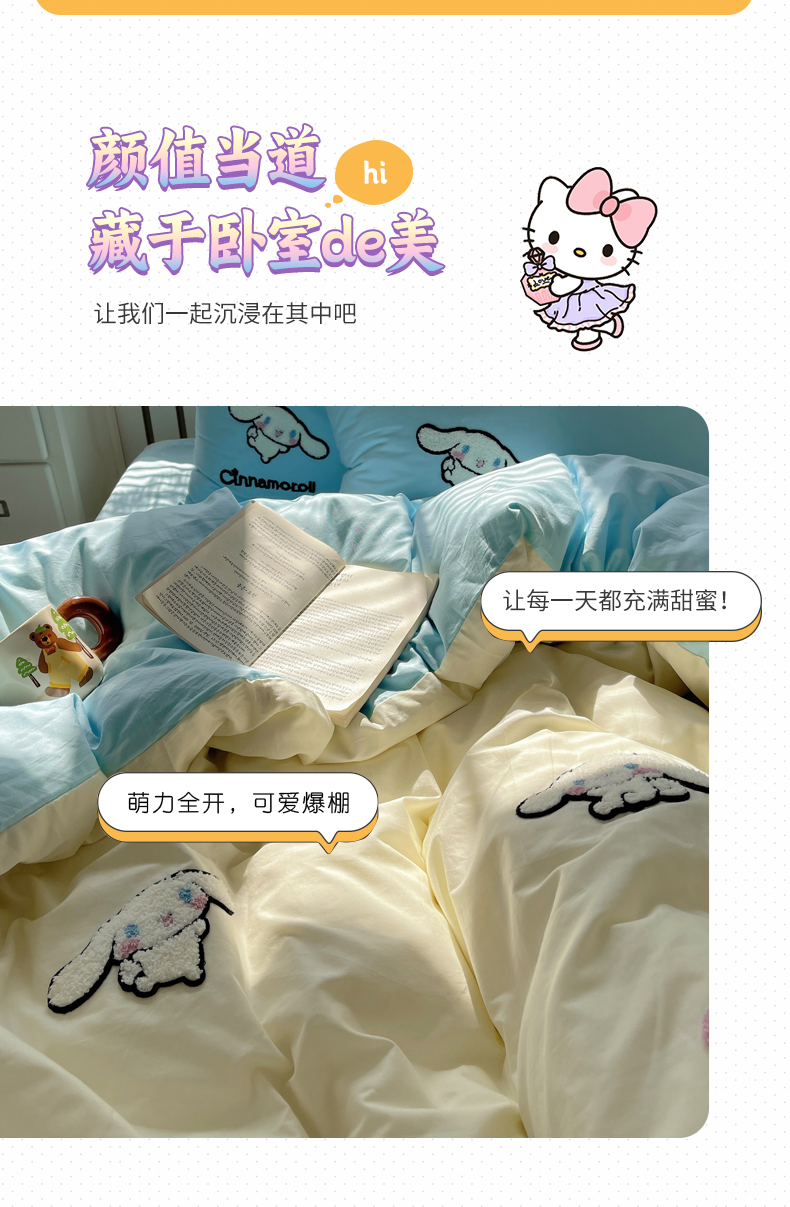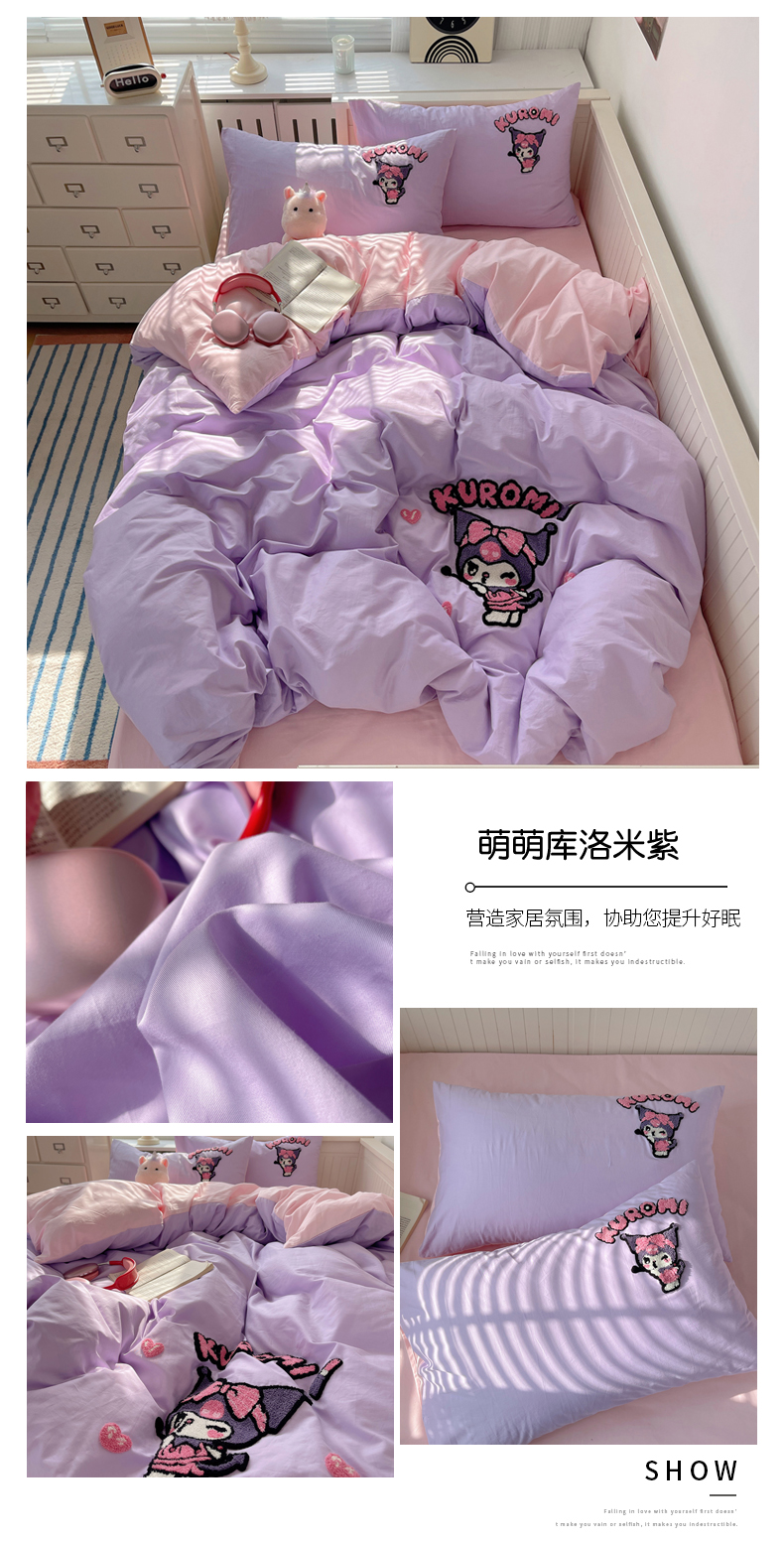 (总)金爱家 2025新款A类三丽鸥正版授权云柔水洗棉兔毛贴布绣刺绣软糯系列四件套,云柔水洗棉-贴布绣粉格KT,云柔水洗棉-贴布绣蓝格布丁狗,云柔水洗棉-贴布绣蓝格KT,云柔水洗棉-贴布绣美乐蒂,云柔水洗棉-贴布绣萌萌布丁狗,云柔水洗棉-贴布绣你好大耳狗,云柔水洗棉-贴布绣紫格库洛米