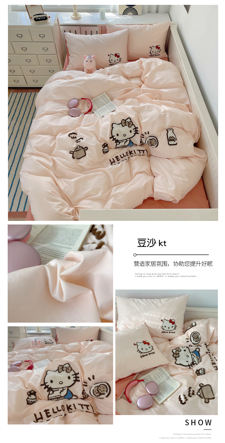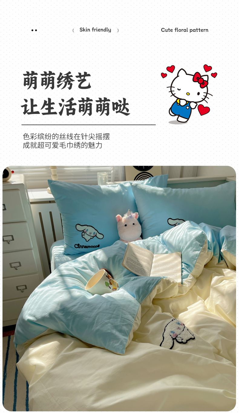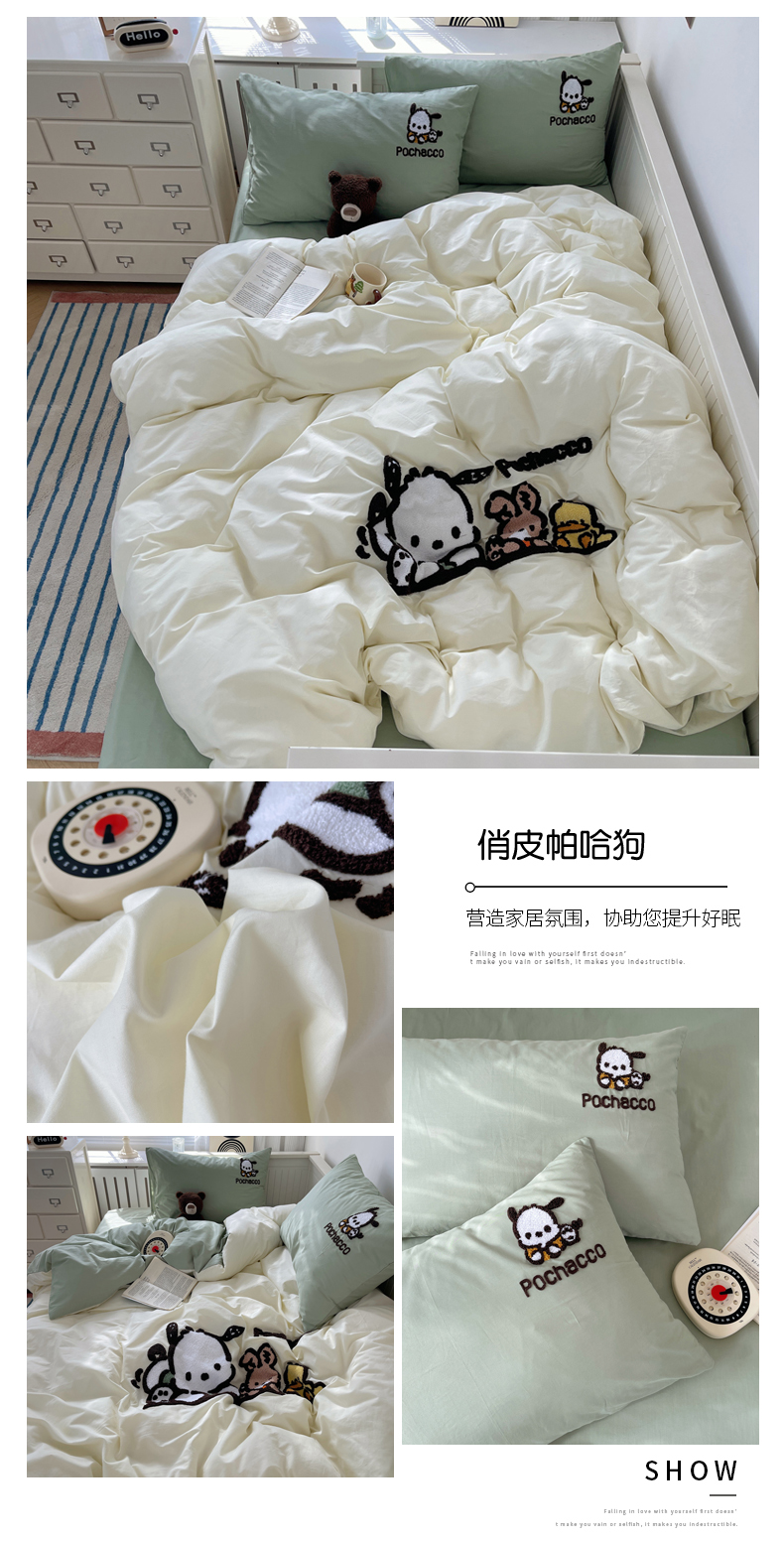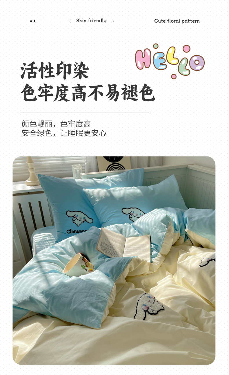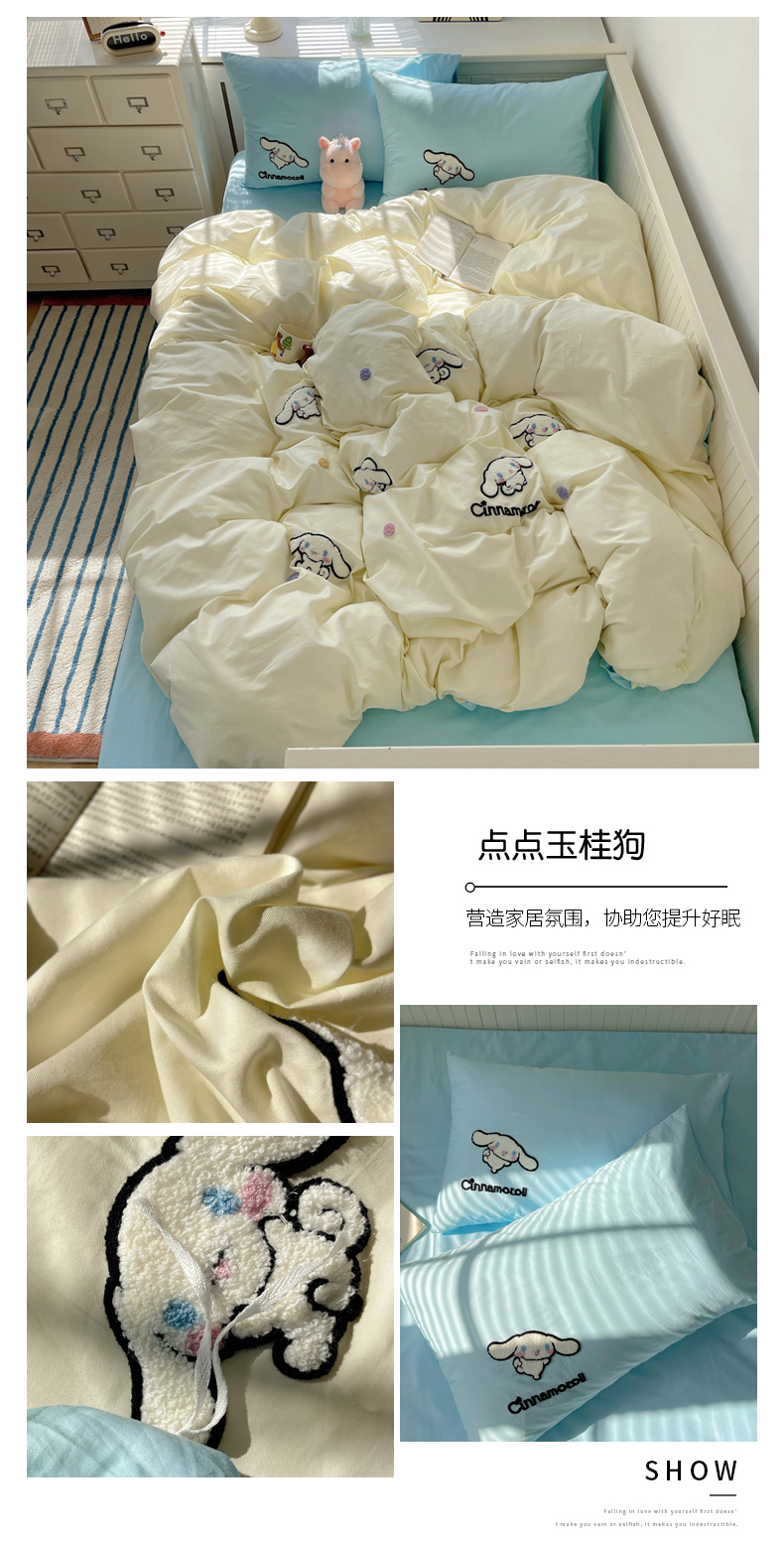 (总)金爱家 2025新款A类三丽鸥正版授权云柔水洗棉兔毛贴布绣刺绣软糯系列四件套,云柔水洗棉-贴布绣粉格KT,云柔水洗棉-贴布绣蓝格布丁狗,云柔水洗棉-贴布绣蓝格KT,云柔水洗棉-贴布绣美乐蒂,云柔水洗棉-贴布绣萌萌布丁狗,云柔水洗棉-贴布绣你好大耳狗,云柔水洗棉-贴布绣紫格库洛米