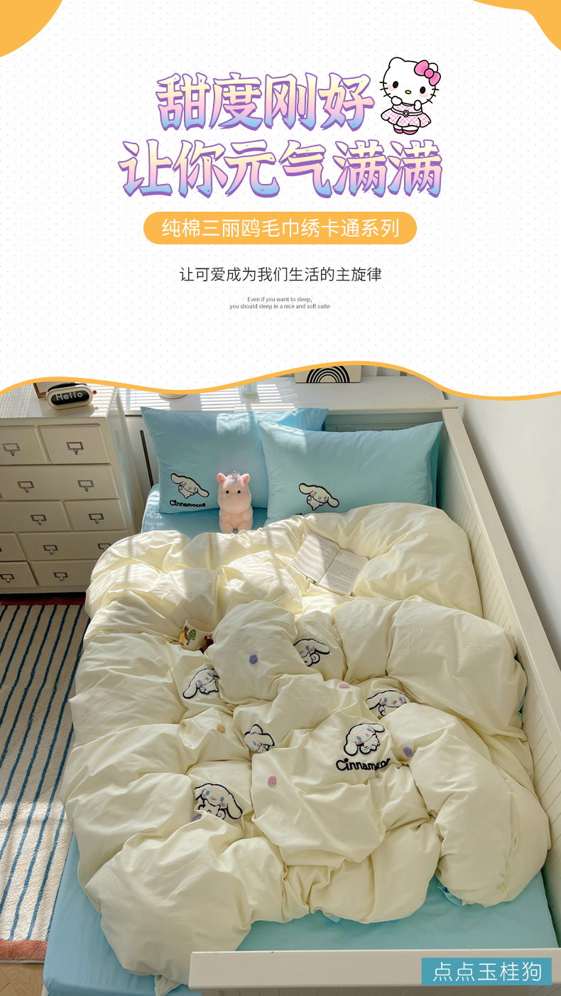 (总)金爱家 2026新款纯棉三丽鸥毛巾绣四件套,棉毛巾绣-布丁恰恰狗,棉毛巾绣-呆萌库洛米,棉毛巾绣-粉格爱心kt,棉毛巾绣-粉红大耳狗,棉毛巾绣-开心大耳狗,棉毛巾绣-萌萌美乐蒂,棉毛巾绣-紫格爱心kt