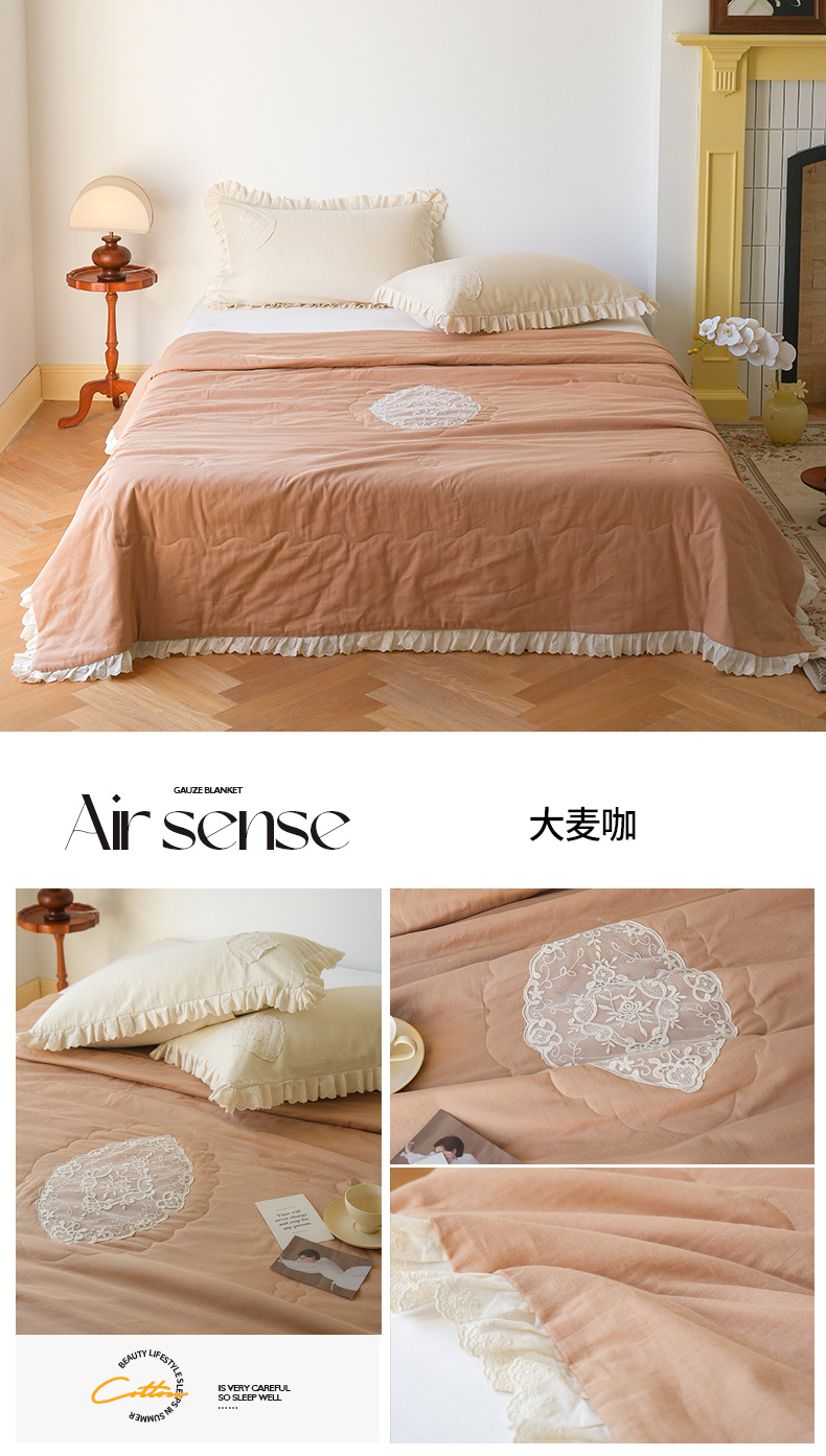 商品名称:菊上家纺 2024新款法式风全棉双层纱夏被床盖四件套 大麦咖