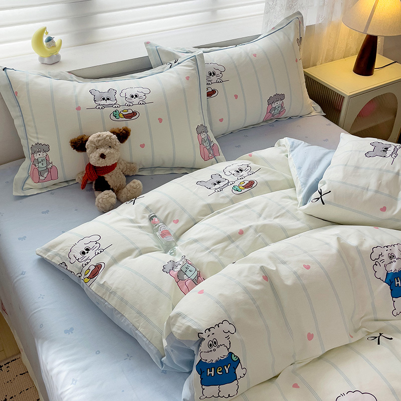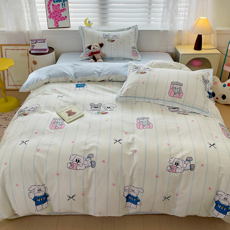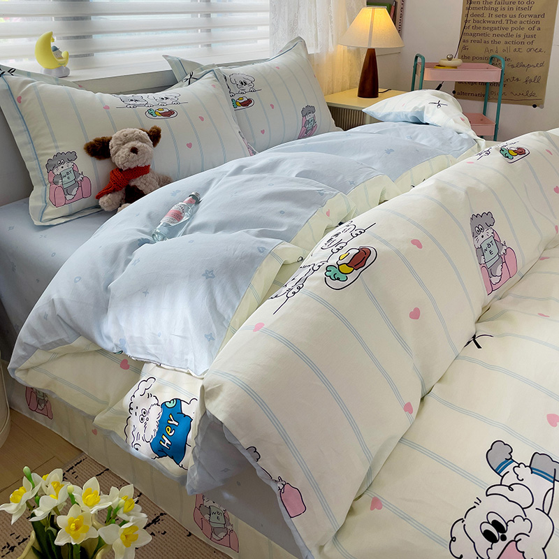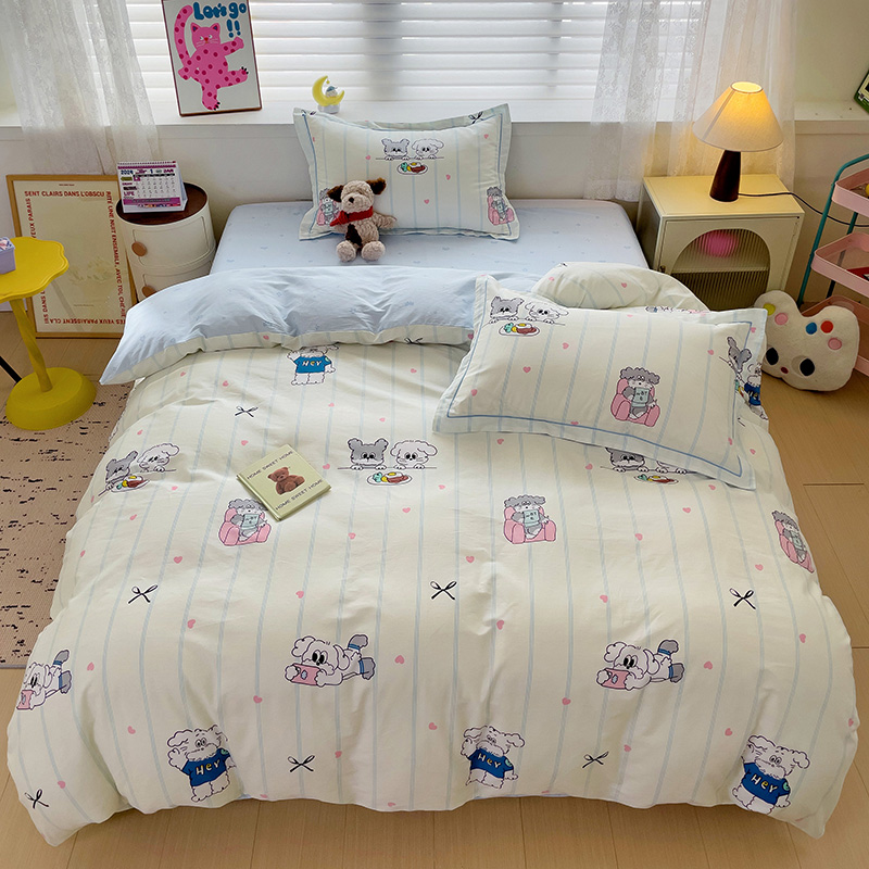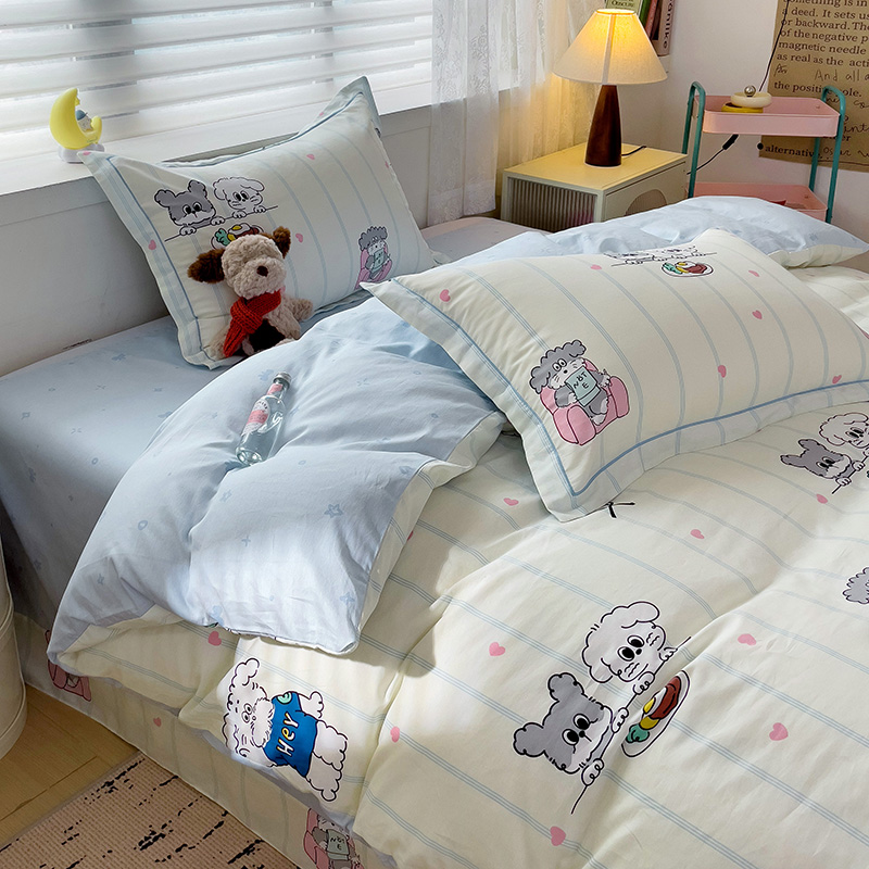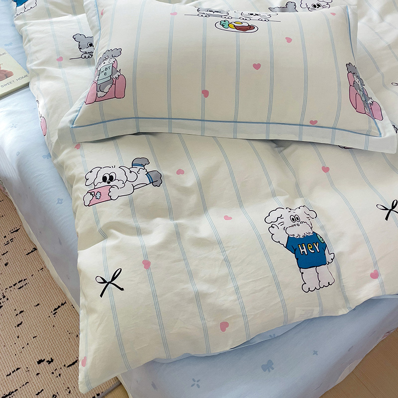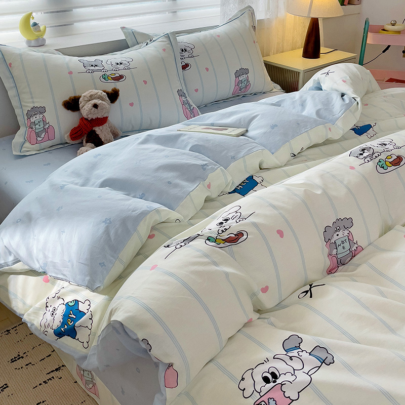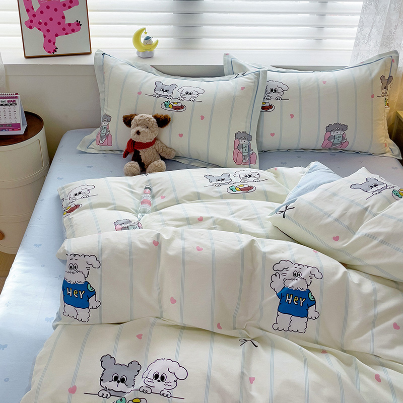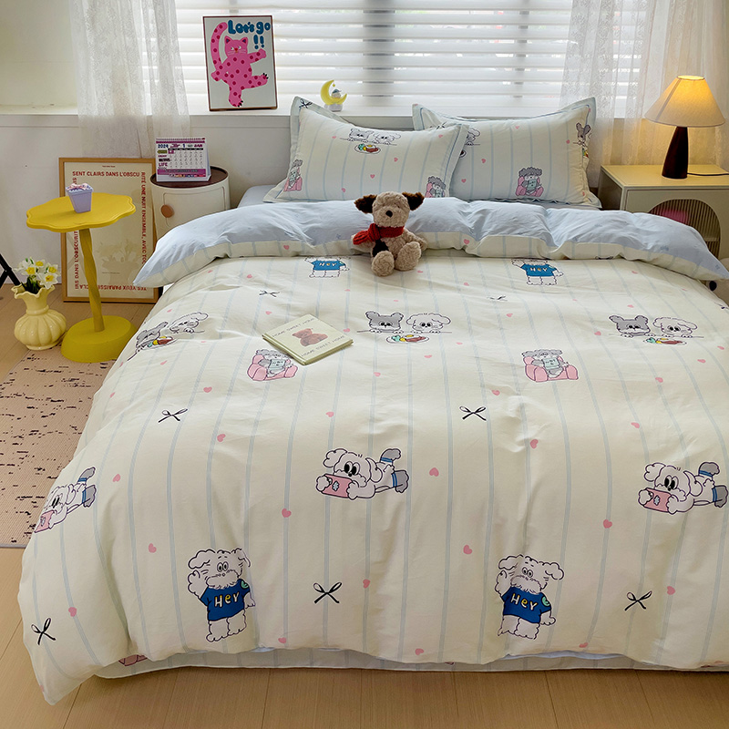 商品名称:乐童 2024新款直播爆款13070纯棉印花吊边款一字绣四件套-第七波 可爱小狗