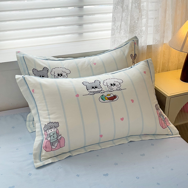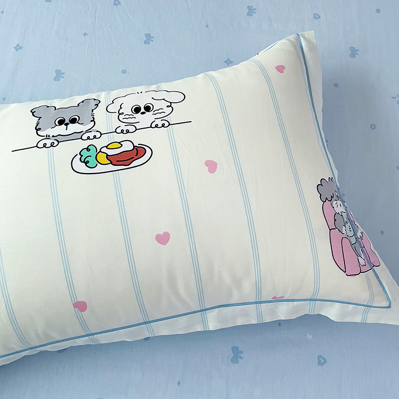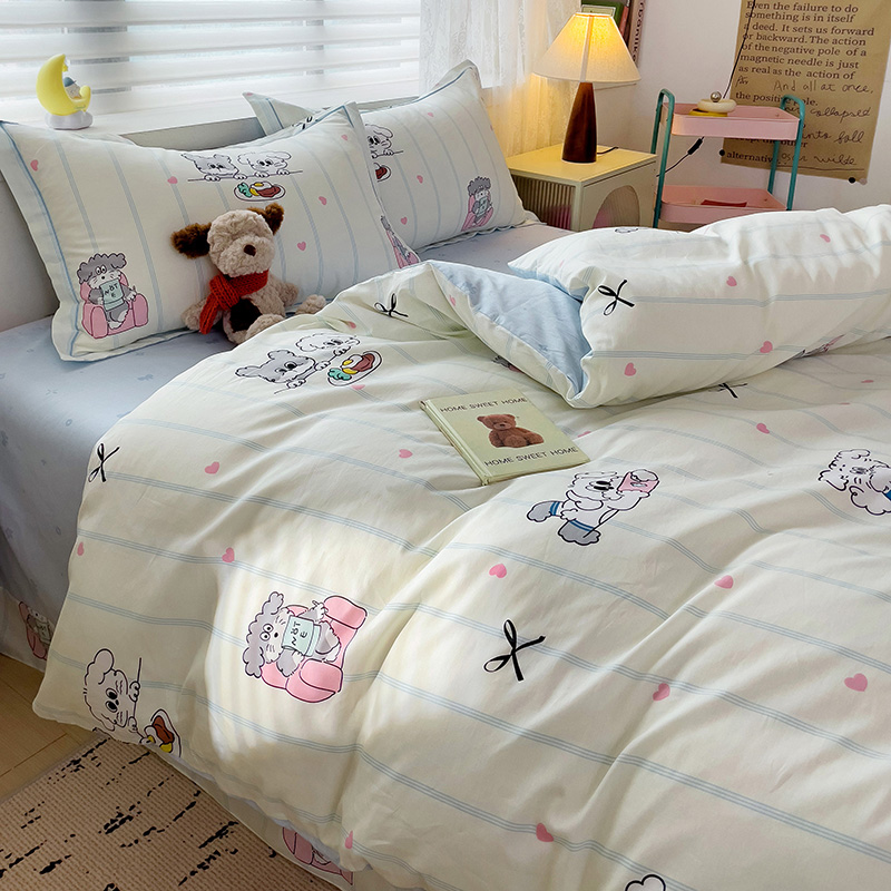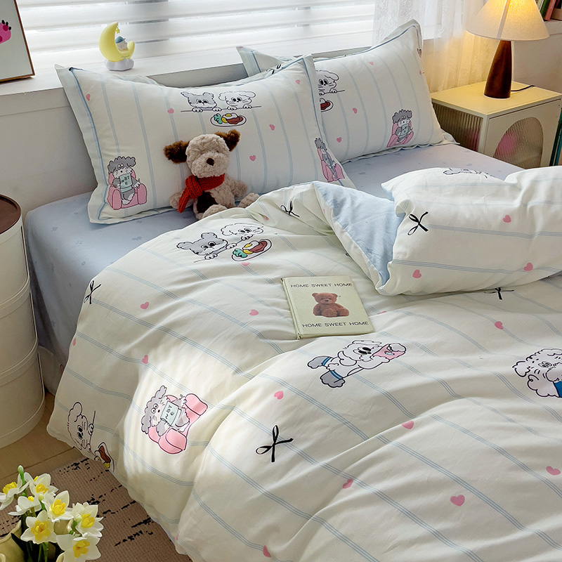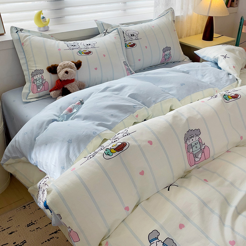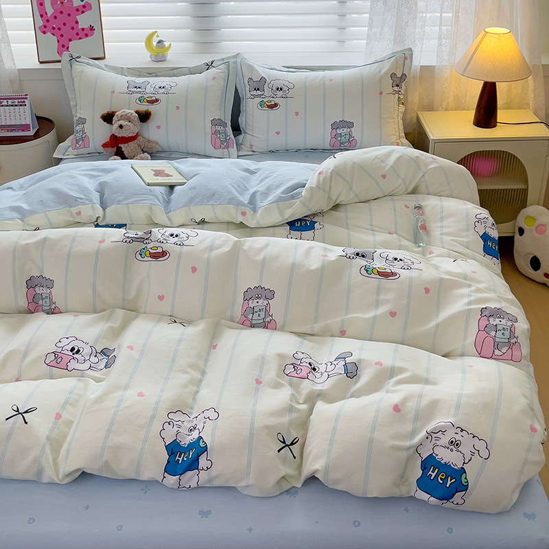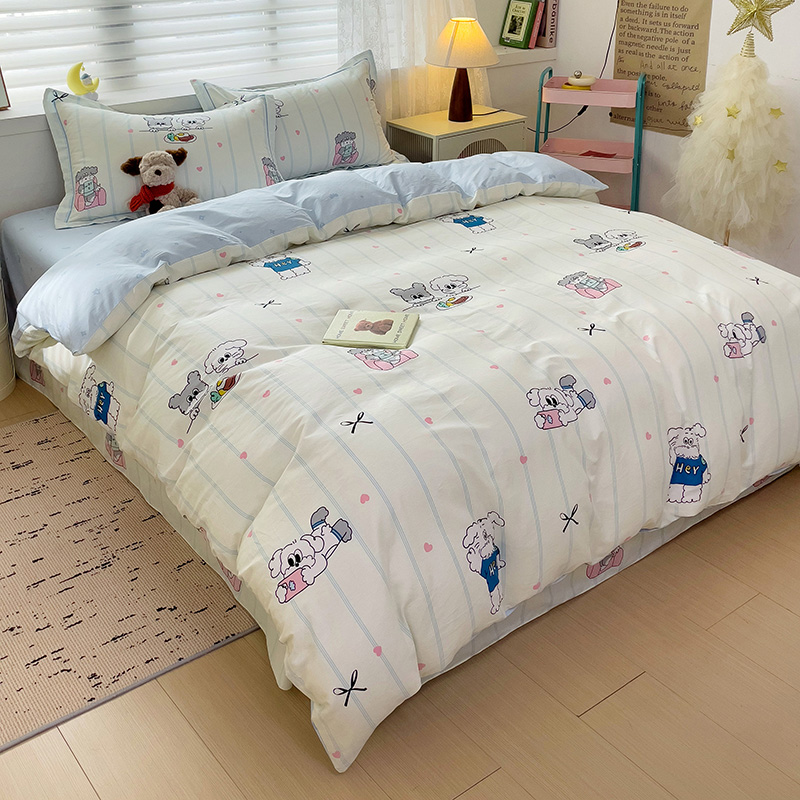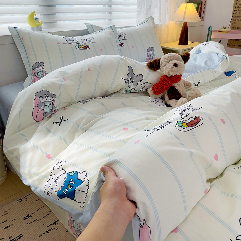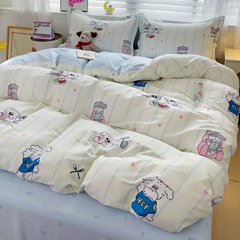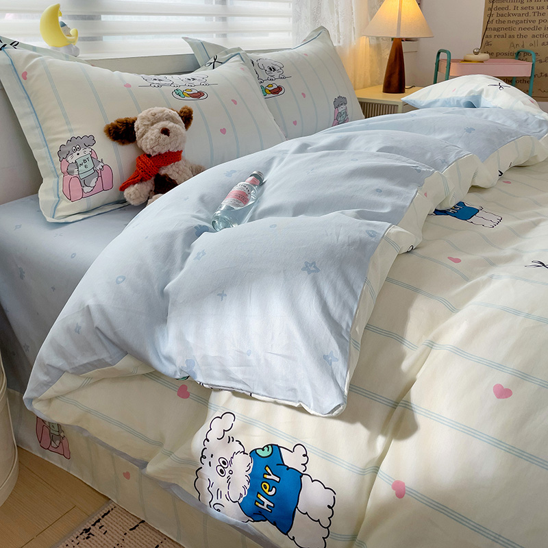 商品名称:乐童 2024新款直播爆款13070纯棉印花吊边款一字绣四件套-第七波 可爱小狗
