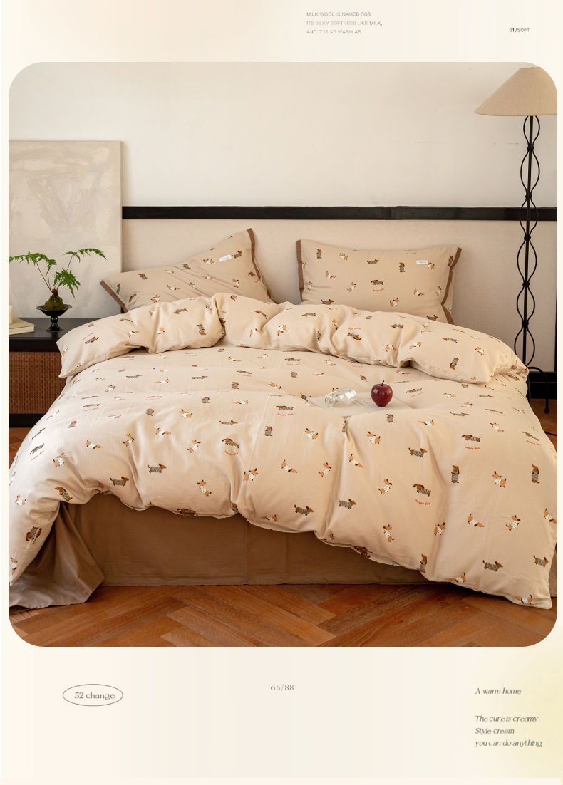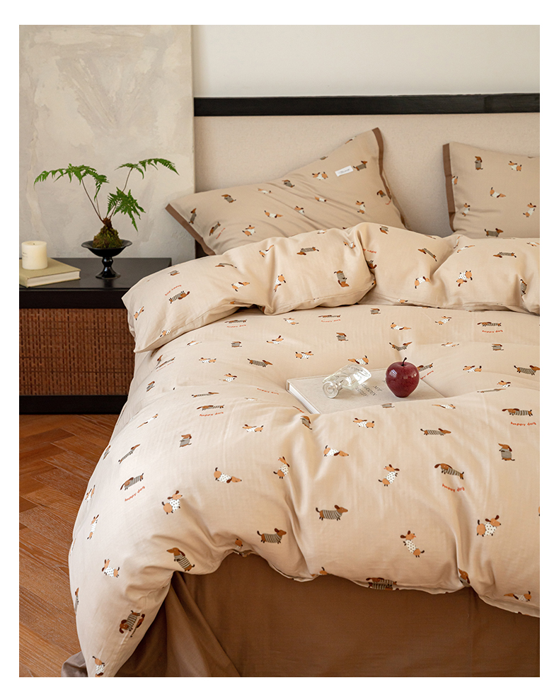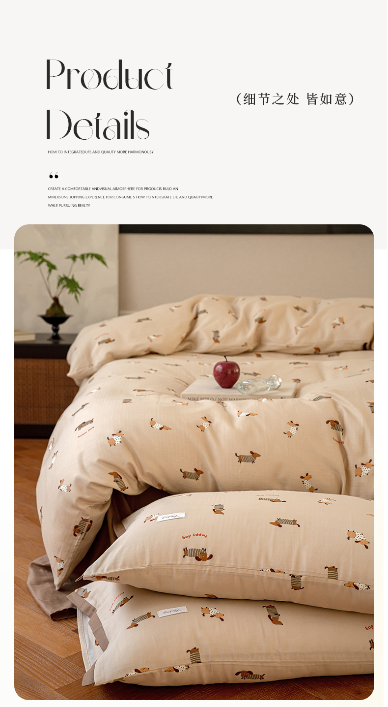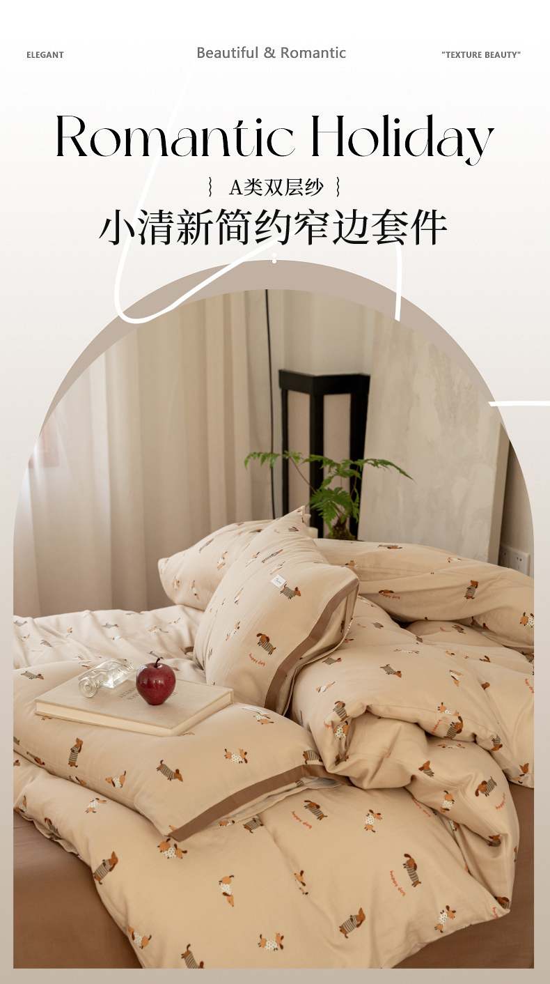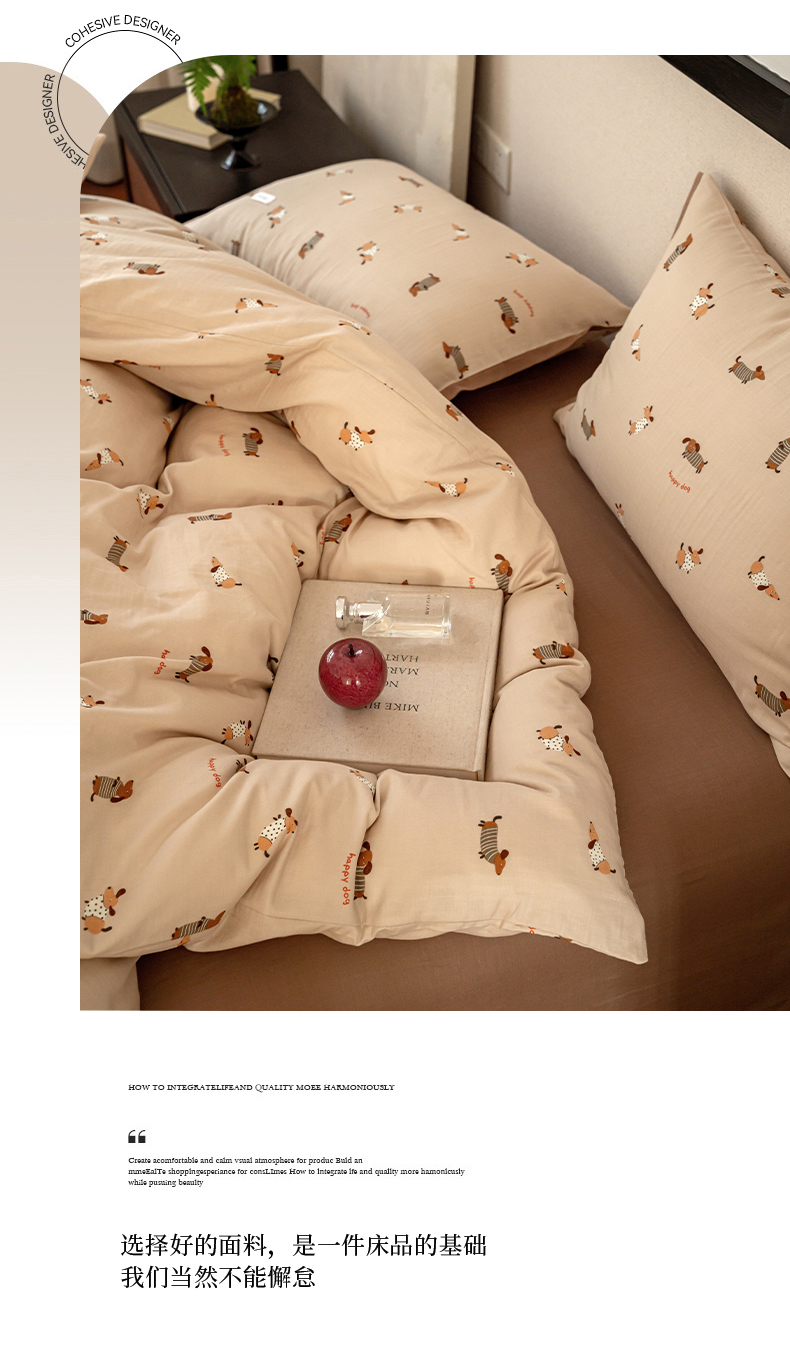商品名称:时光里 2024新款A类全棉双层纱四件套 长耳狗