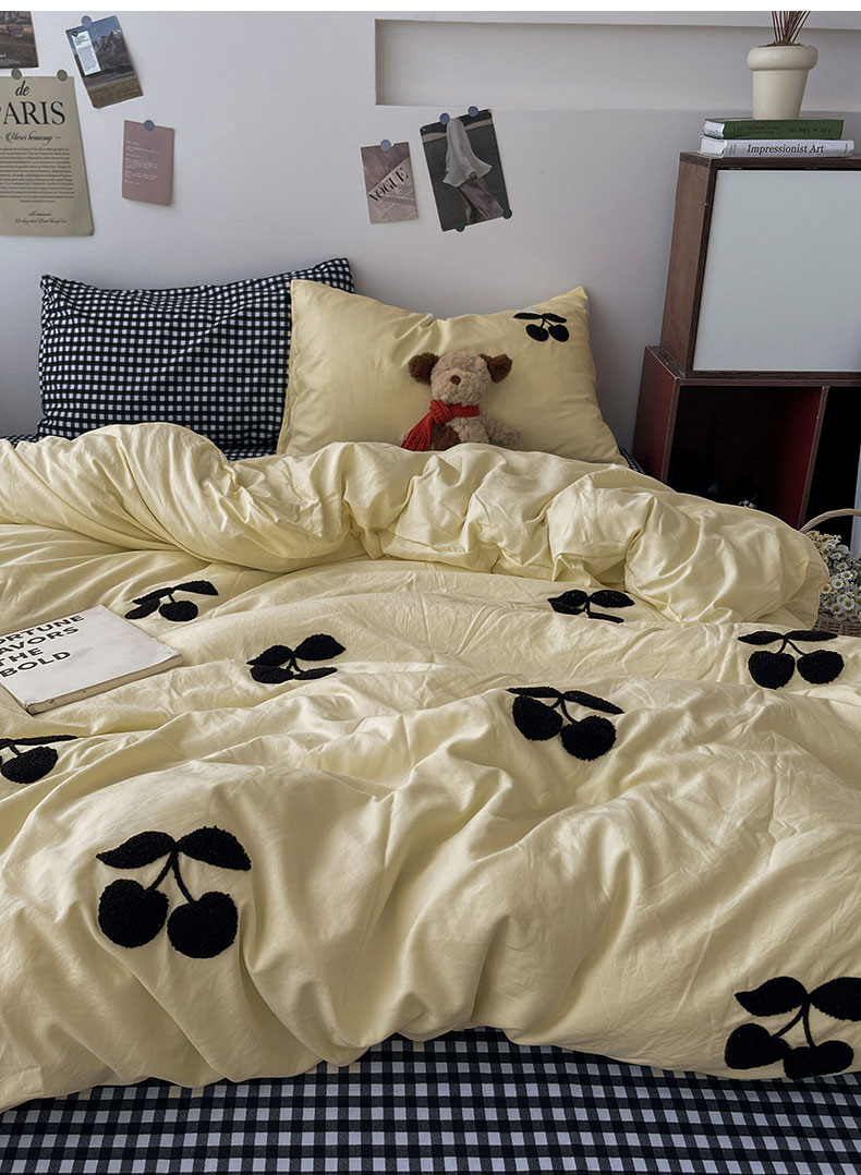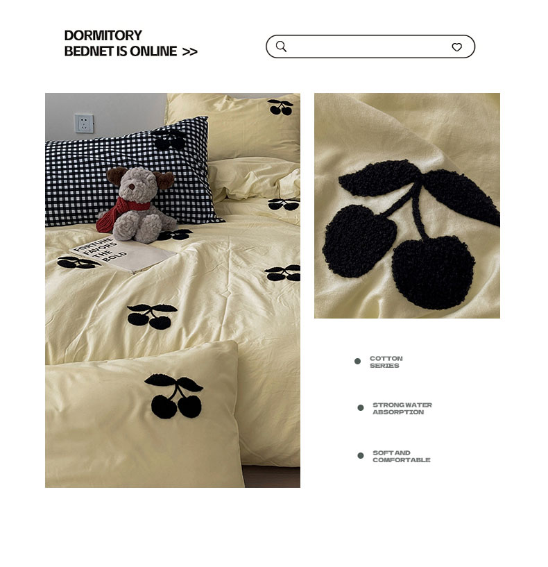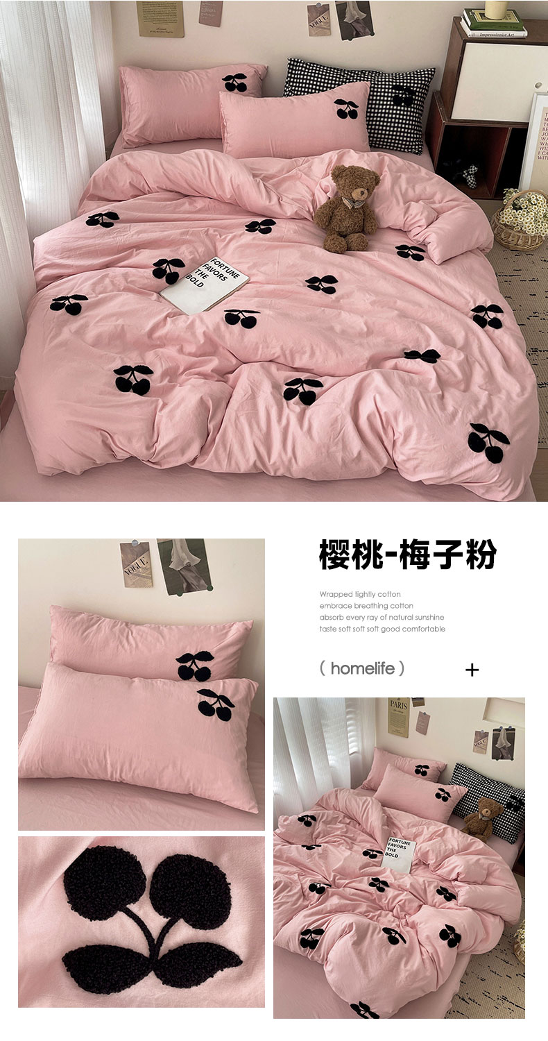 (总)尤米 2024新款可爱樱桃系列水洗棉毛巾绣四件套