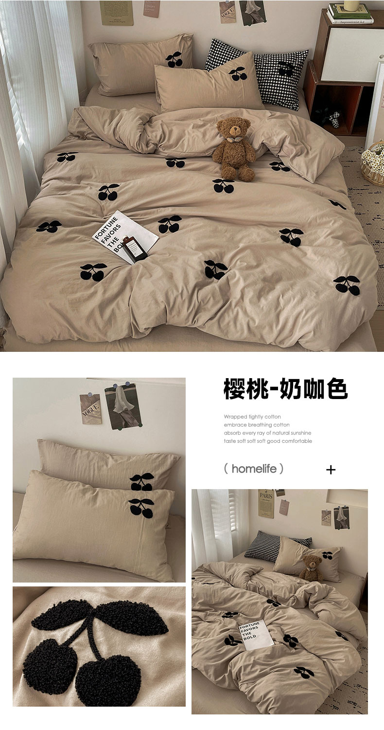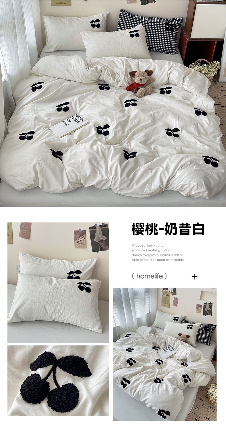 商品名称:(总)尤米 2024新款可爱樱桃系列水洗棉毛巾绣四件套