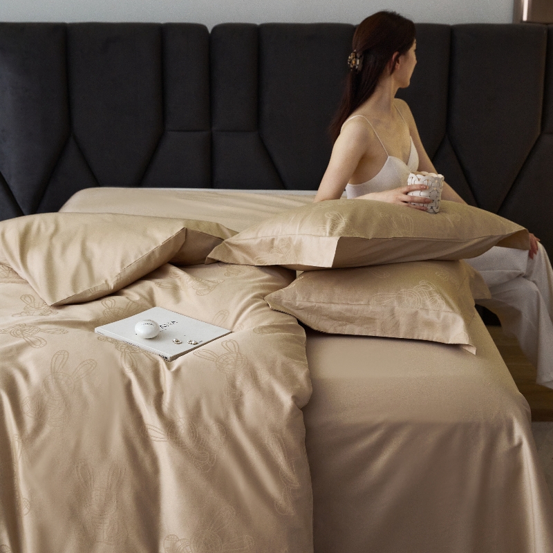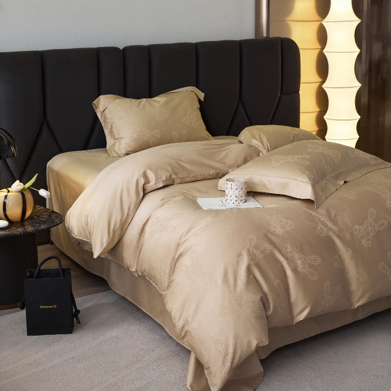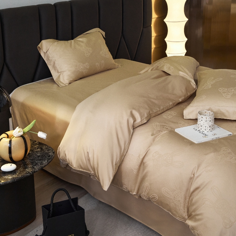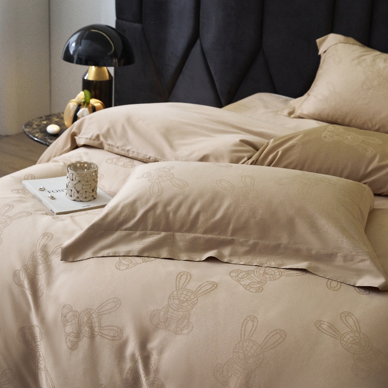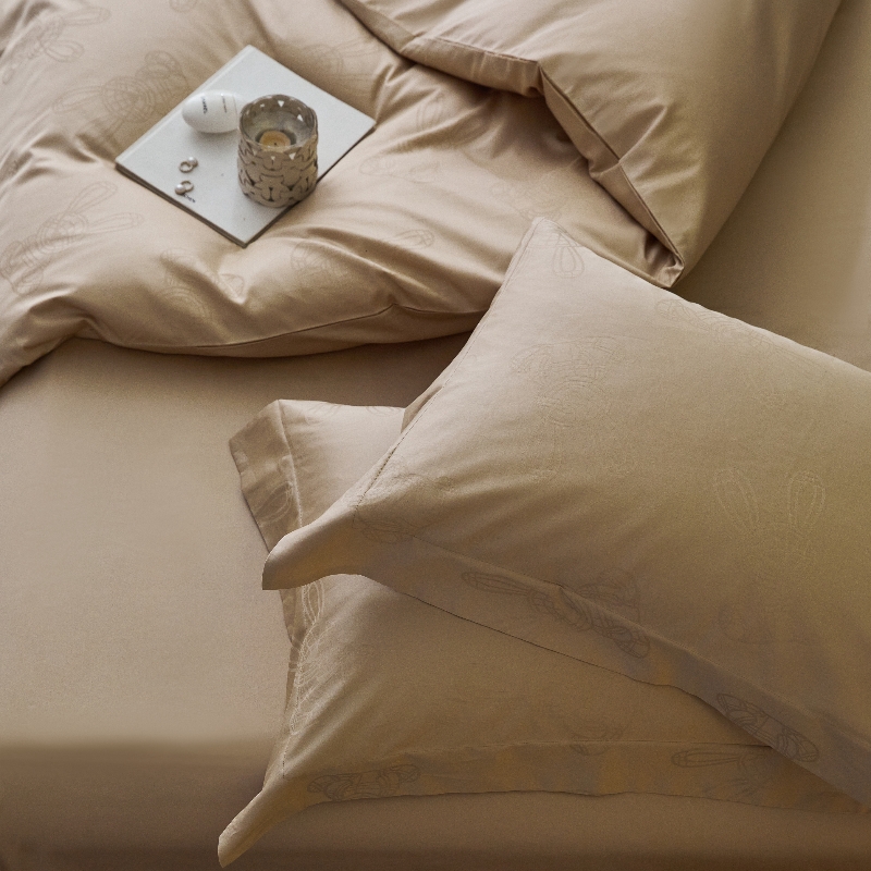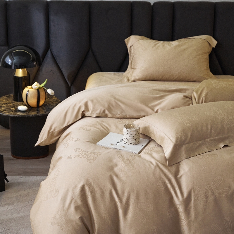 恒尚居 2024新款100支长绒棉提花四件套 欢乐兔-驼色