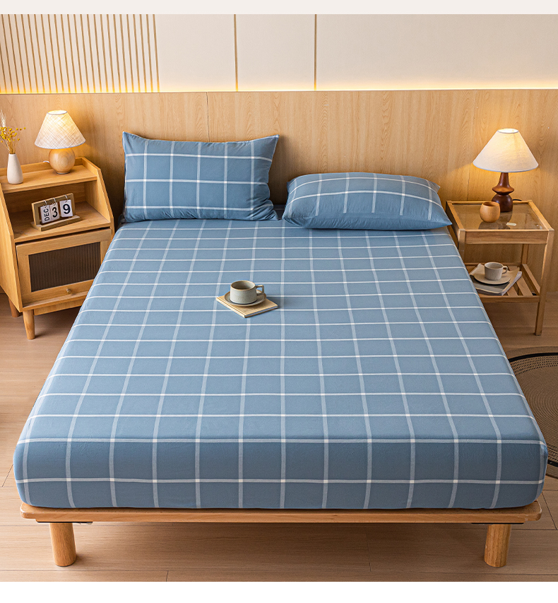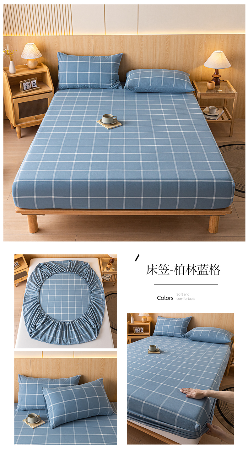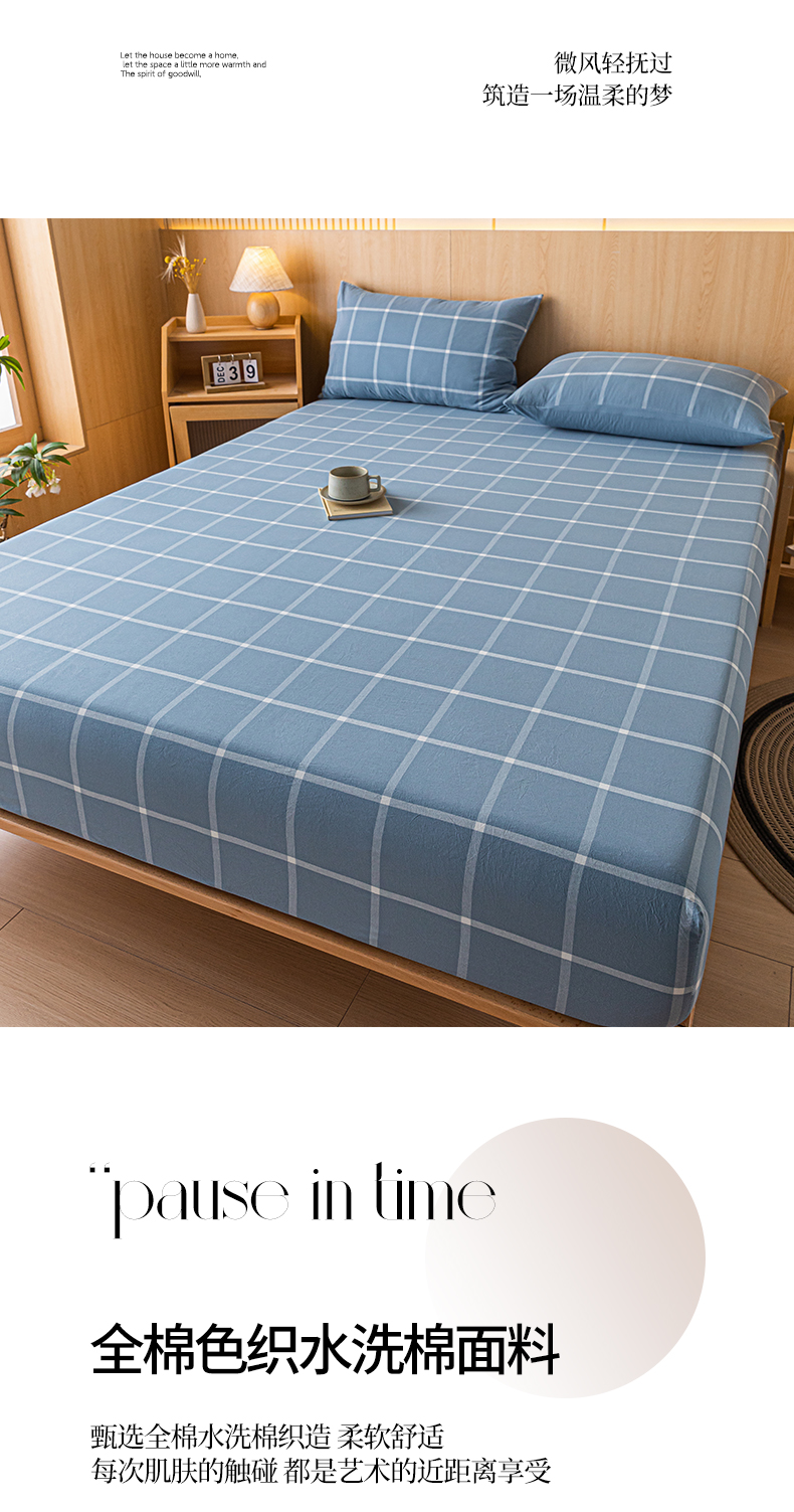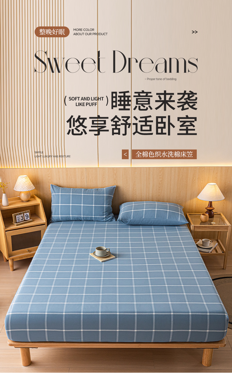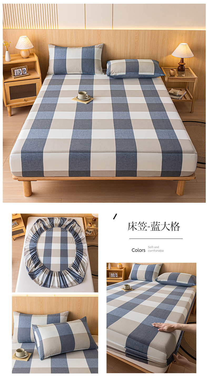 雅居纺家纺 2024新款全棉色织水洗棉床笠 床笠-柏林蓝格