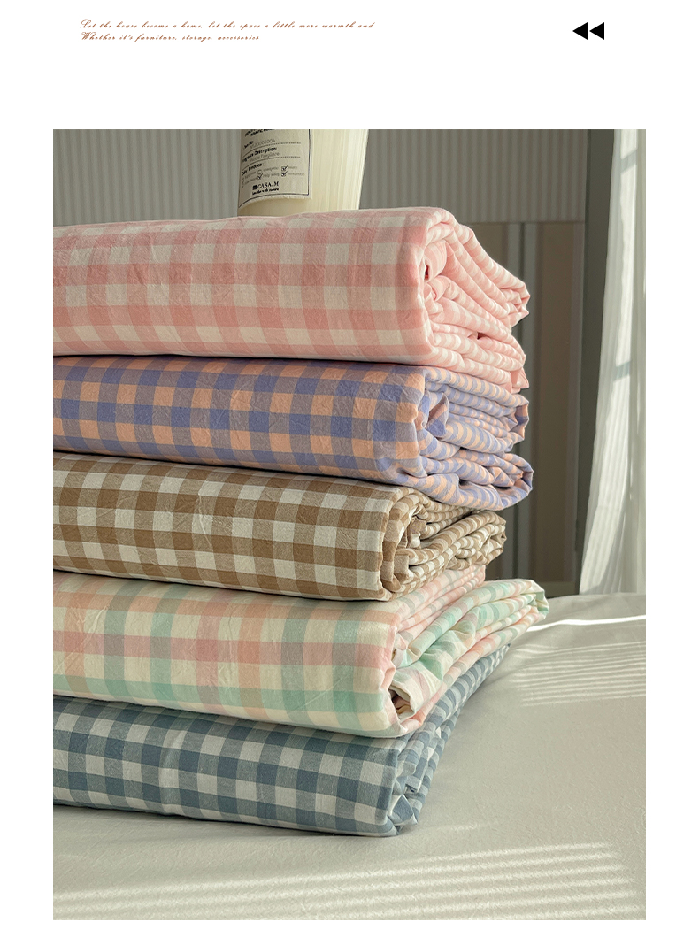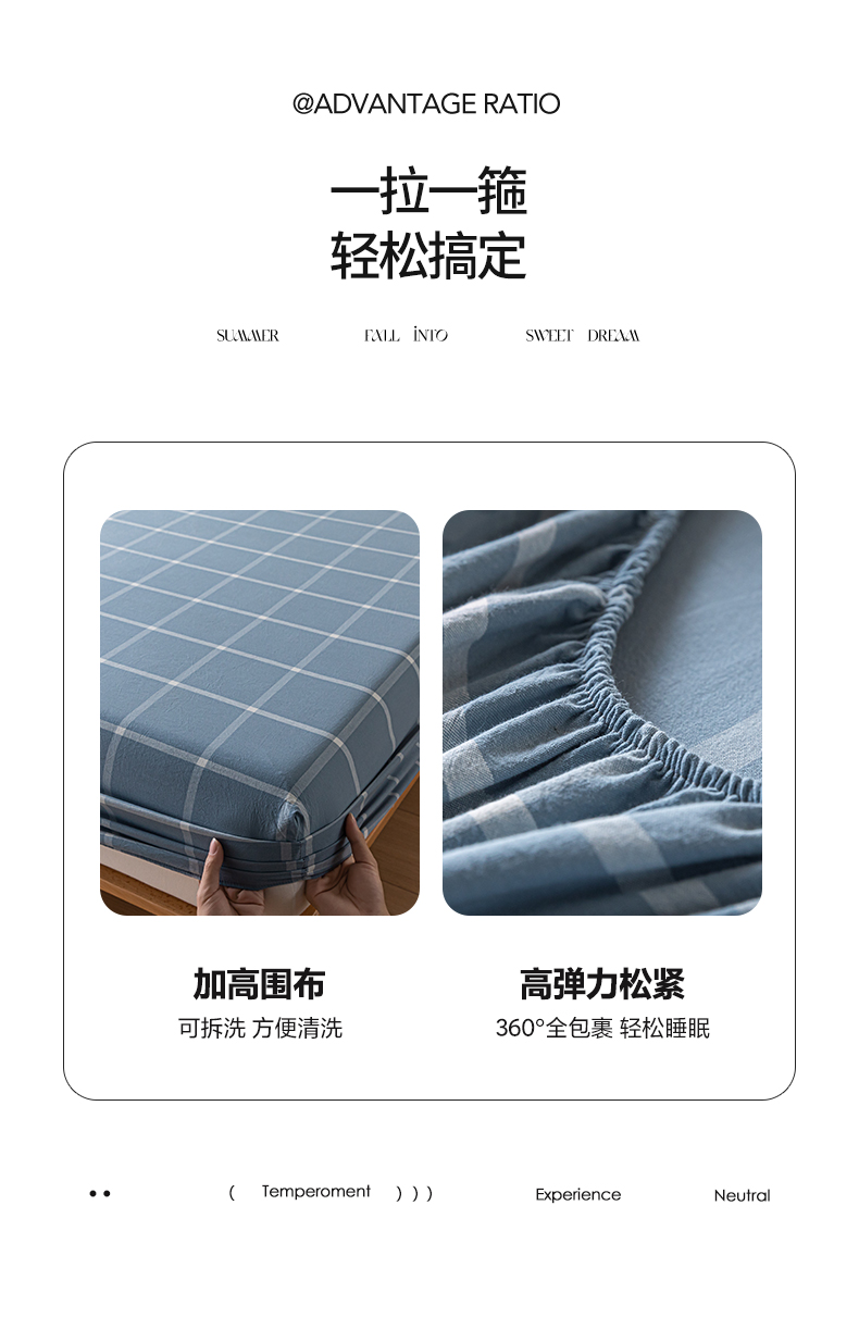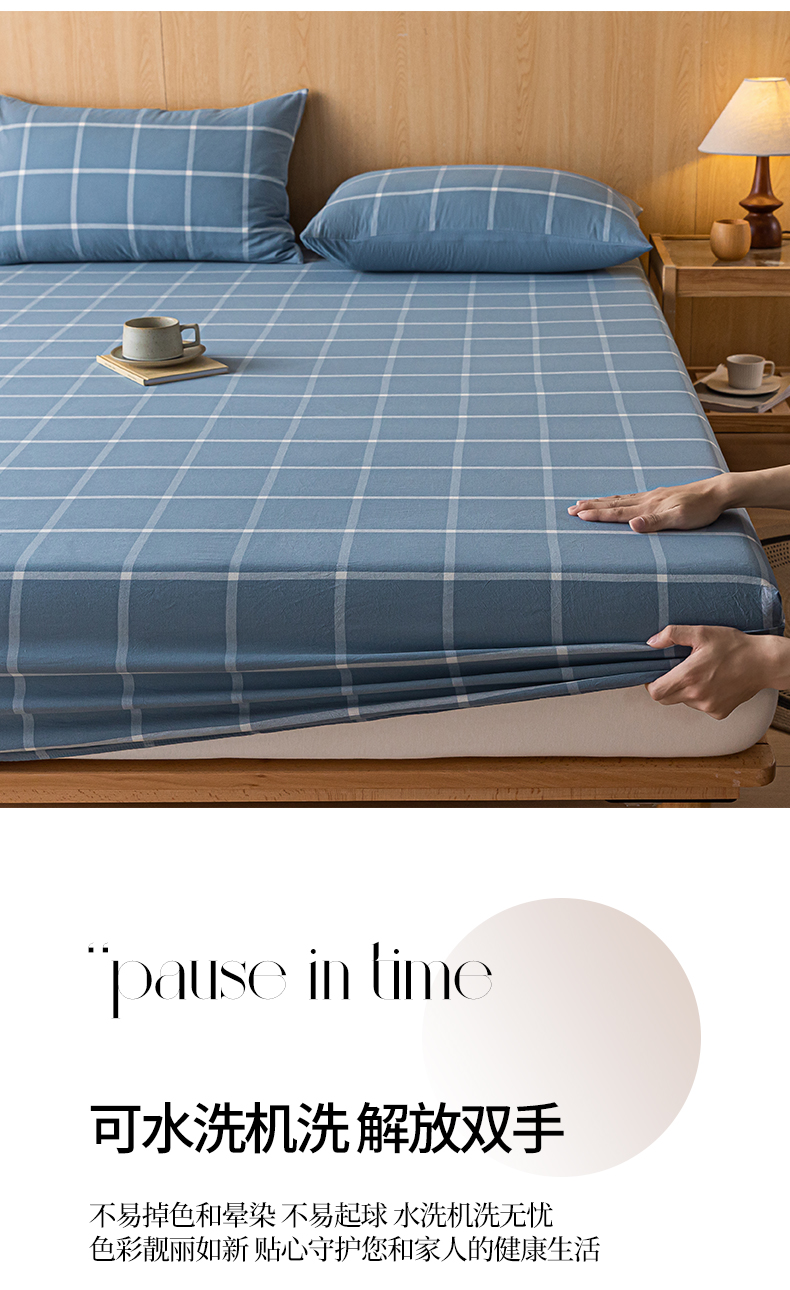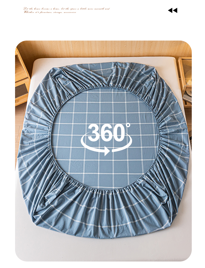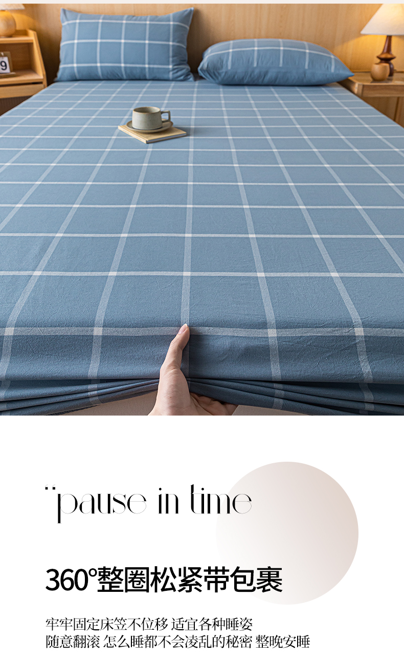 雅居纺家纺 2024新款全棉色织水洗棉床笠 床笠-柏林蓝格