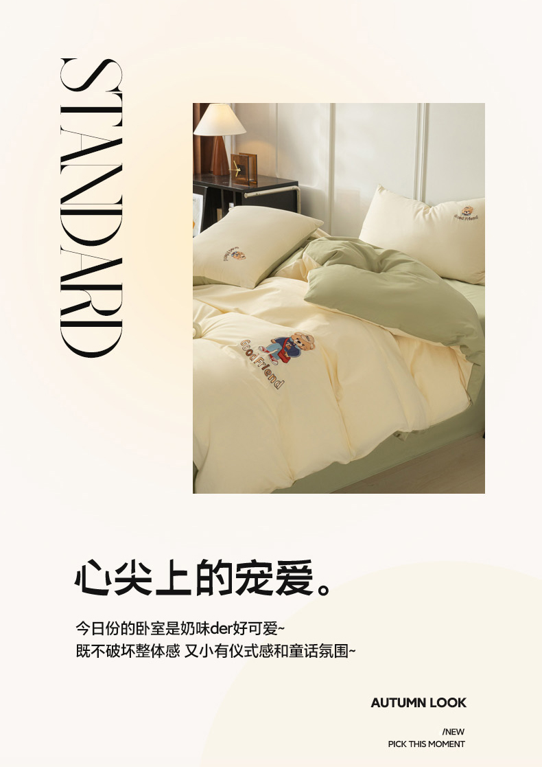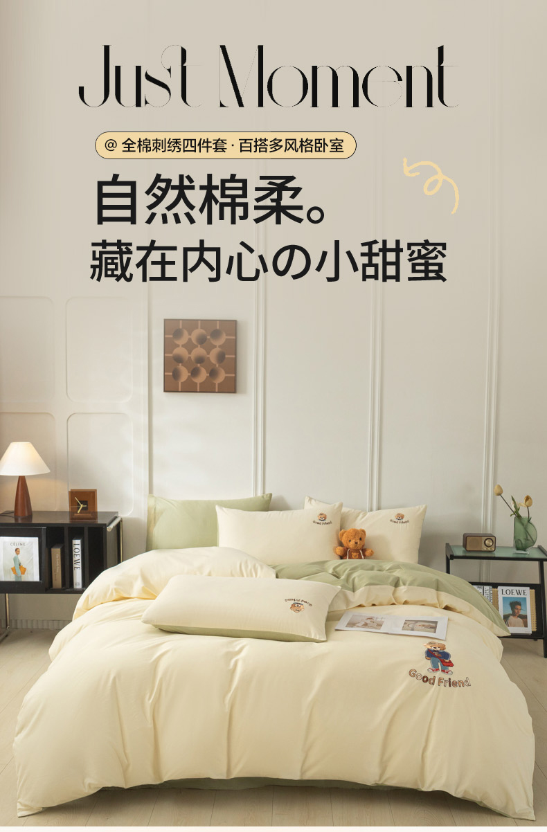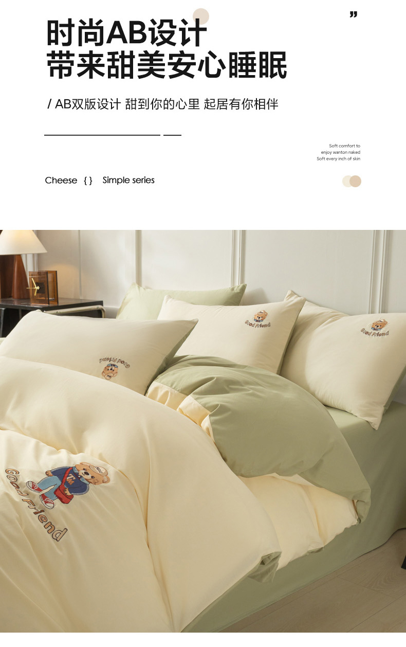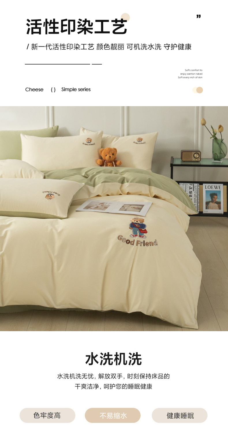 当前位置: 91家纺网 > 商品网购 > 床品套件 > 四件套 > 全棉活性四件套 > 万盛家纺 2025新款全棉喷气13372刺绣卡通四件套 fashion熊-奶白绿