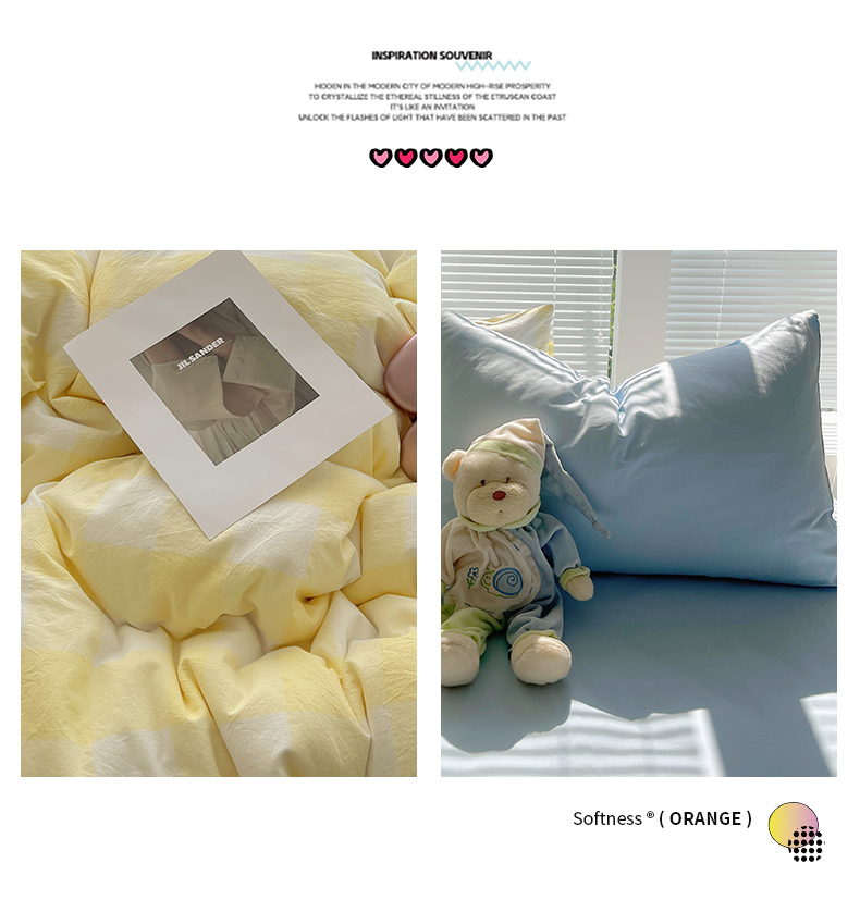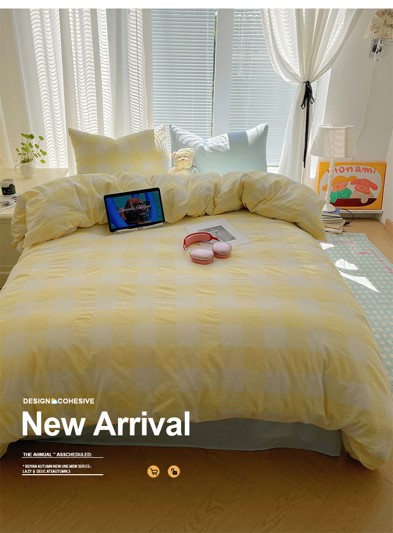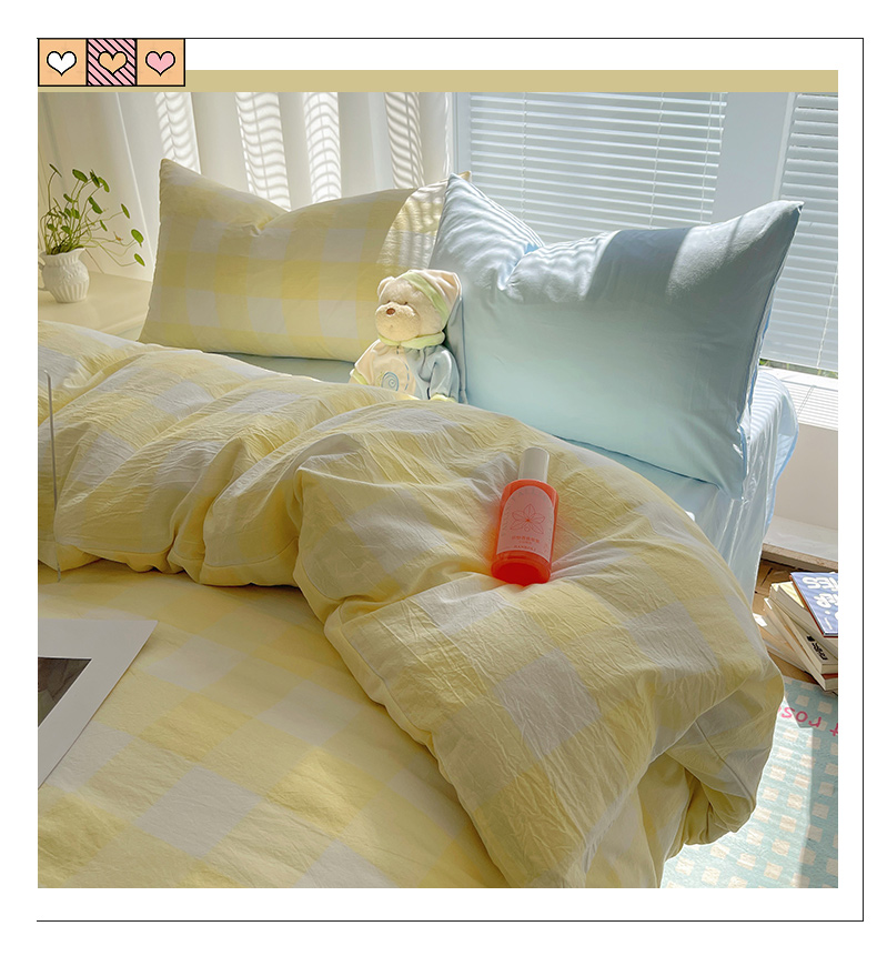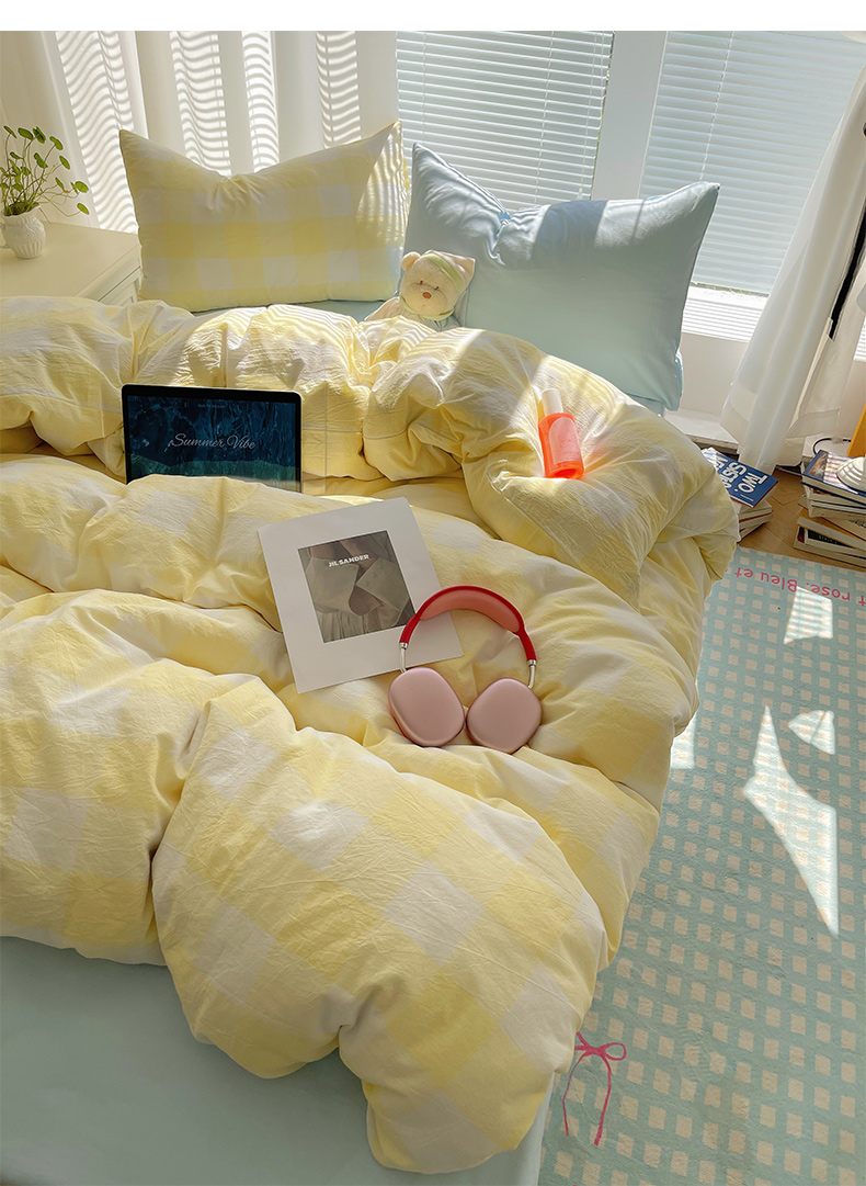 当前位置: 91家纺网 > 商品网购 > 床品套件 > 四件套 > 全棉普通四件套 > 六巷胡同 2024新款全棉INS少女心马卡龙格子混搭四件套 混搭柠檬黄大格