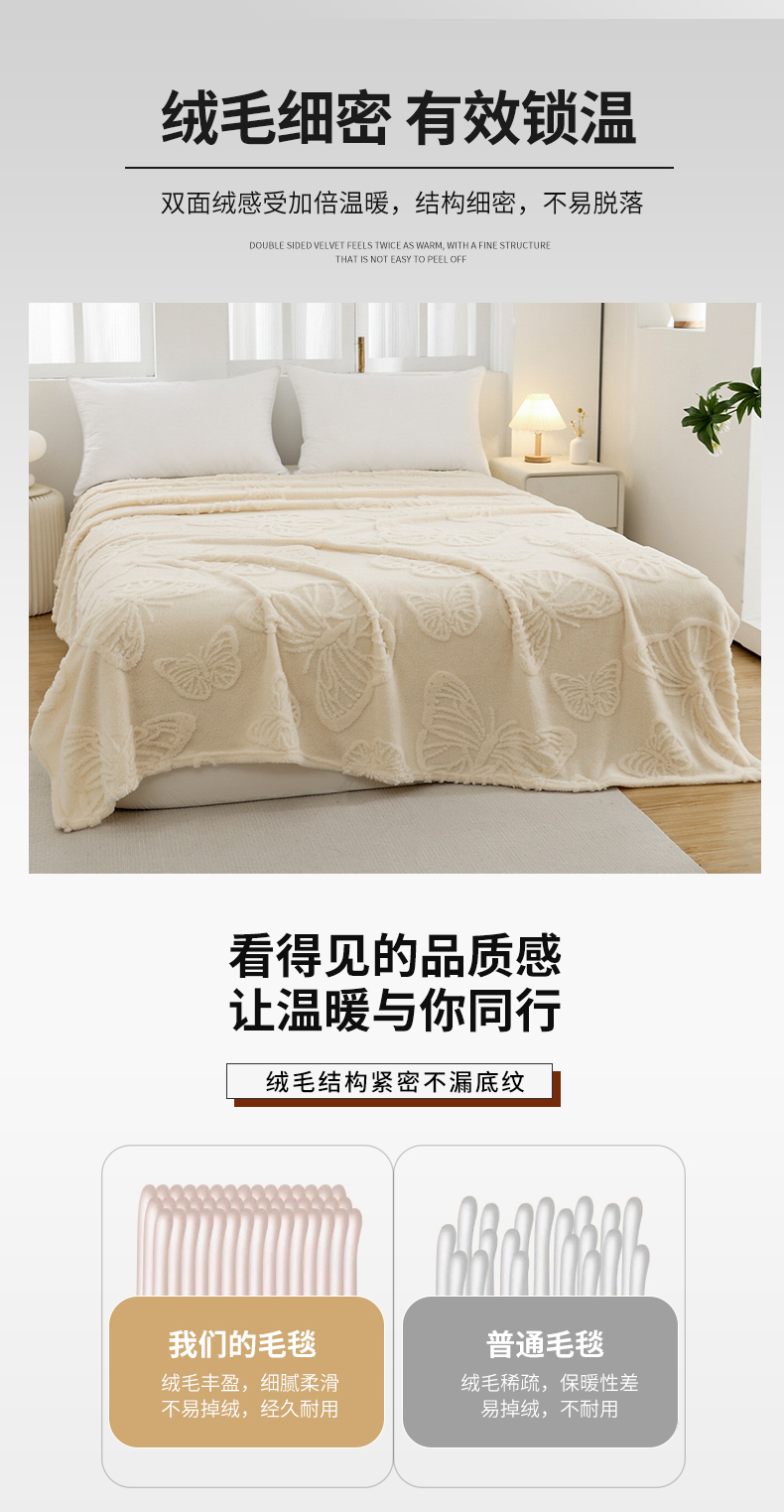 枋梢家纺 2024新款跨境电商塔芙绒纯色蝴蝶花提花多功能盖毯午睡毯子办公毛毯 米白