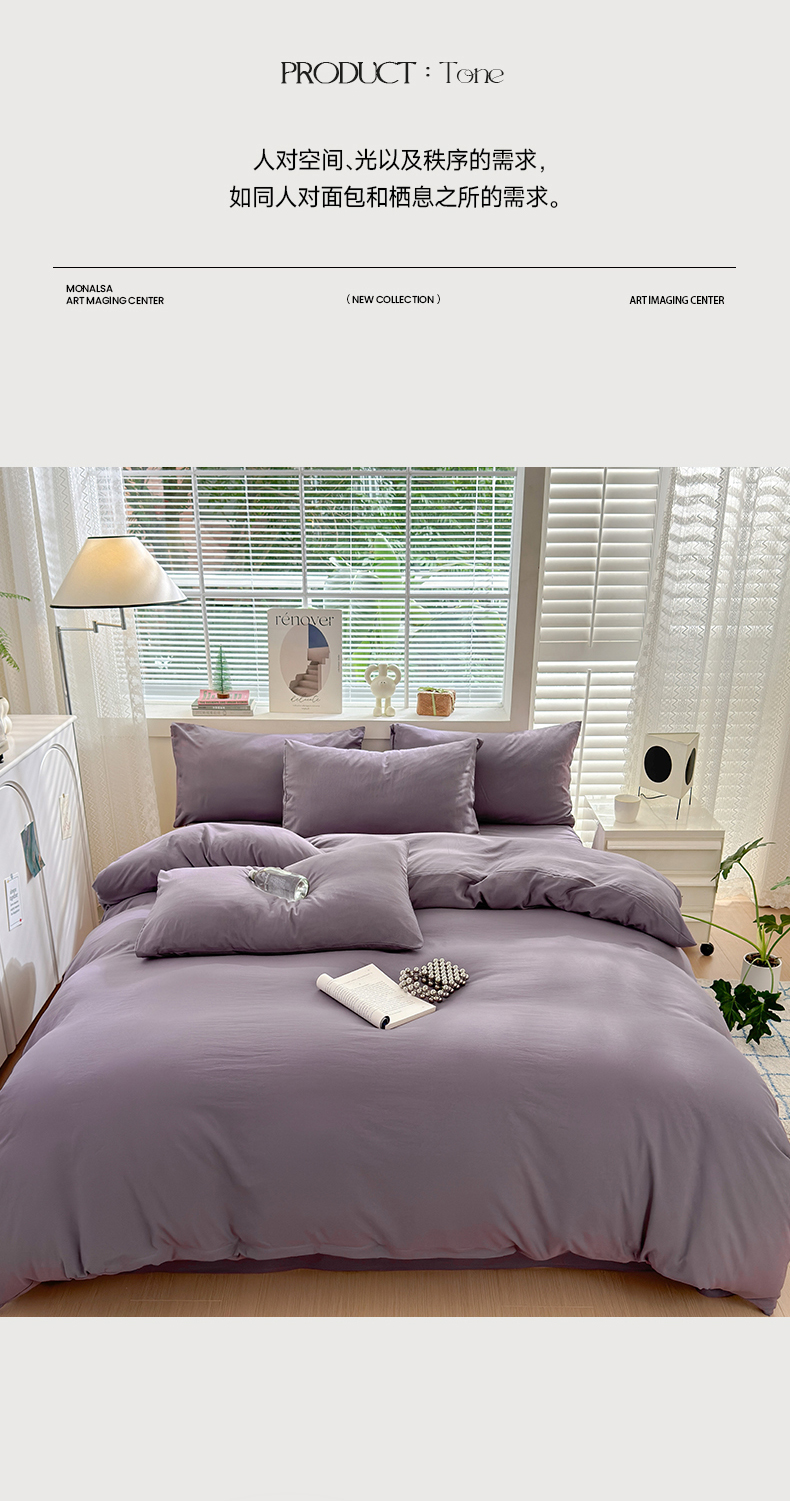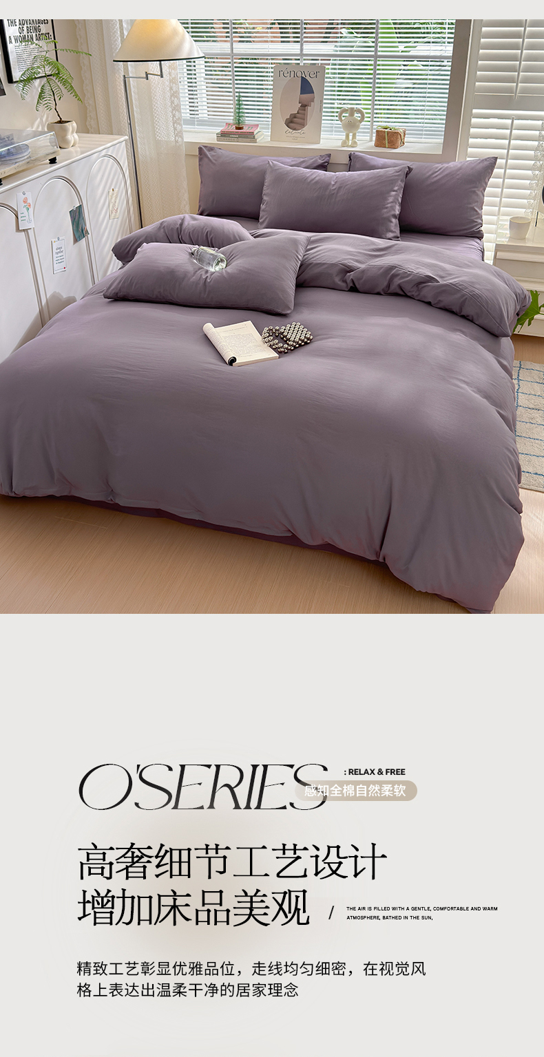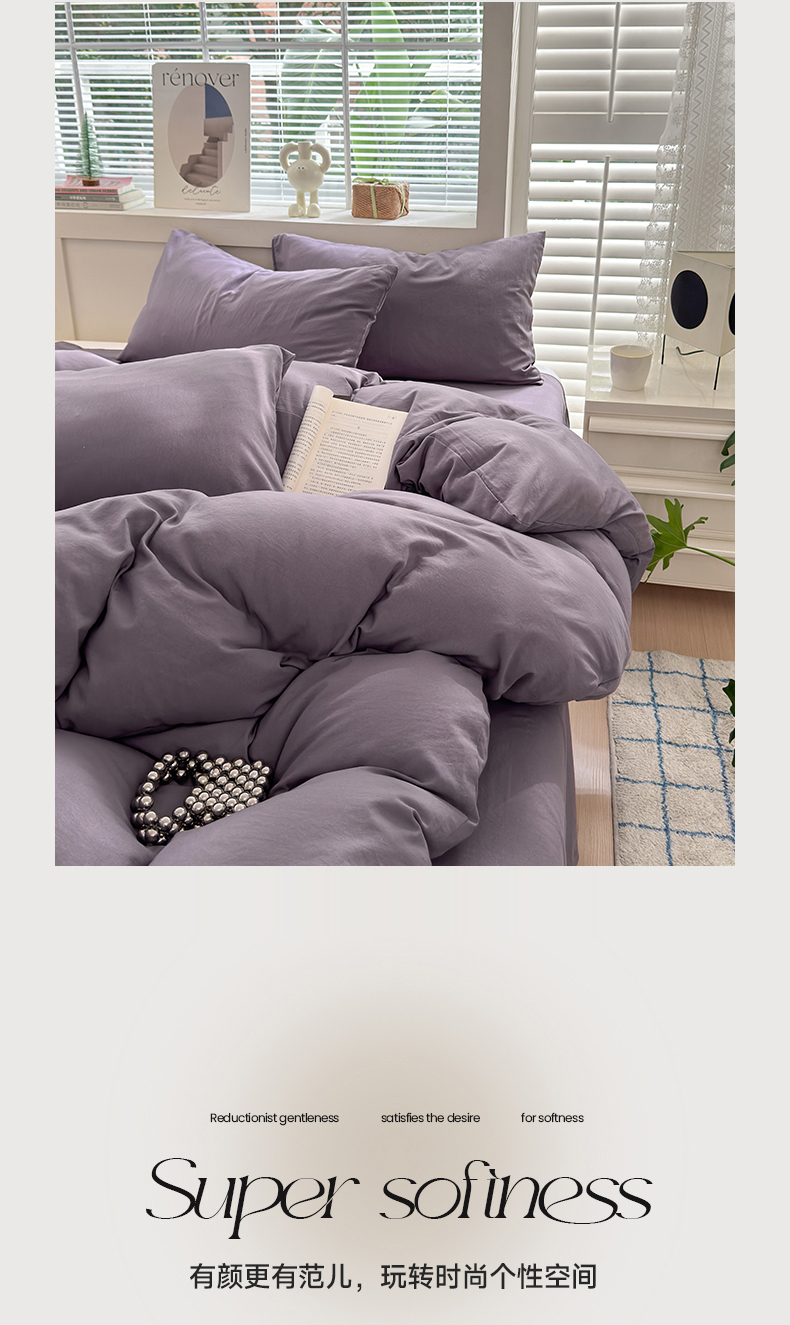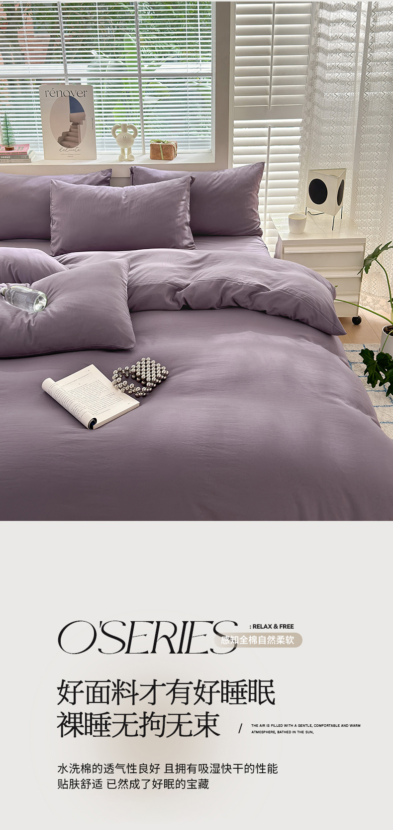 当前位置: 91家纺网 > 商品网购 > 床品套件 > 四件套 > 水洗棉四件套 > 沃朴家居 2024新款纯色水洗棉四件套学生三件套 茱萸紫(深)