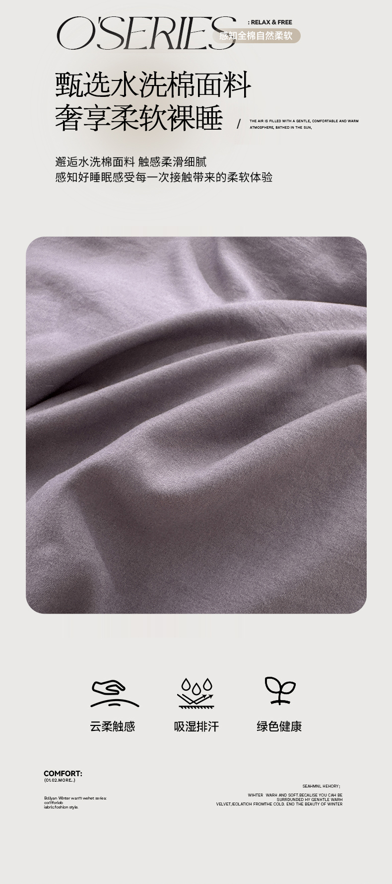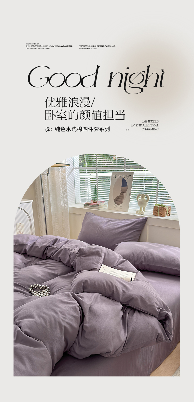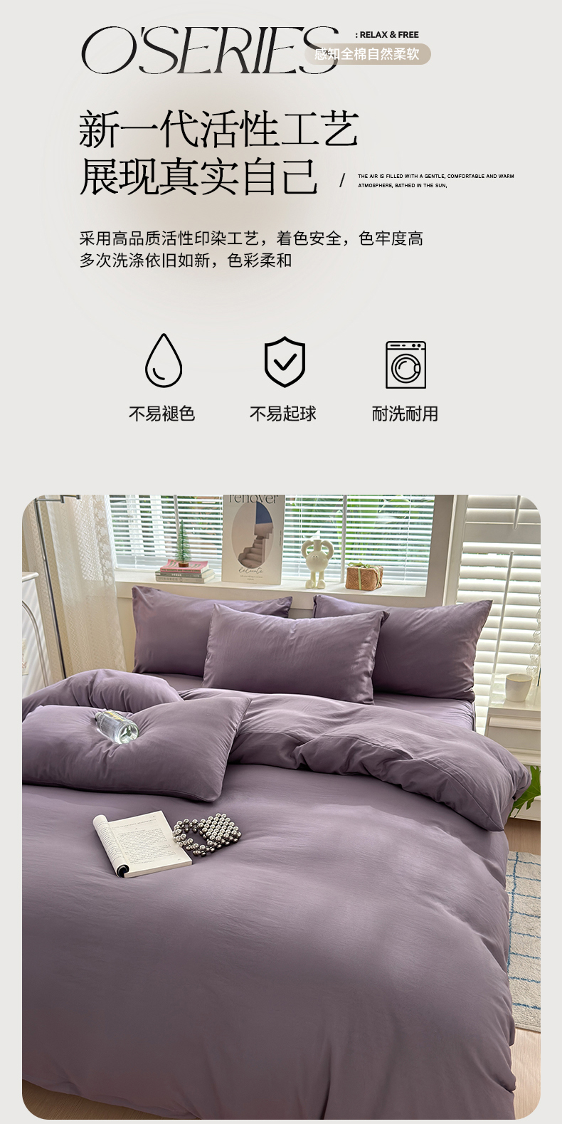 当前位置: 91家纺网 > 商品网购 > 床品套件 > 四件套 > 水洗棉四件套 > 沃朴家居 2024新款纯色水洗棉四件套学生三件套 茱萸紫(深)
