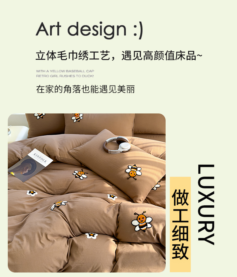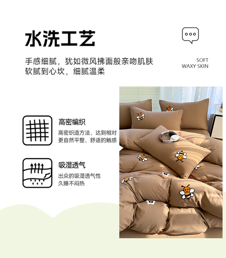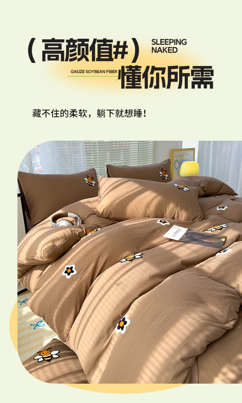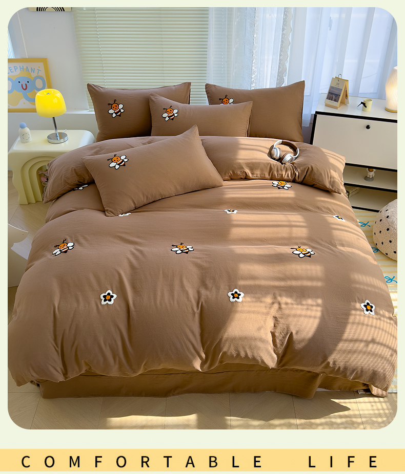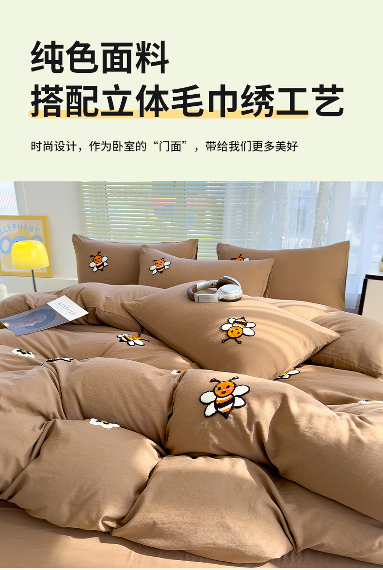 商品名称:寐时代 2024新款A类水洗亲肤立体毛巾绣四件套四季通用款 甜蜜(咖)