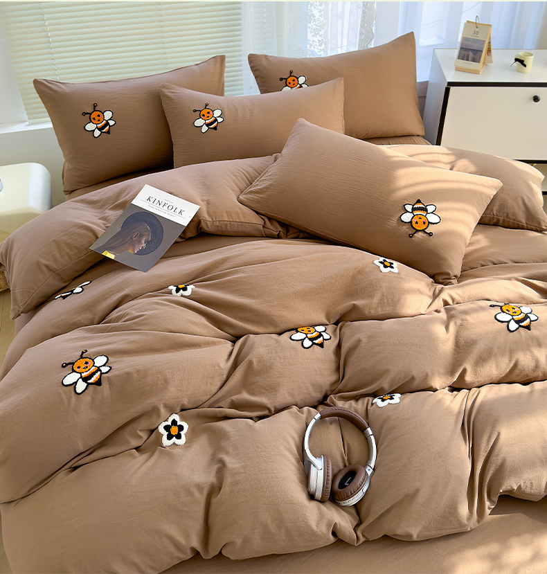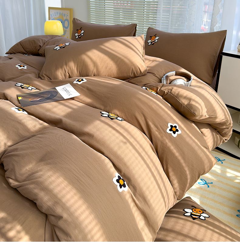 寐时代 2024新款A类水洗亲肤立体毛巾绣四件套四季通用款 甜蜜(咖)