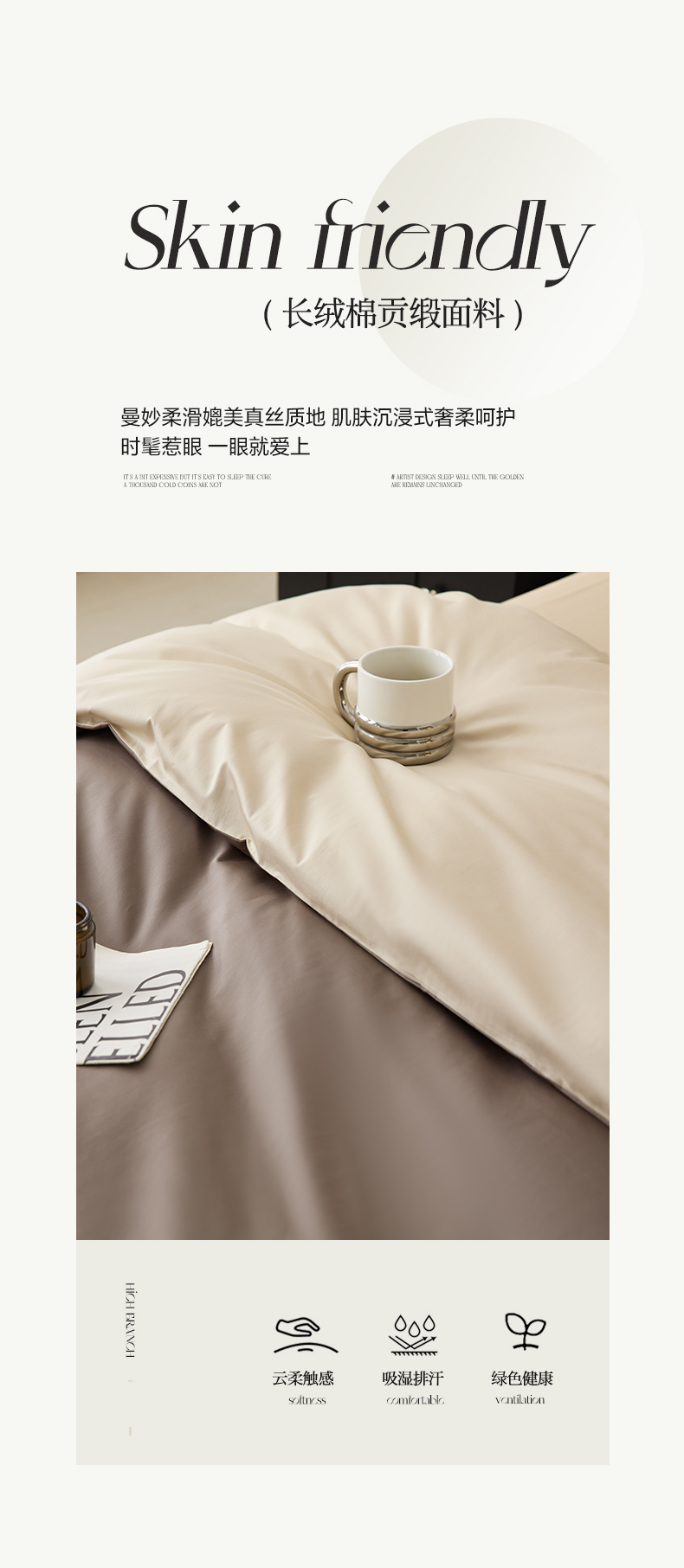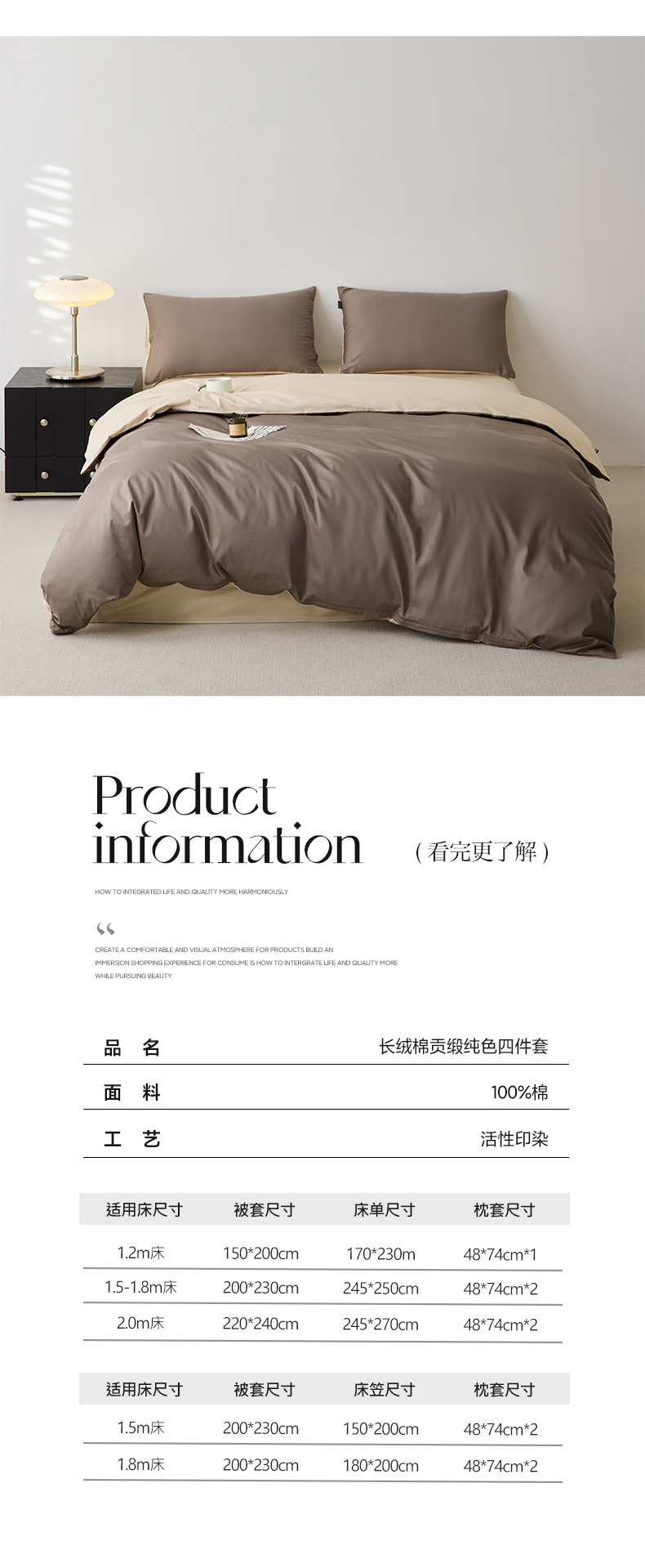 商品名称:安莱生活 2024新款100s全棉贡缎四件套 咖啡-棕色