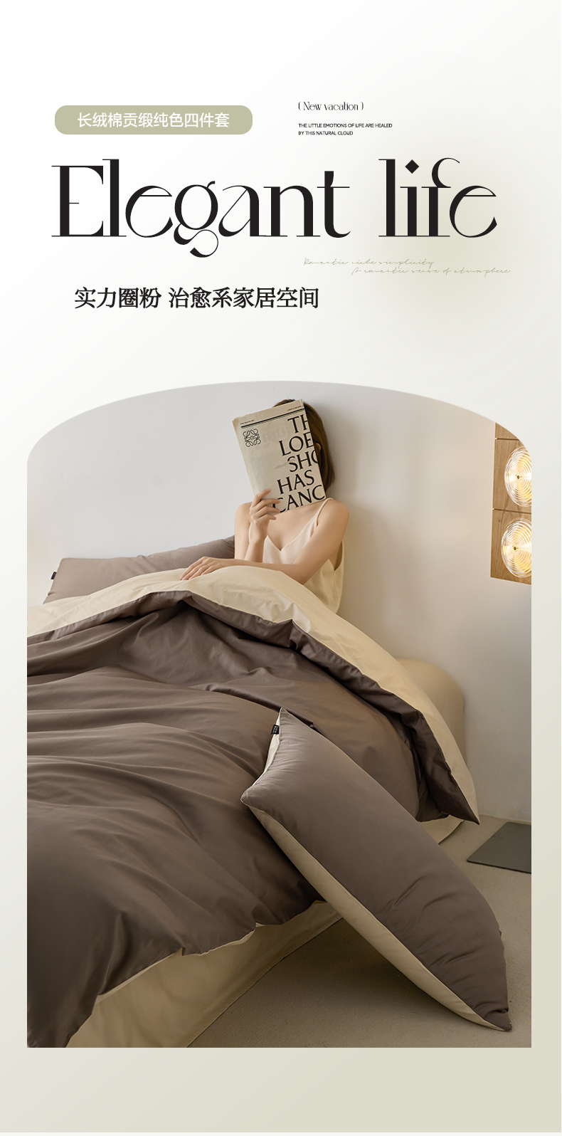 安莱生活 2024新款100s全棉贡缎四件套 咖啡-棕色