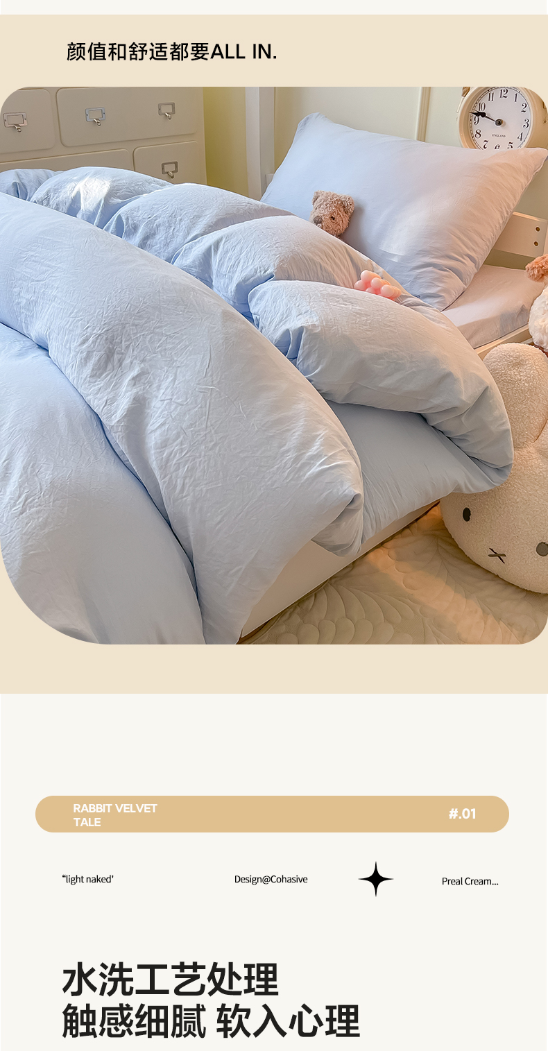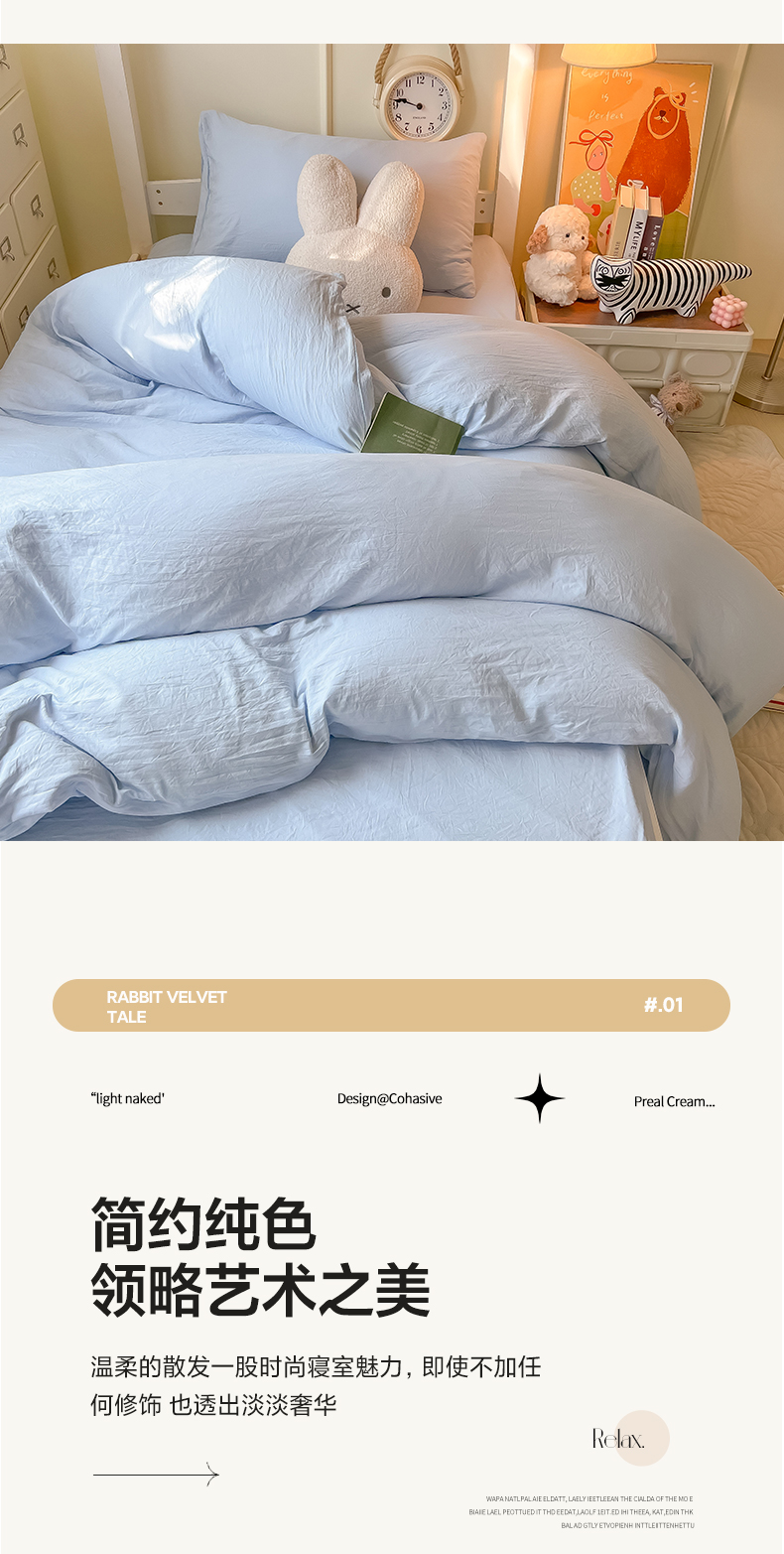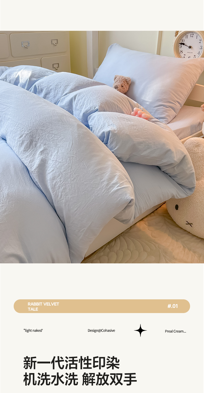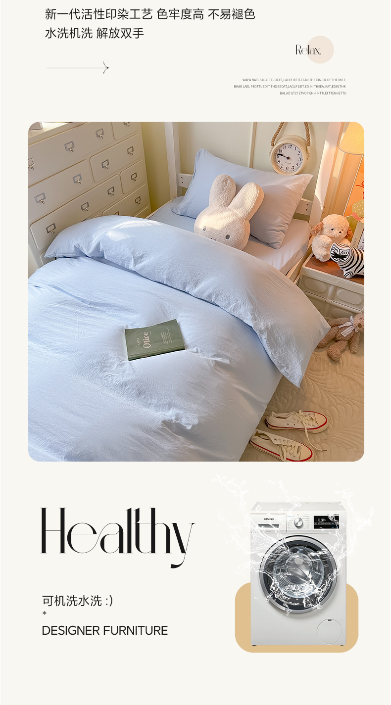 当前位置: 91家纺网 > 商品网购 > 床品套件 > 三件套 > 韩巢家纺 2024新款学生宿舍员工寝室上下铺超柔水洗棉床单被套三件套-纯色系列拼(提供卖家秀) 水洗棉浅蓝