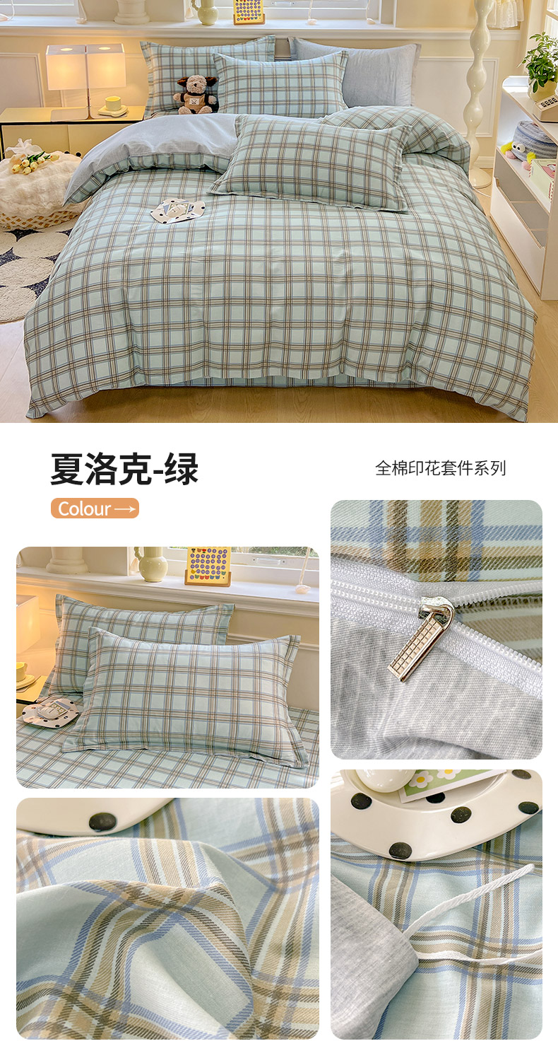 绵庭家纺 2024新款全棉印花套件系列四件套 夏洛克 绿