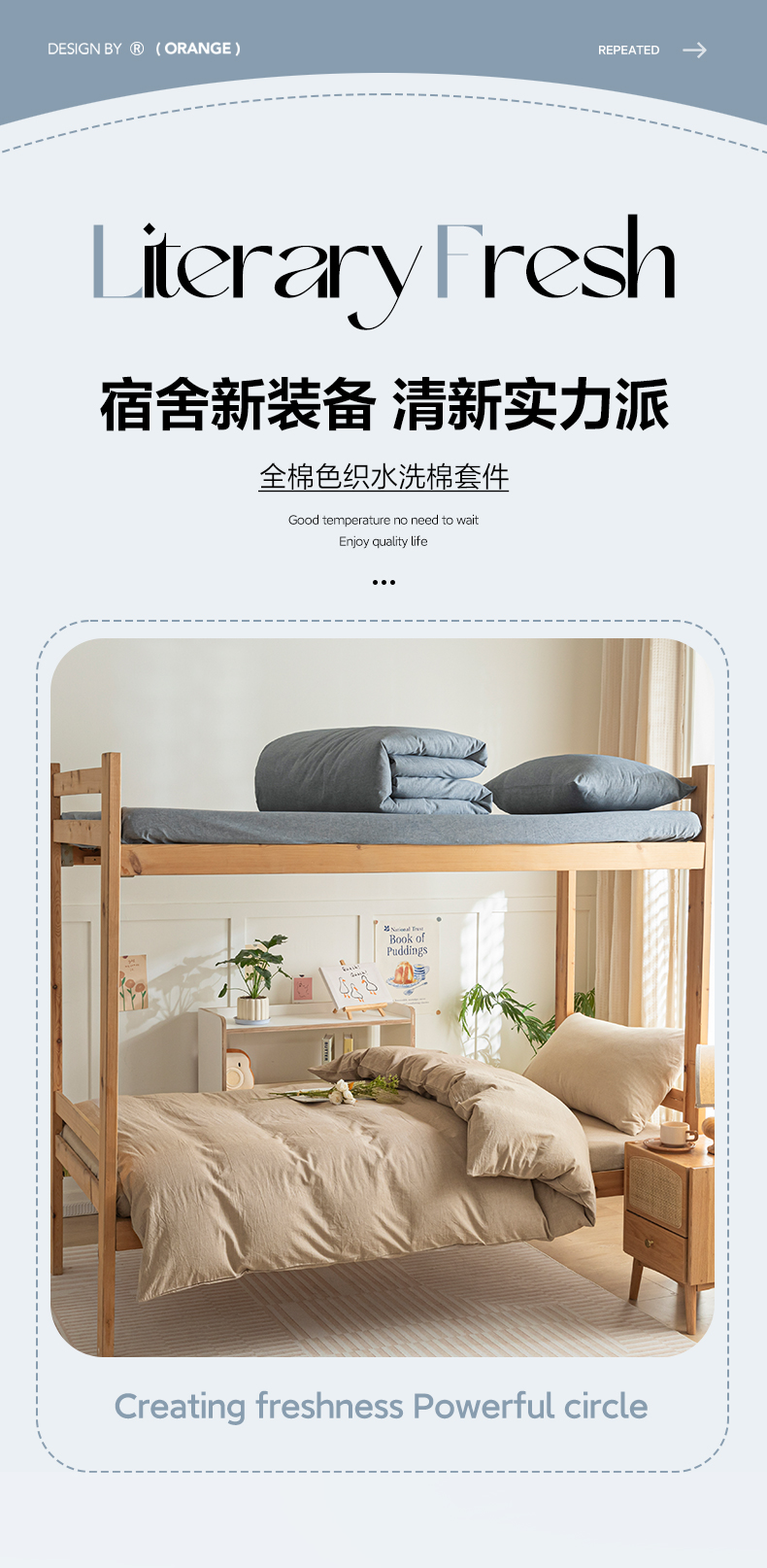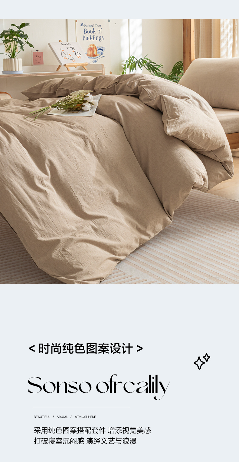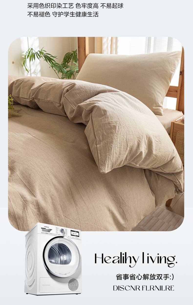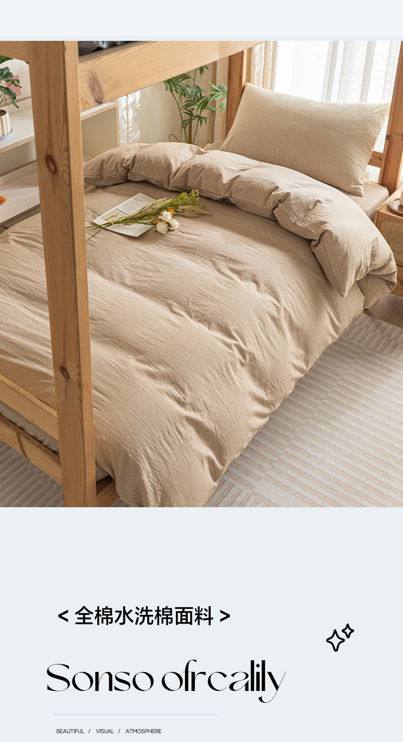 • 91家纺网 家纺一手货源 找家纺 2025新款全棉水洗棉被套纯棉单双人宿舍学生-可配3件套 咖青年