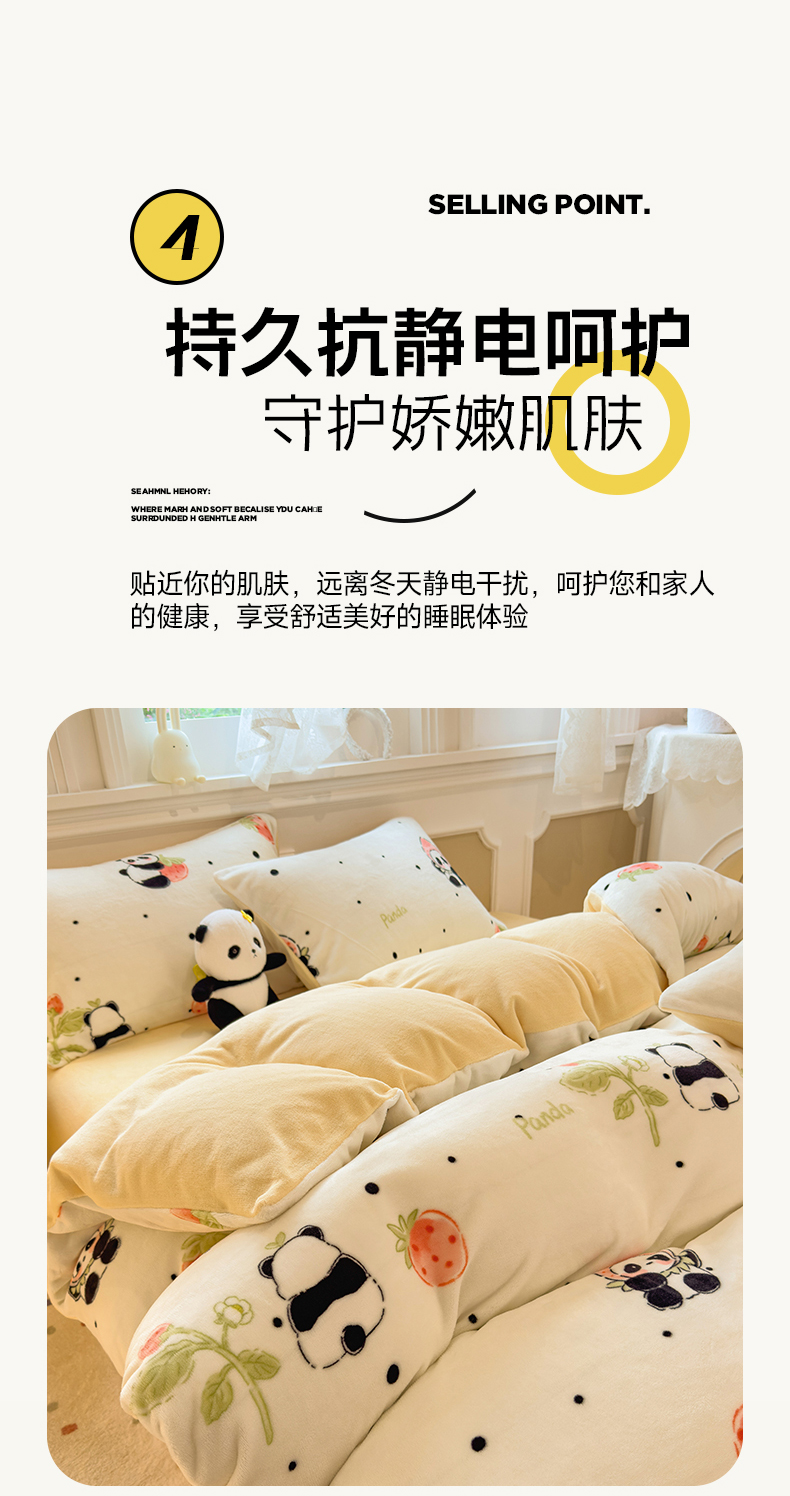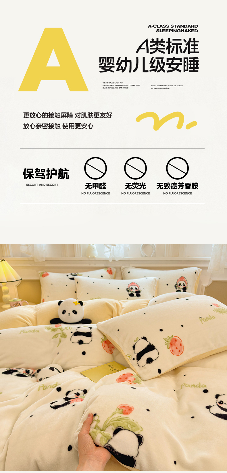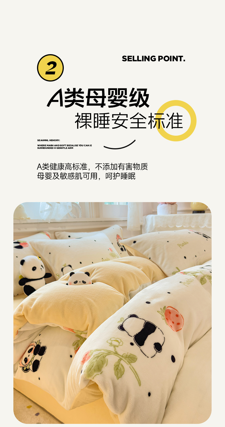 当前位置: 91家纺网 > 商品网购 > 床品套件 > 四件套 > 牛奶绒四件套 > 摩妮卡 2025新款小清新牛奶绒印花四件套床单款床笠单被套-场景1 草莓熊猫