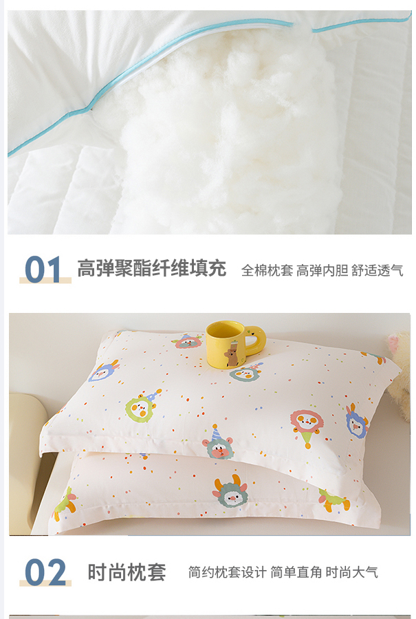 商品名称:丽美人家纺 2024新款全棉印花单枕套枕芯 小萌宠