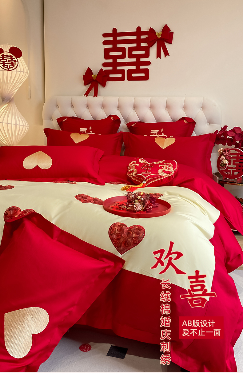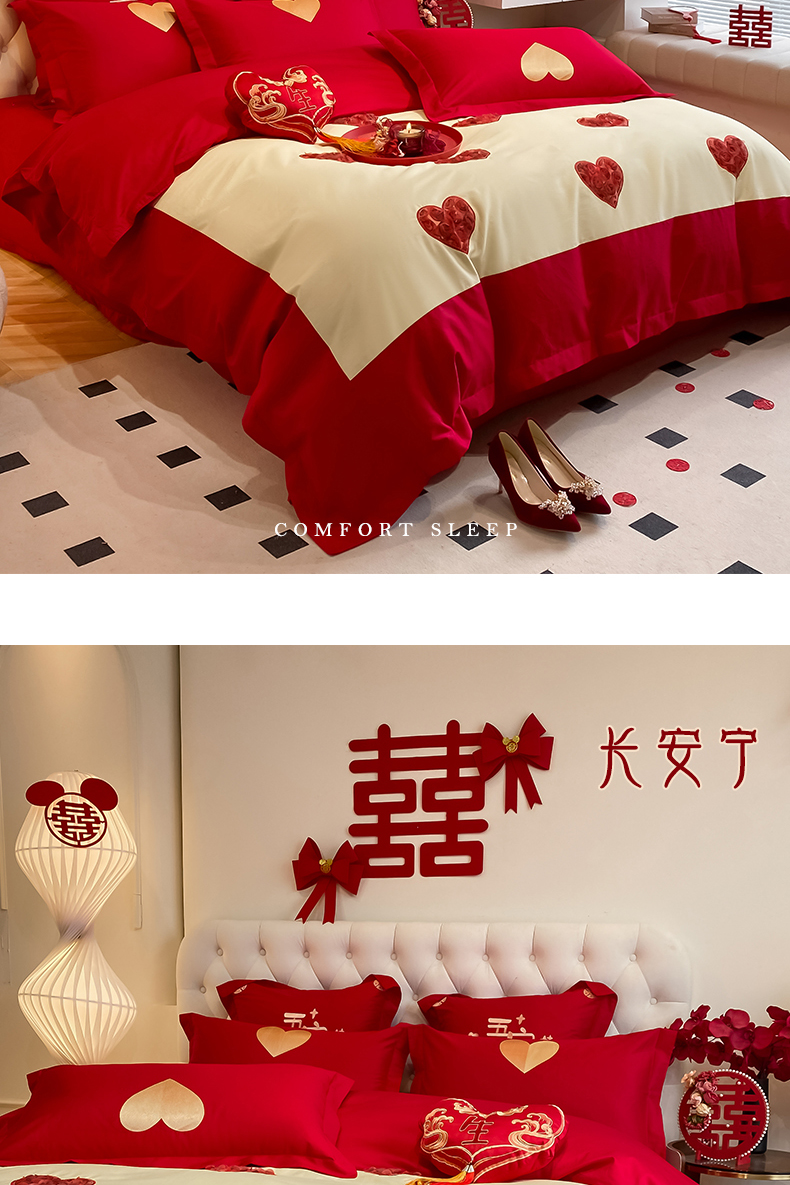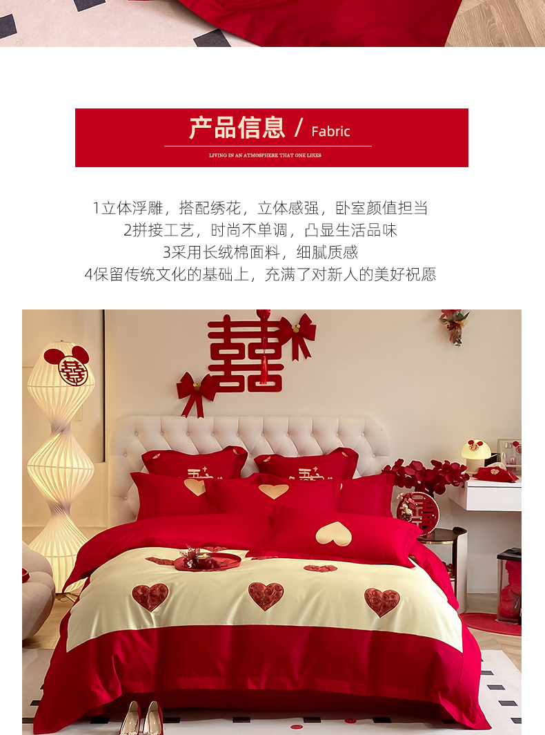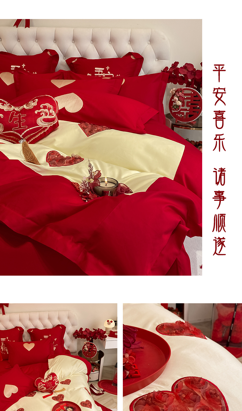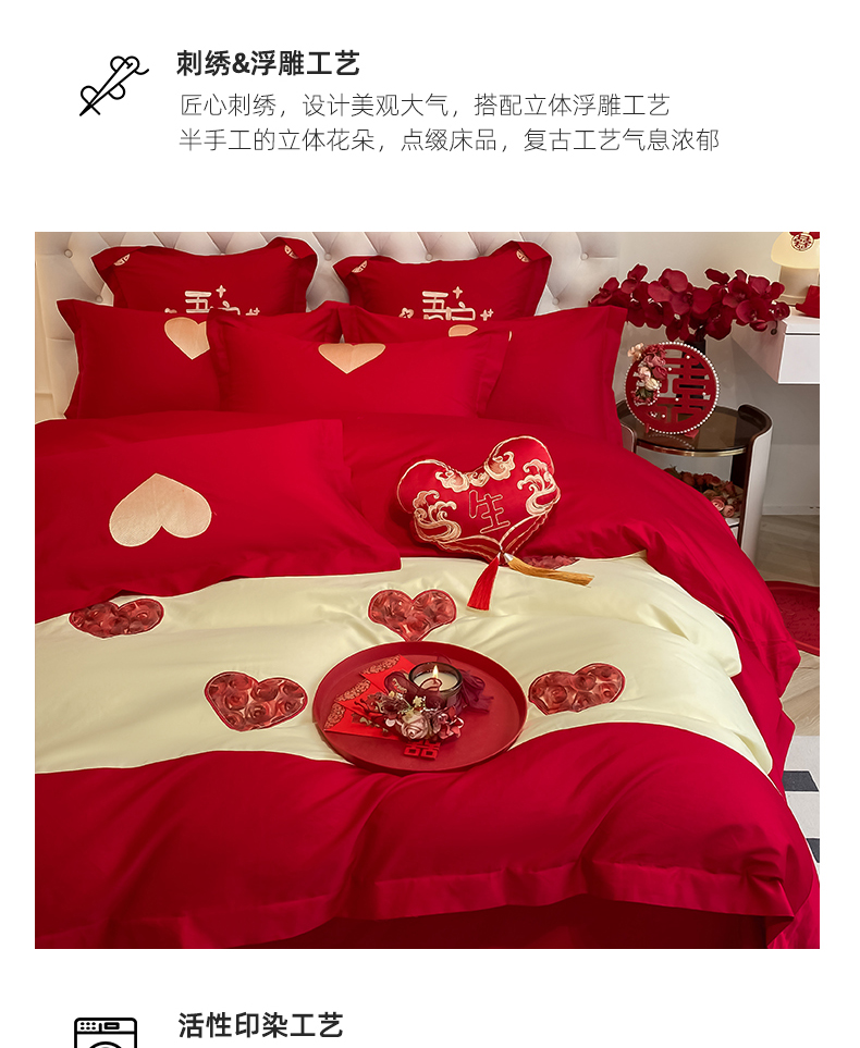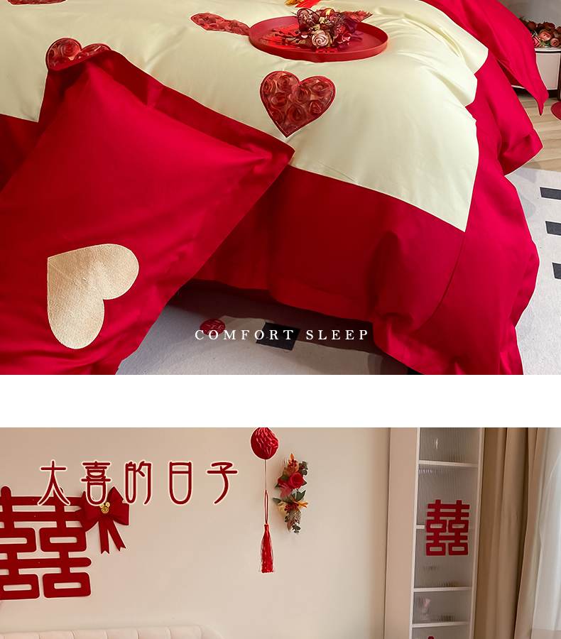 当前位置: 91家纺网 > 商品网购 > 床品套件 > 四件套 > 婚庆四件套 > 玉雅家纺 2025新款60支长绒棉时尚拼色浮雕刺绣婚庆四件套 恩爱-奶油黄