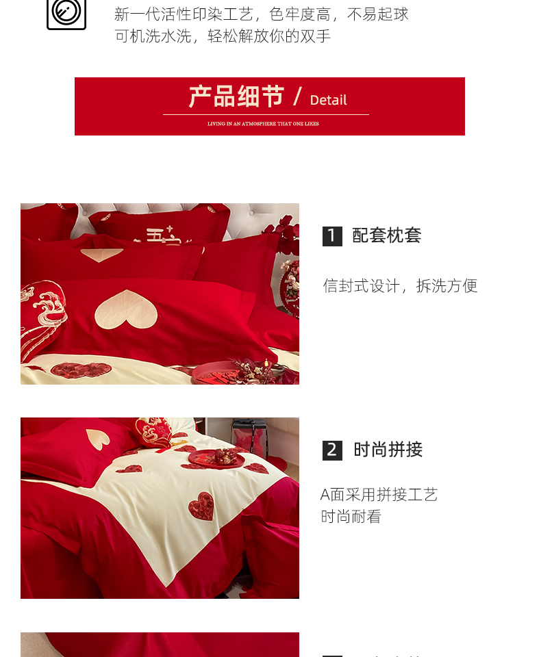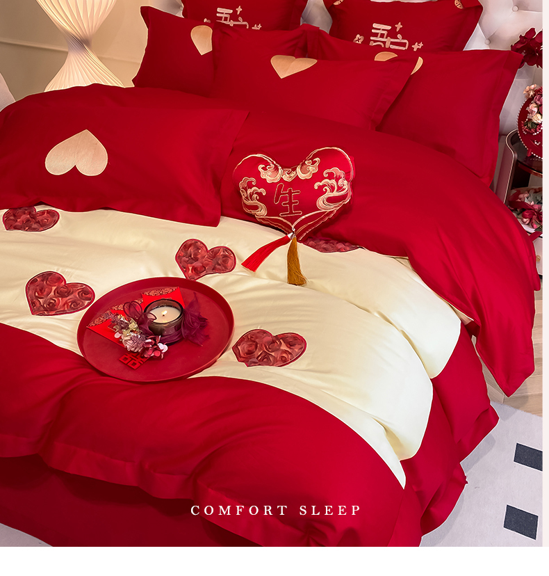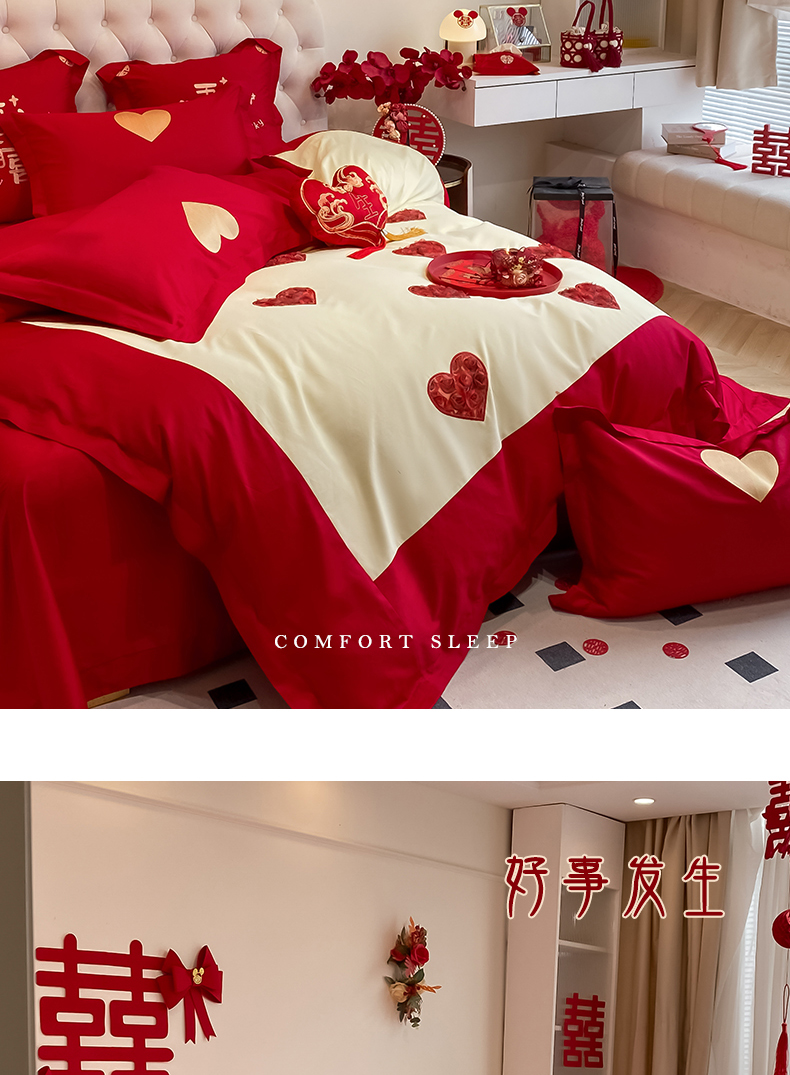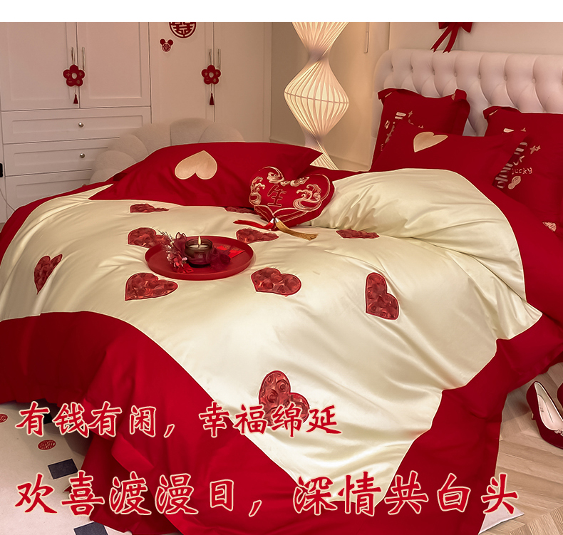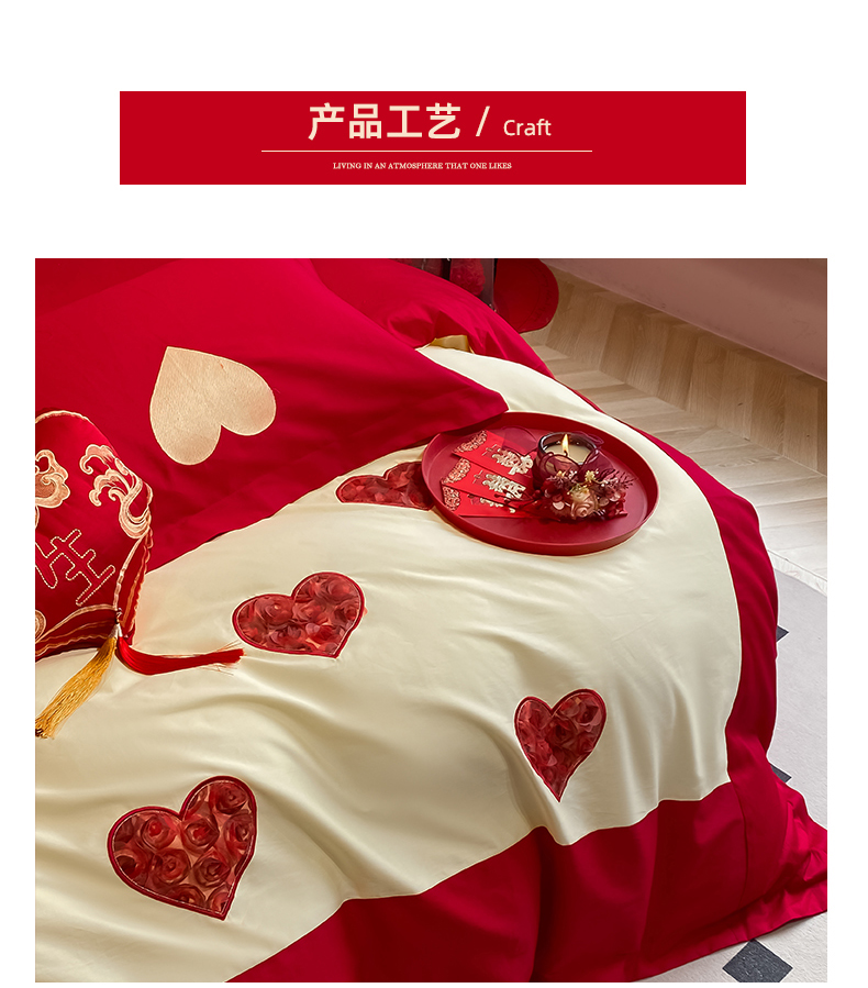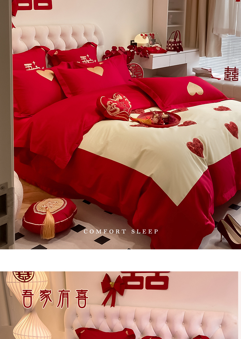 当前位置: 91家纺网 > 商品网购 > 床品套件 > 四件套 > 婚庆四件套 > 玉雅家纺 2025新款60支长绒棉时尚拼色浮雕刺绣婚庆四件套 恩爱-奶油黄