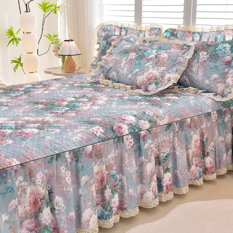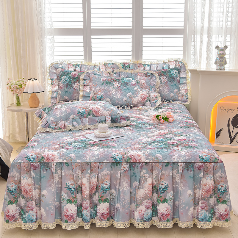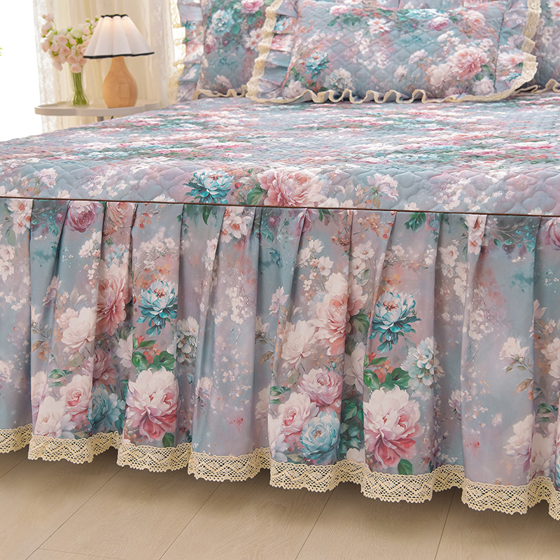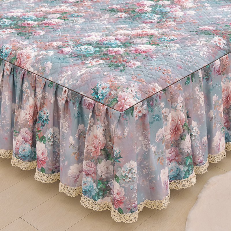 • 91家纺网 家纺一手货源 找家纺 家之硕家纺 2024秋冬新款鹿锦棉夹棉床裙印花床裙单件 爱丽丝