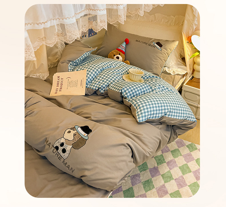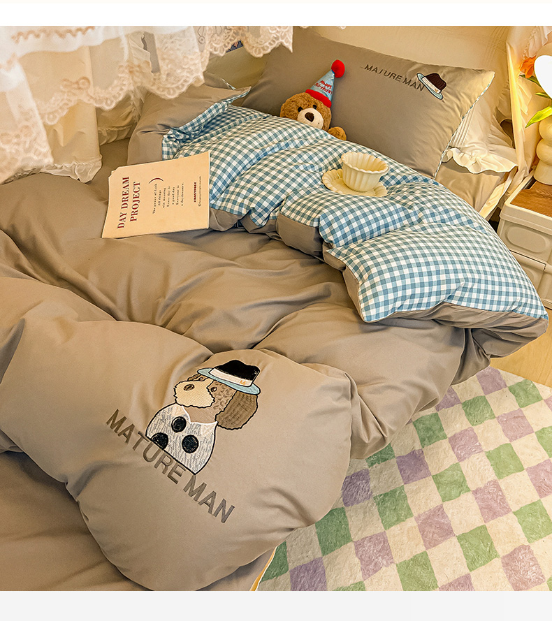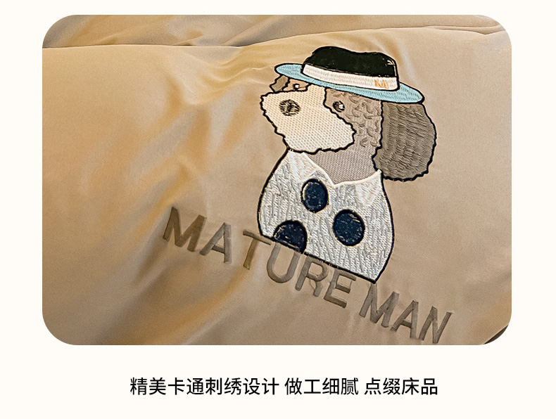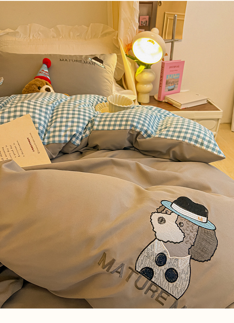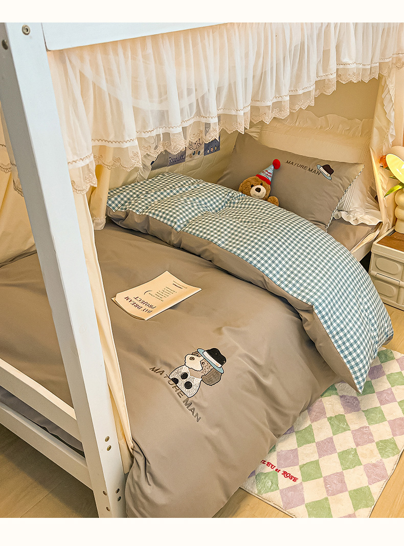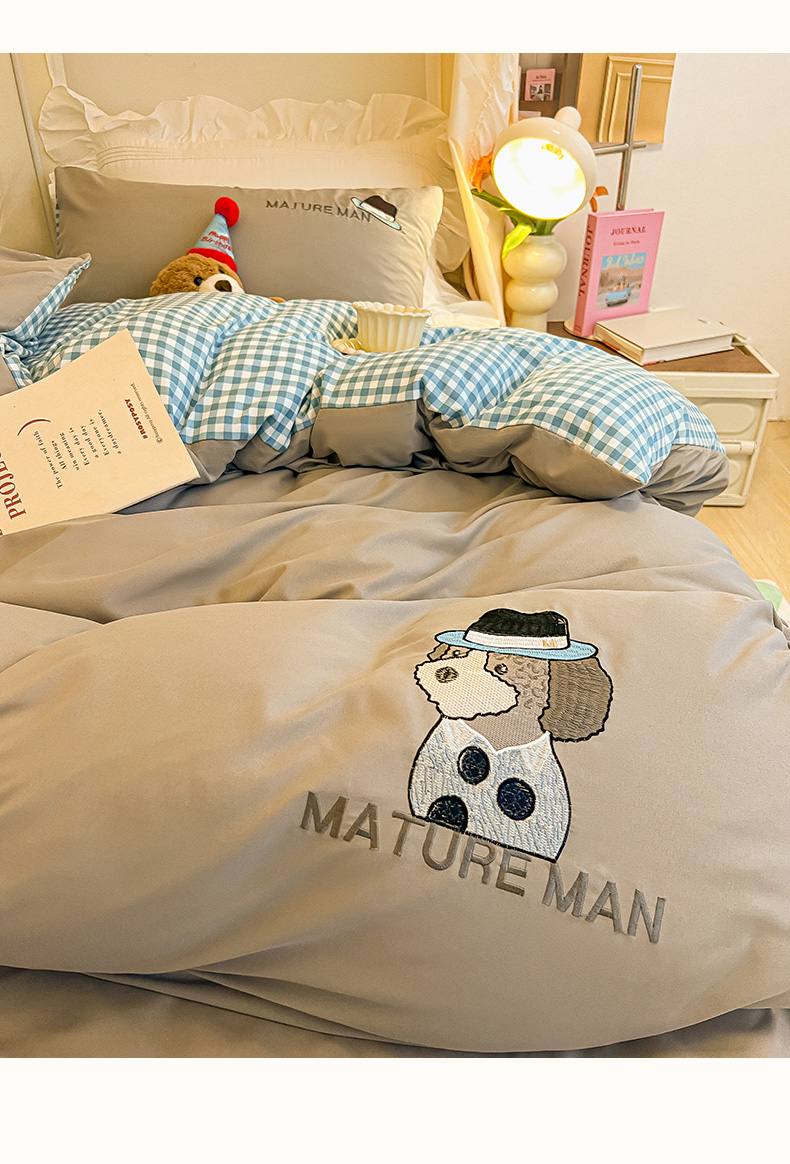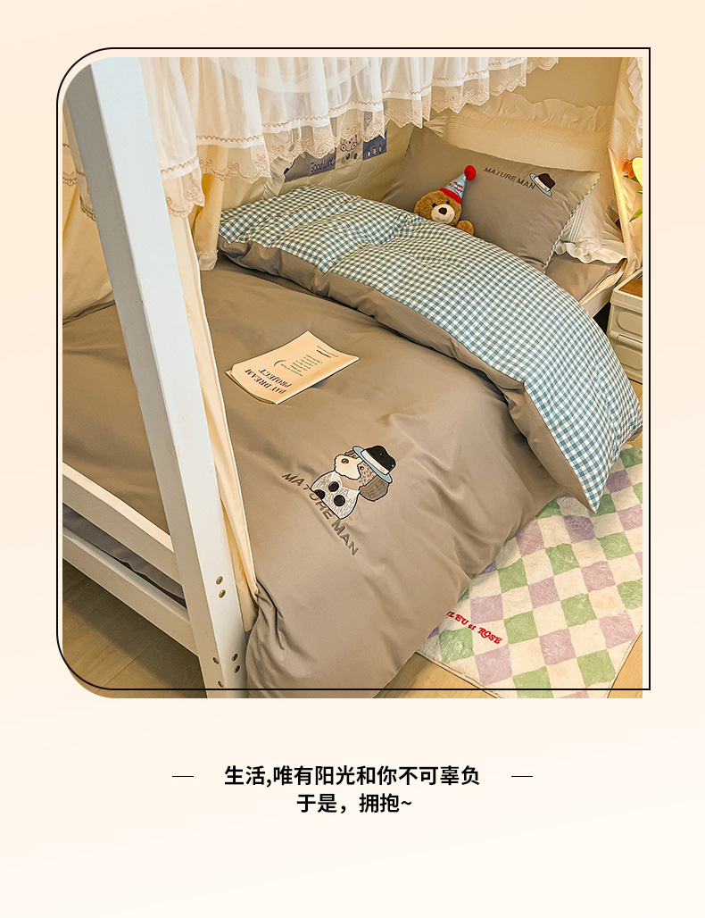 当前位置: 91家纺网 > 商品网购 > 床品套件 > 四件套 > 水洗棉四件套 > 眠帛 2024新款A类学生三件套小清新绣花绅士狗系列水洗棉床上用品四件套 绅士狗-浅灰