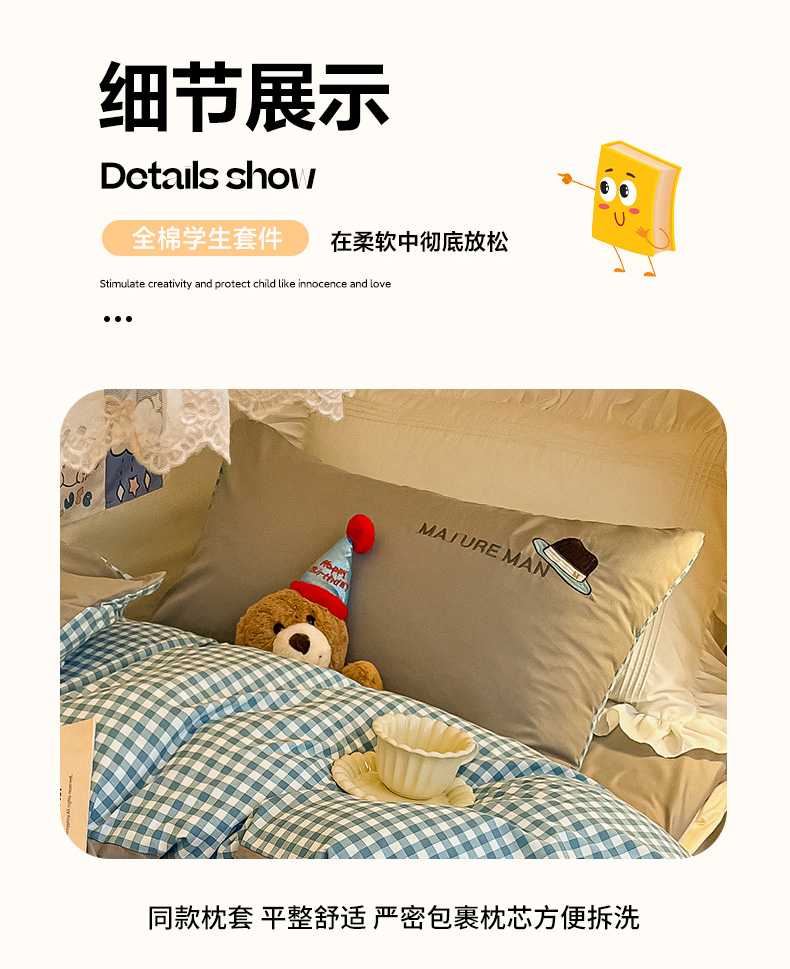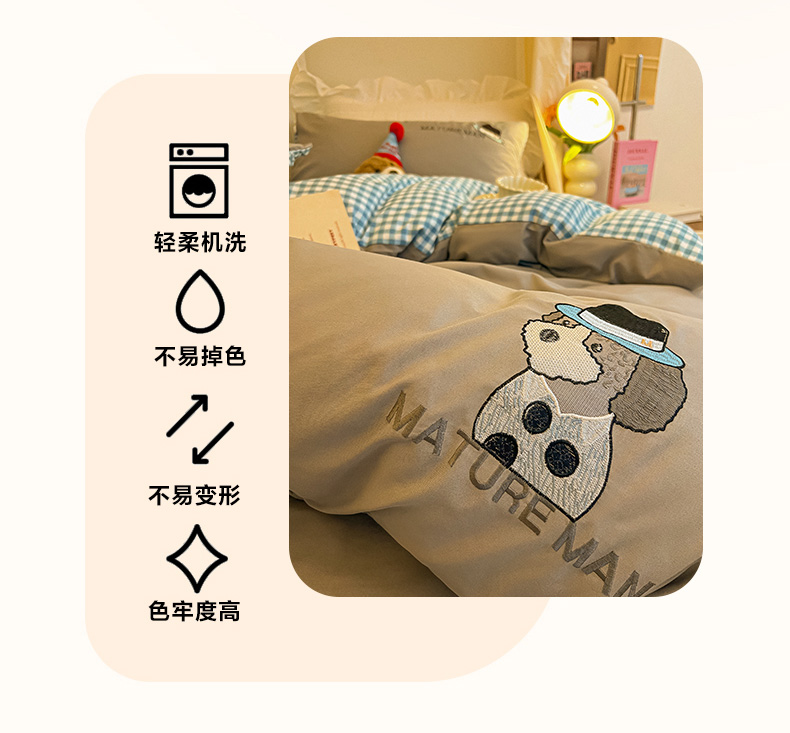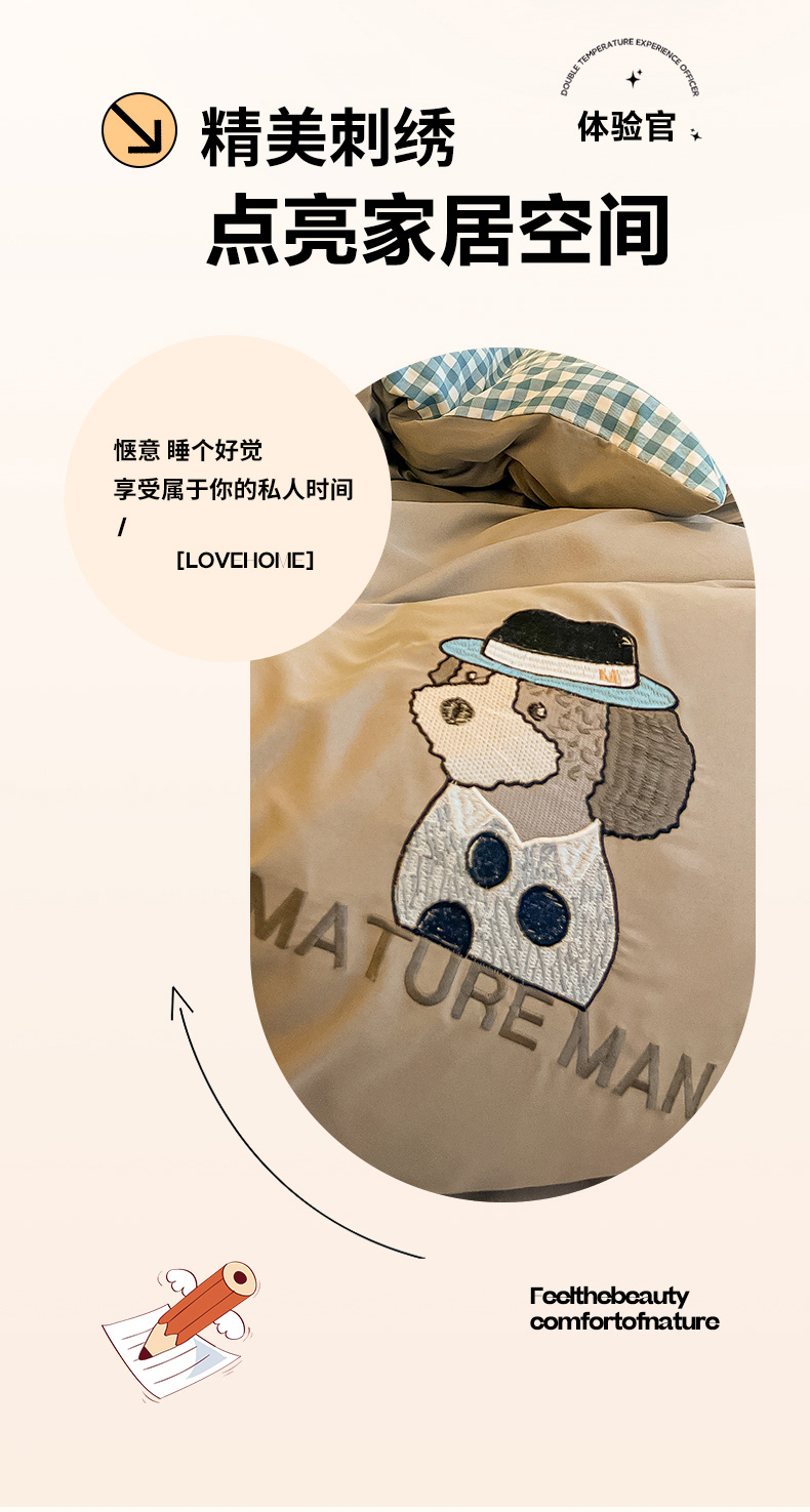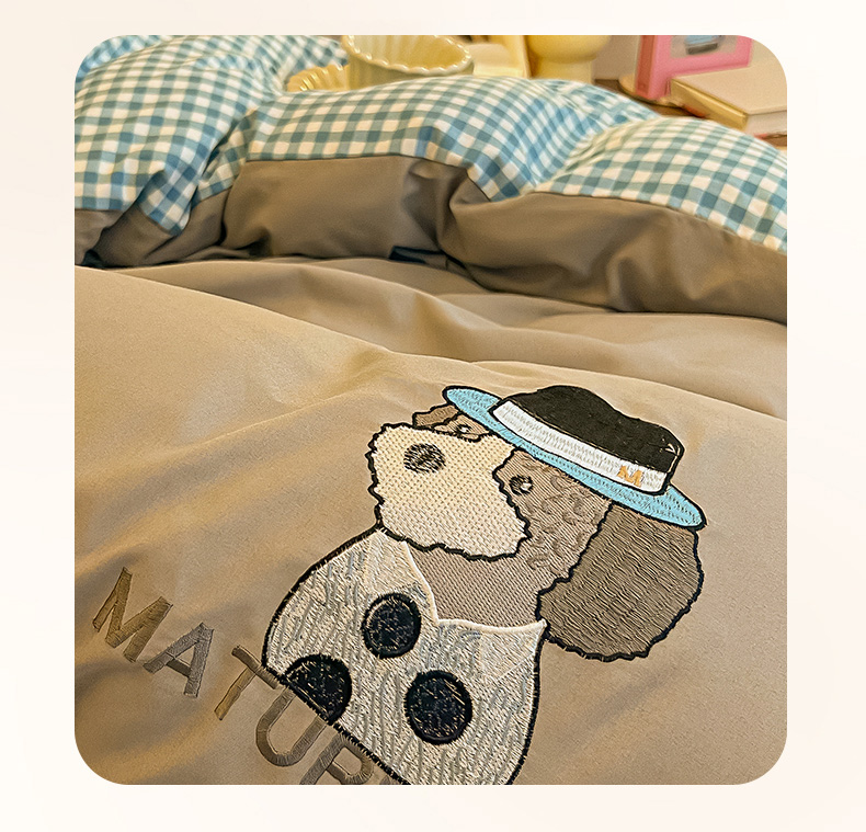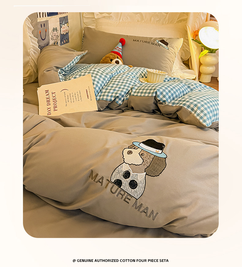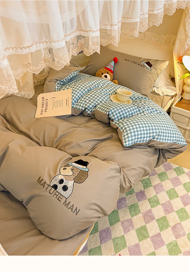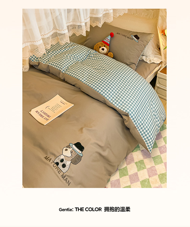 当前位置: 91家纺网 > 商品网购 > 床品套件 > 四件套 > 水洗棉四件套 > 眠帛 2024新款A类学生三件套小清新绣花绅士狗系列水洗棉床上用品四件套 绅士狗-浅灰