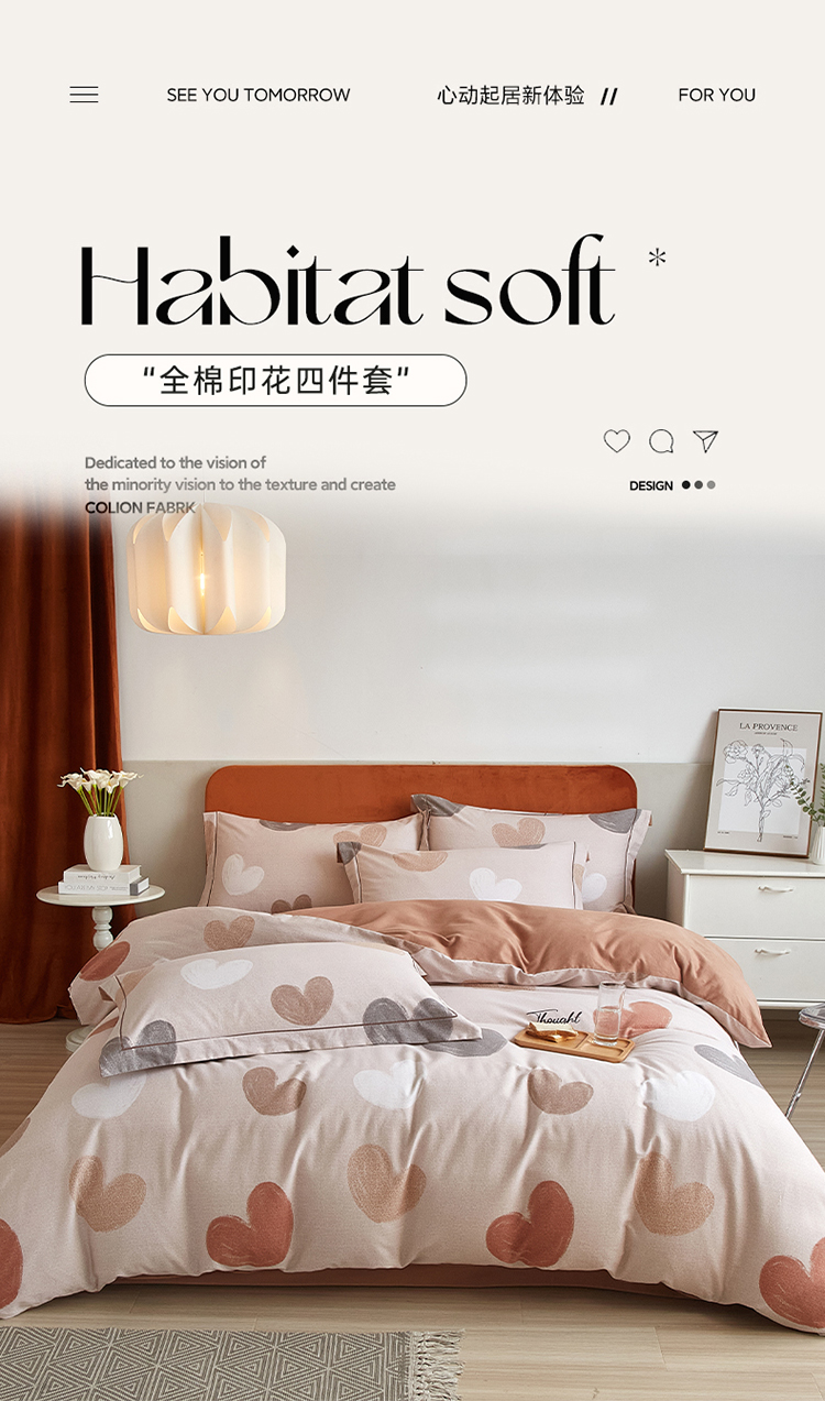 2025新款全棉精梳磨毛印花四件套 缤纷爱恋