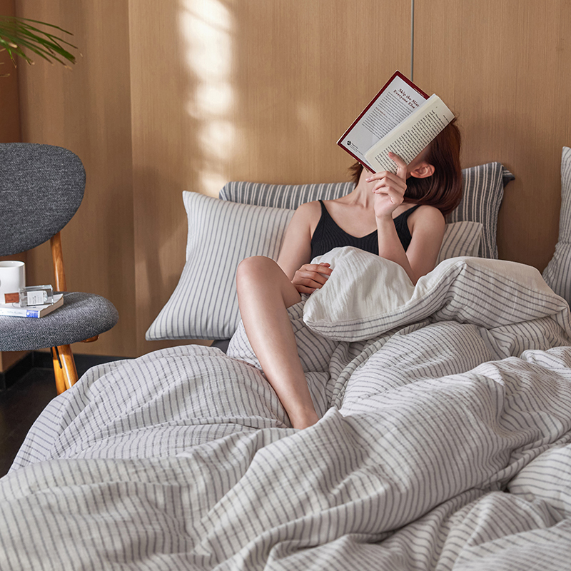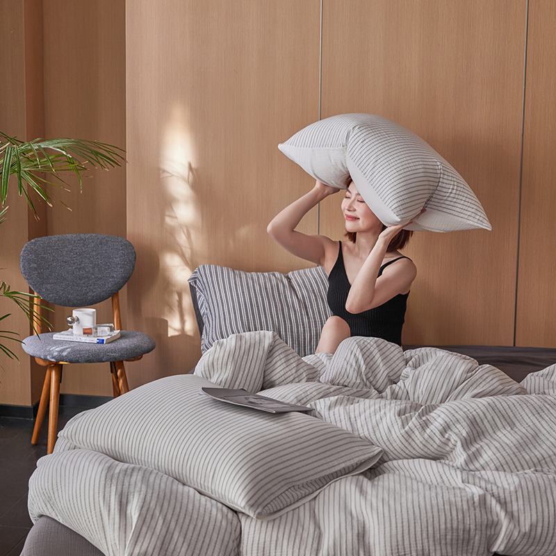 当前位置: 91家纺网 > 商品网购 > 床品套件 > 四件套 > 全棉普通四件套 > 2025新品尚美色织条纹绉纱系列--尚美细条系列 尚美-银灰细条