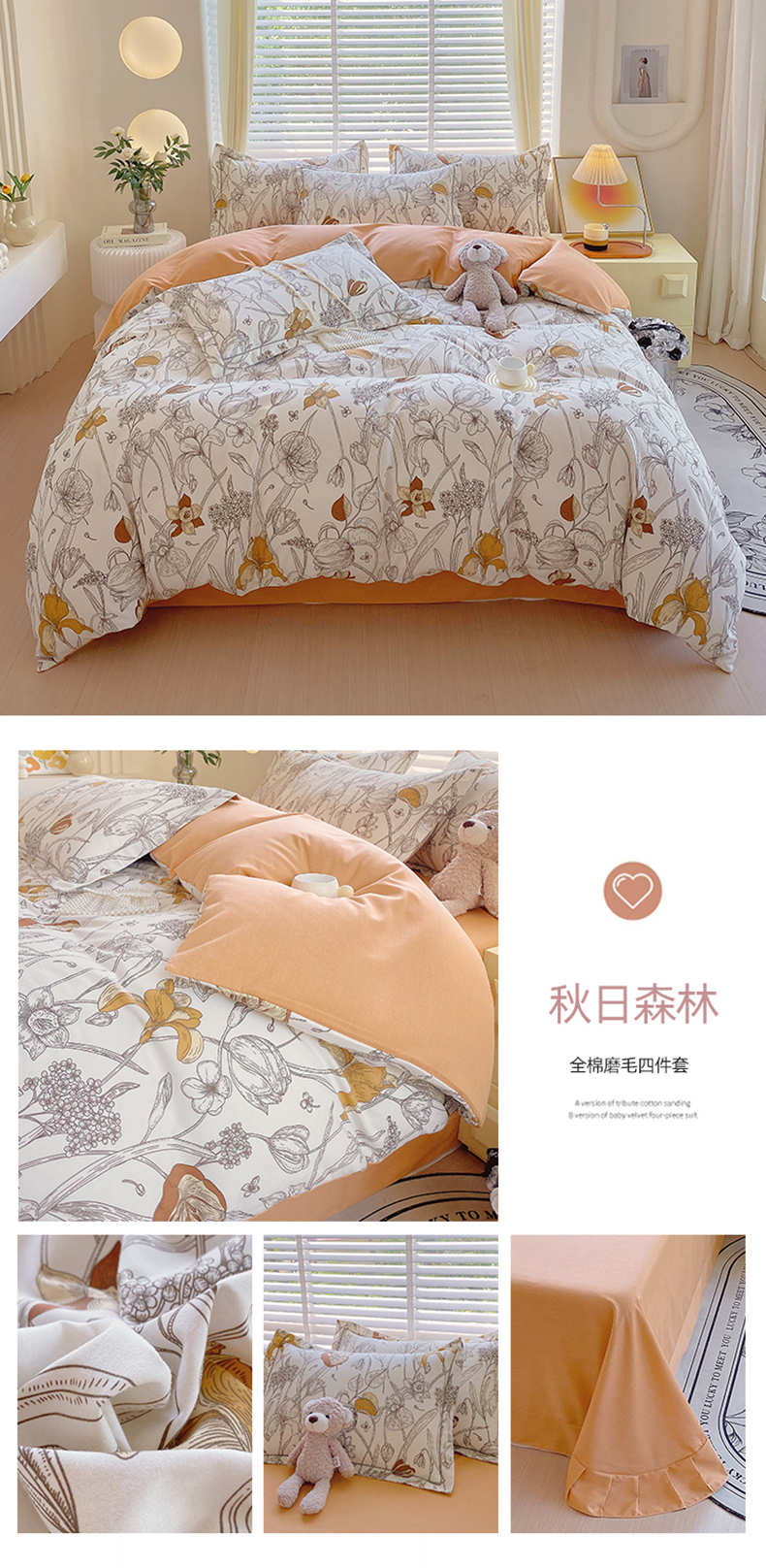 当前位置: 91家纺网 > 商品网购 > 床品套件 > 四件套 > 全棉普通四件套 > 威布斯家居 2024新款AB版全棉生态磨毛四件套 秋日森林