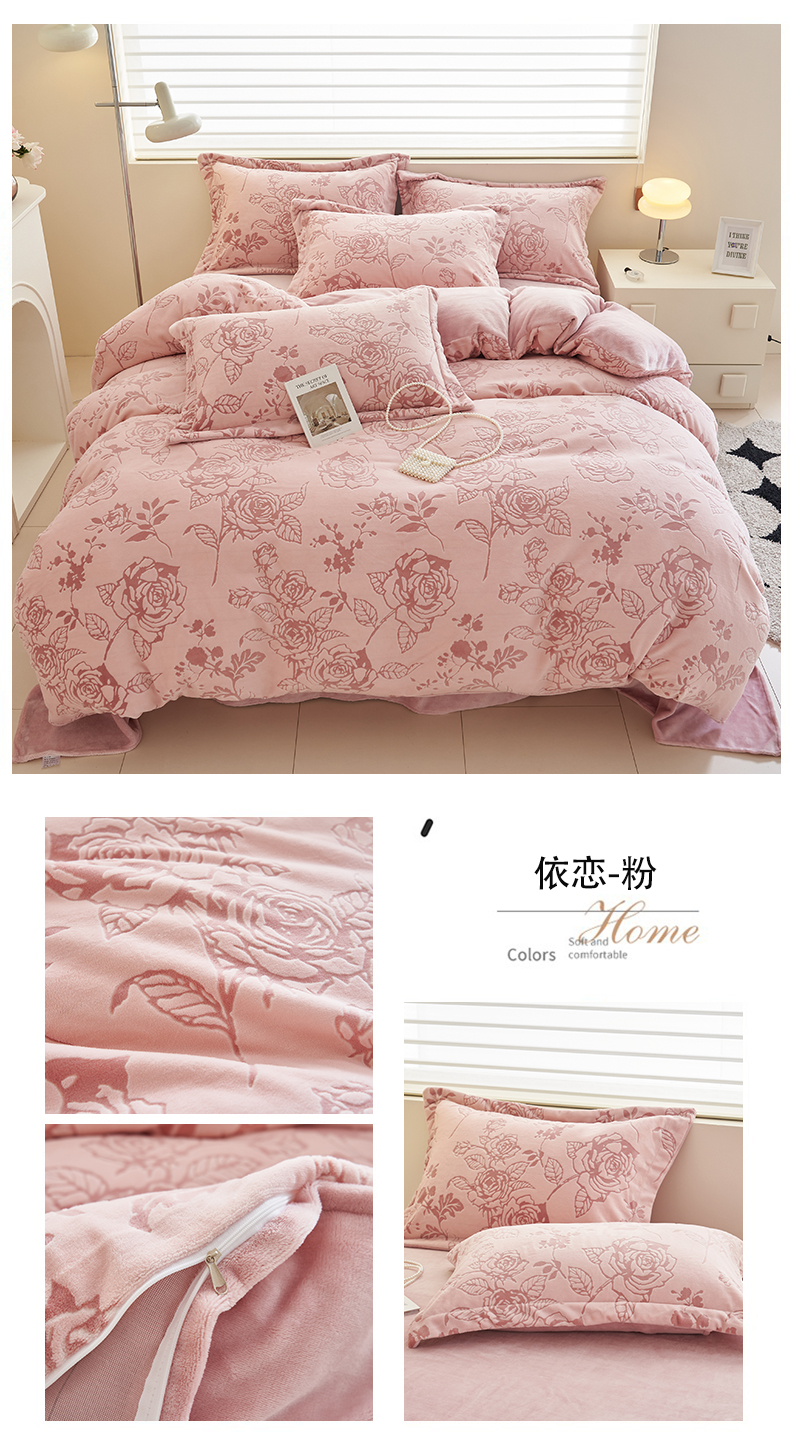 商品名称:2024新款A类立体雕花四件套 依恋-粉