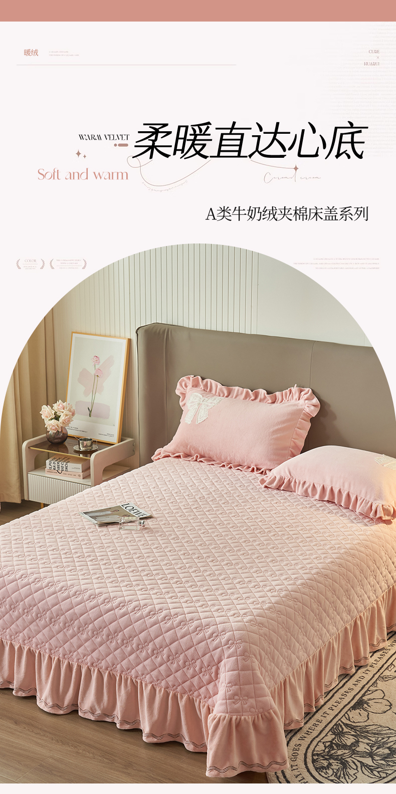 • 91家纺网 家纺一手货源 找家纺 2024新款A类幸福约定牛奶绒单床盖 粉色