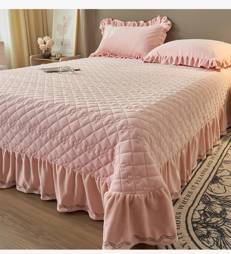 2024新款A类幸福约定牛奶绒单床盖 粉色