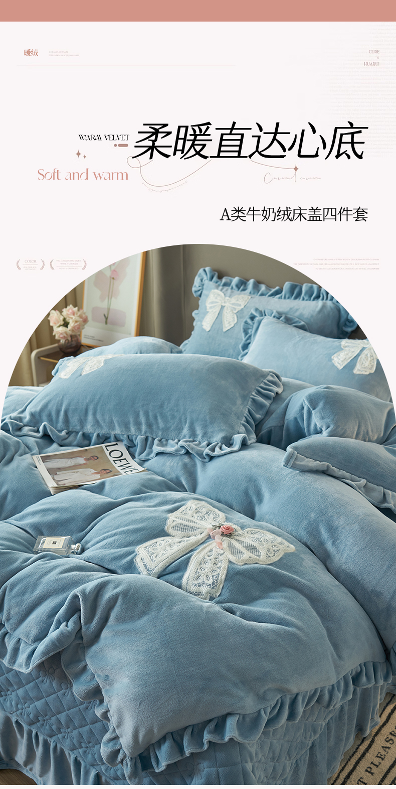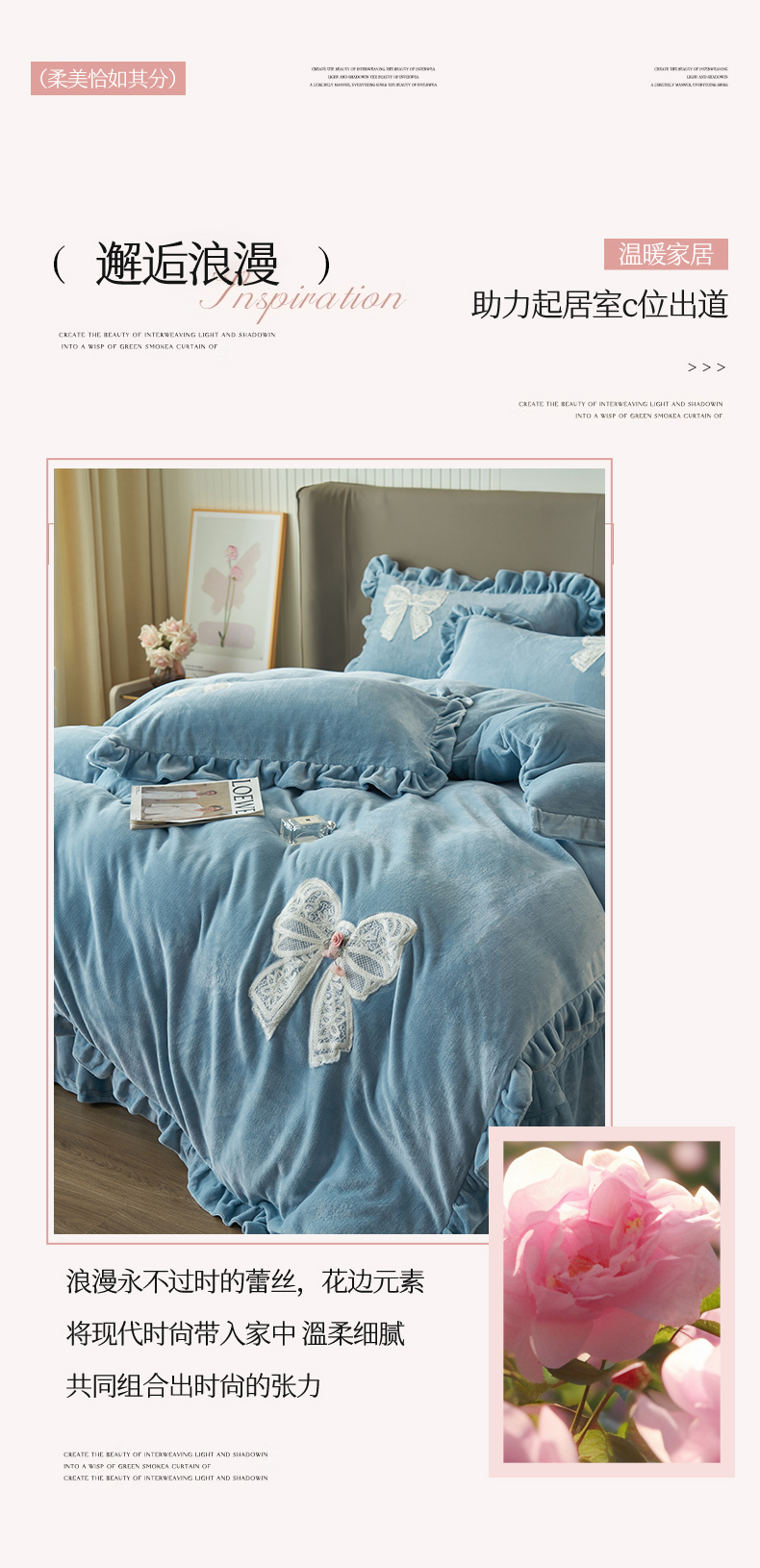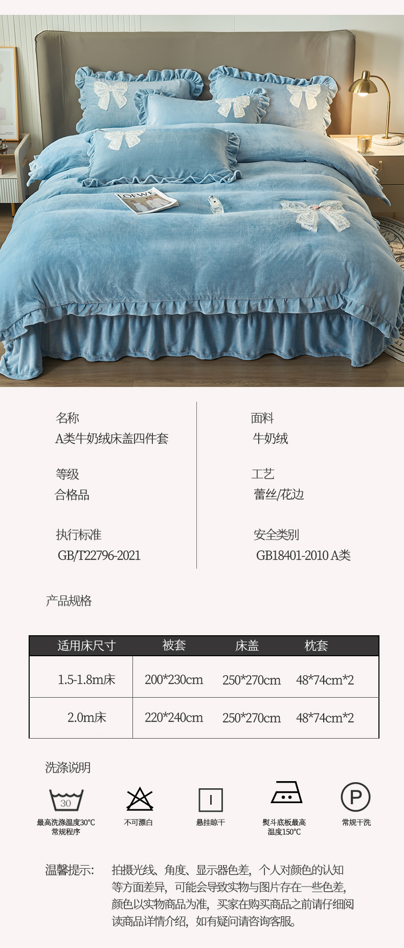 当前位置: 91家纺网 > 商品网购 > 床品套件 > 四件套 > 牛奶绒四件套 > 2024新款A类幸福约定牛奶绒四件套 浅灰蓝