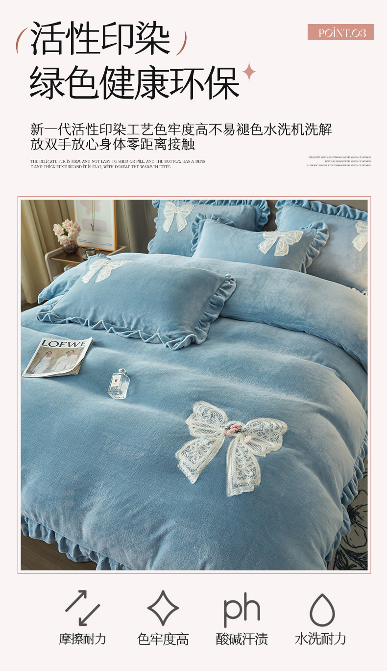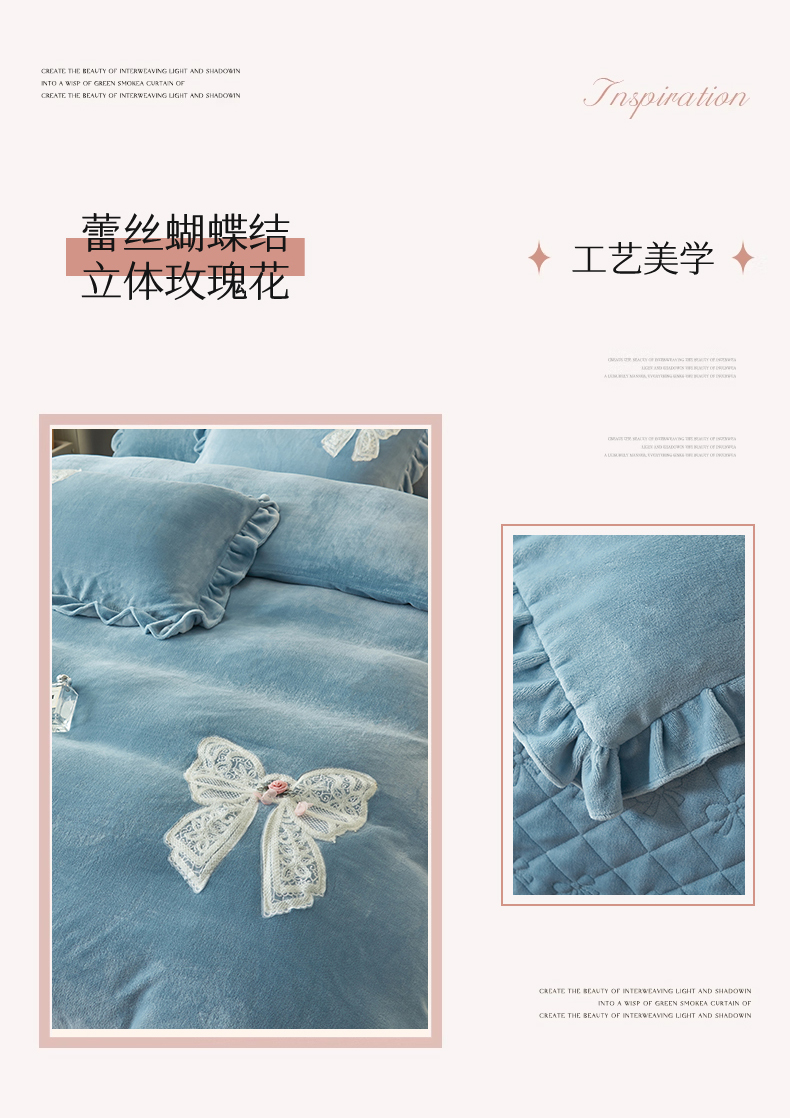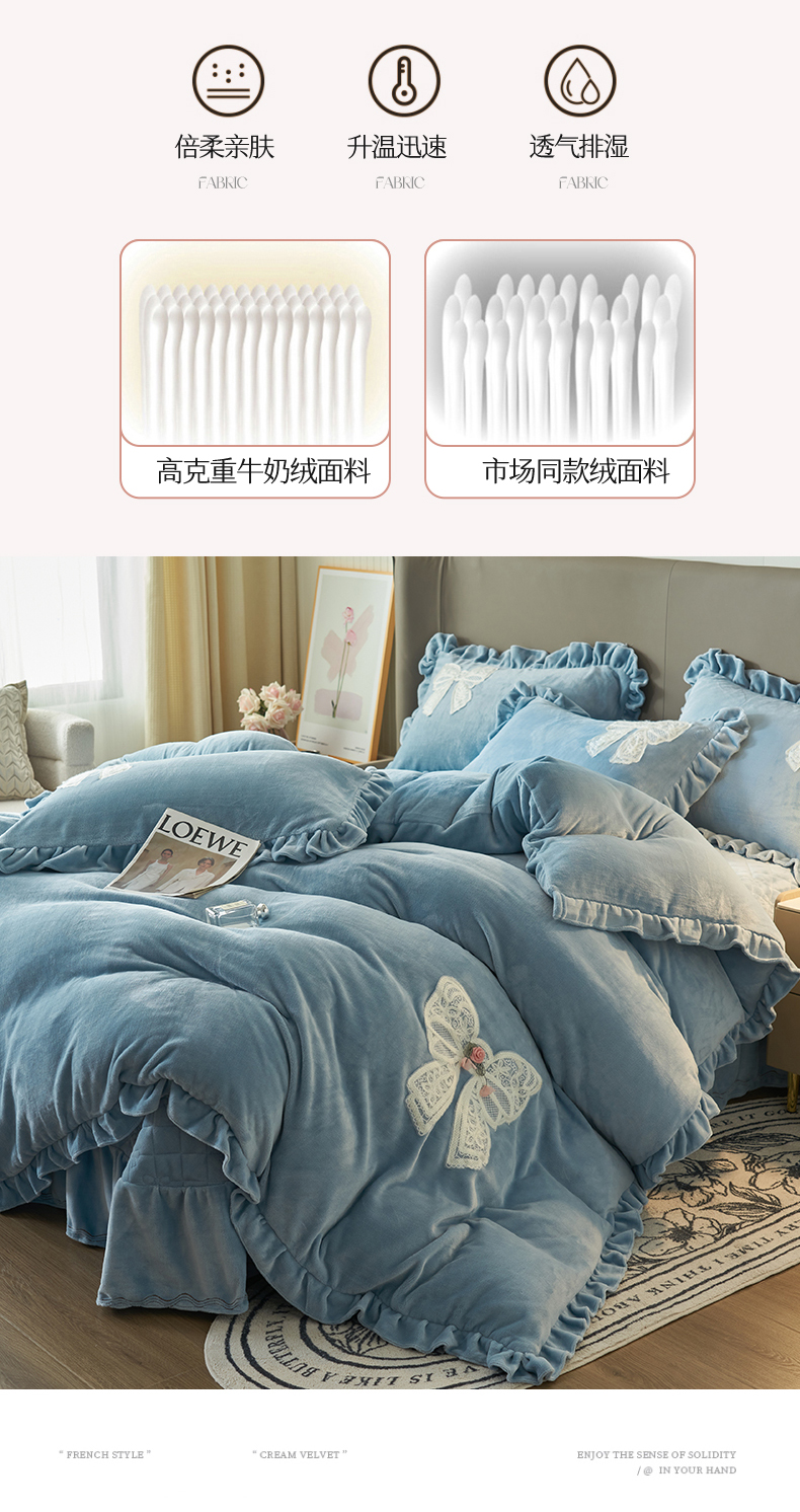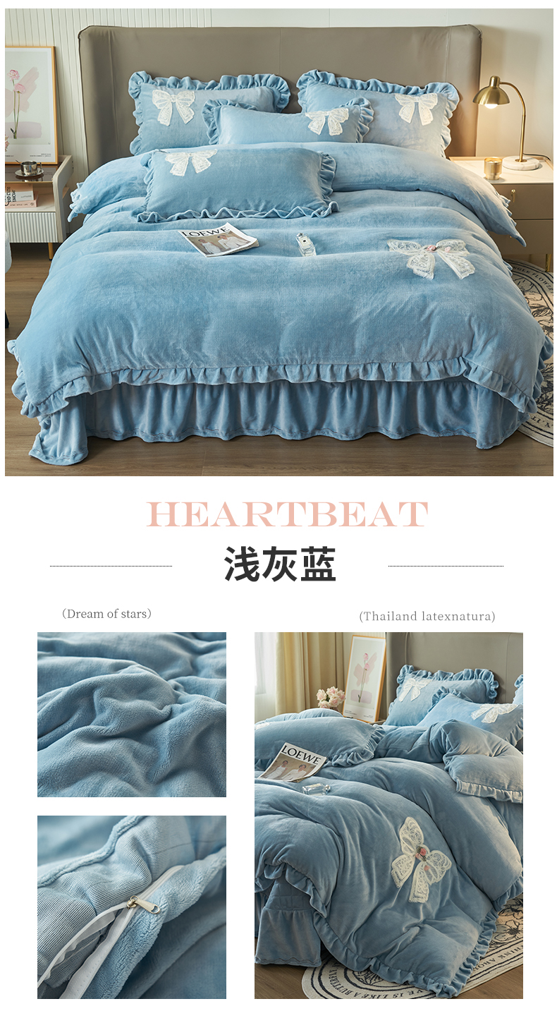当前位置: 91家纺网 > 商品网购 > 床品套件 > 四件套 > 牛奶绒四件套 > 2024新款A类幸福约定牛奶绒四件套 浅灰蓝