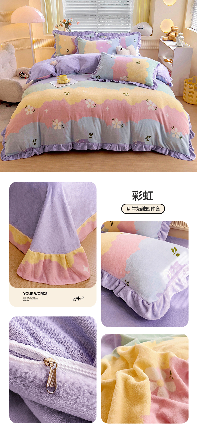 找底底家纺 2024新款牛奶绒印花四件套 彩虹