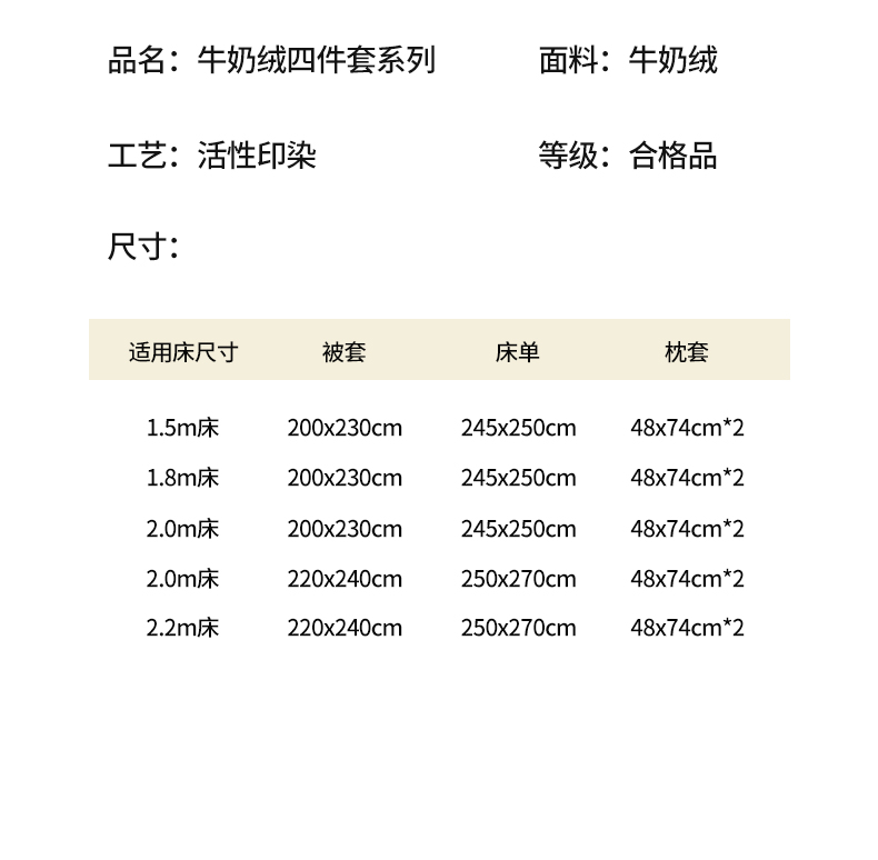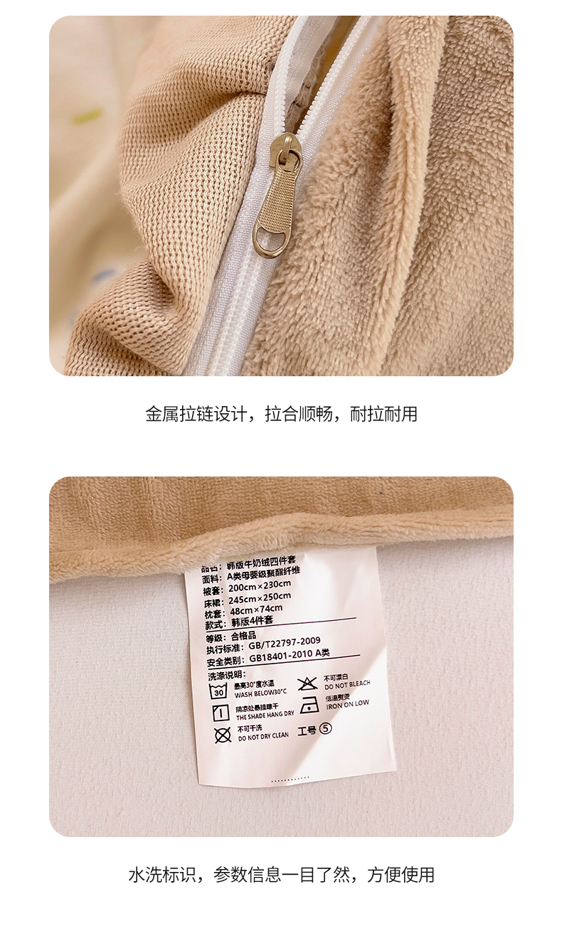 商品名称:找底底家纺 2024新款牛奶绒印花四件套 曲奇饼干