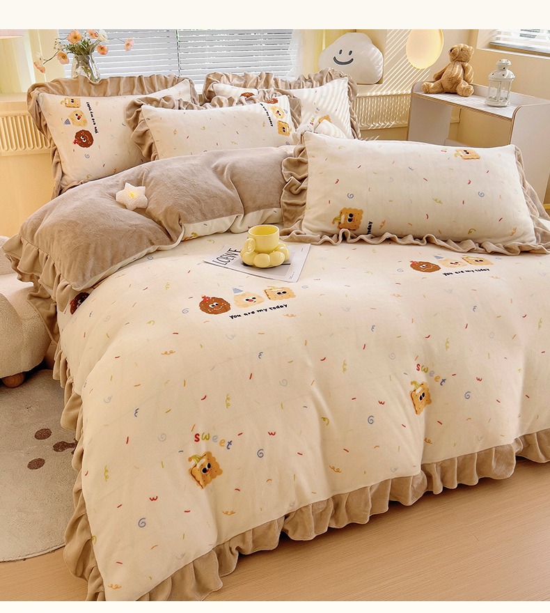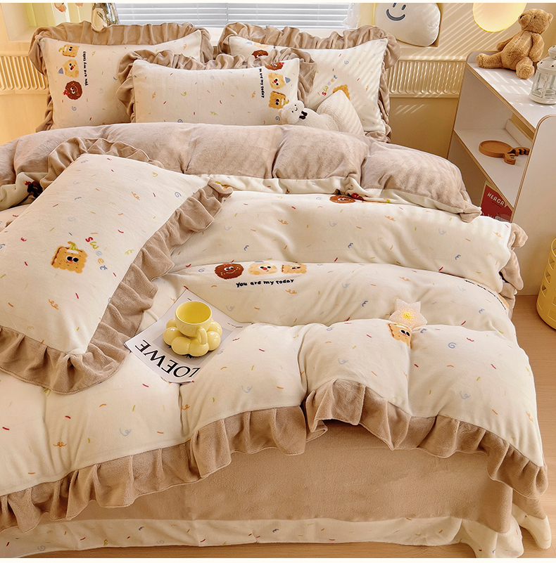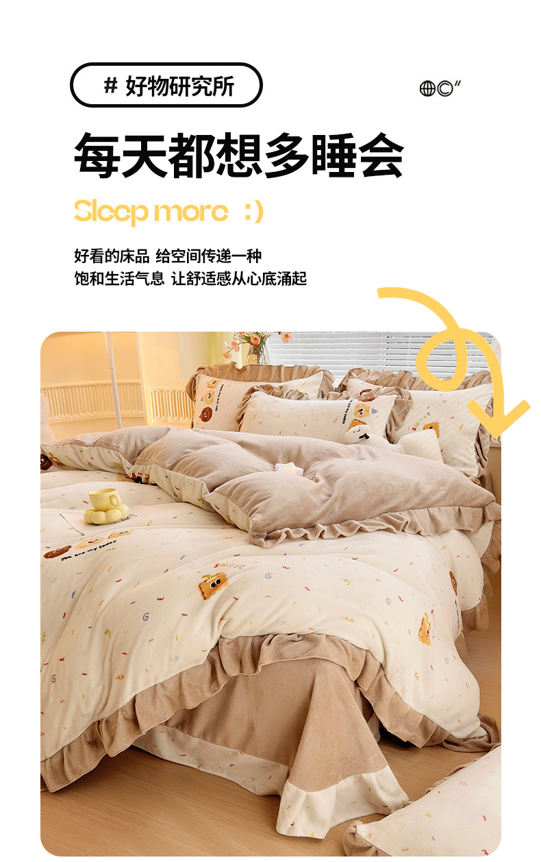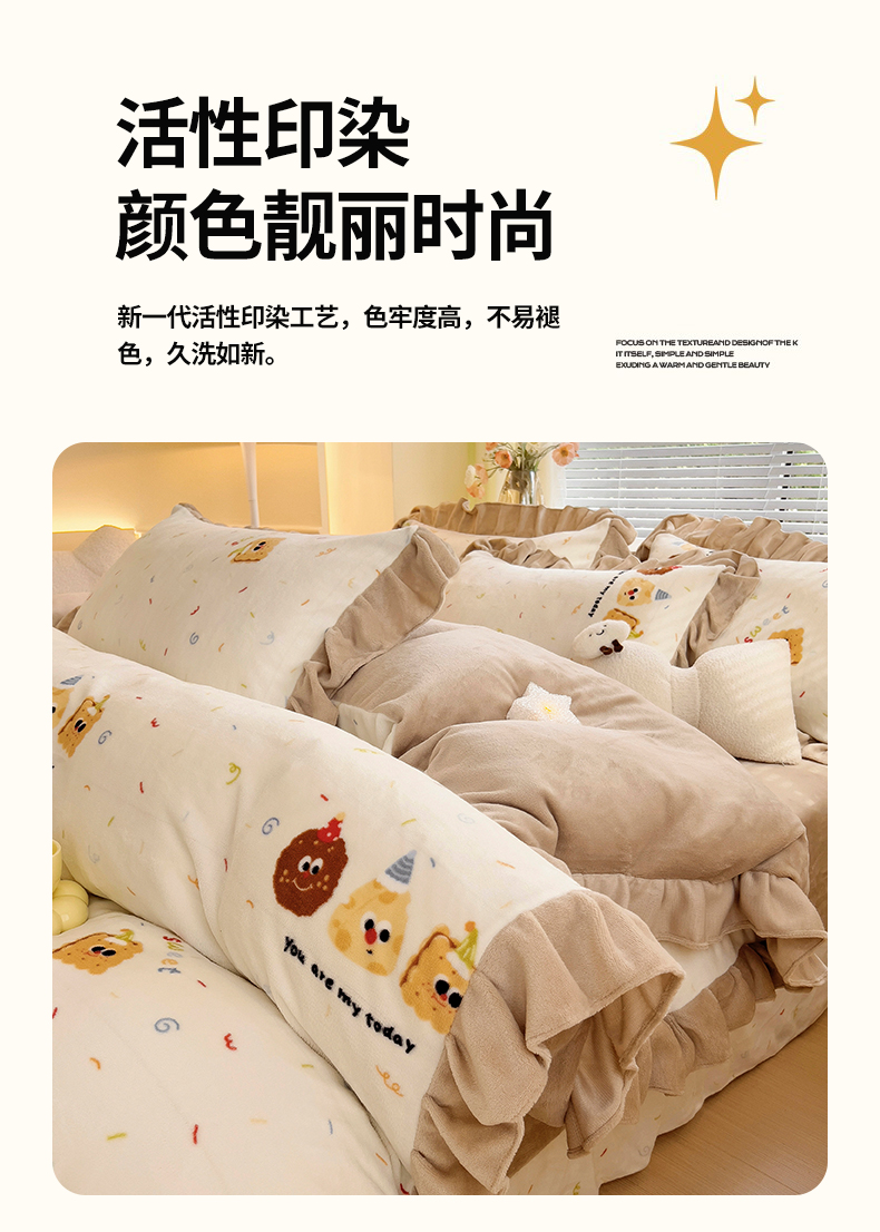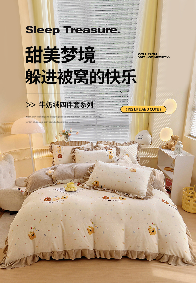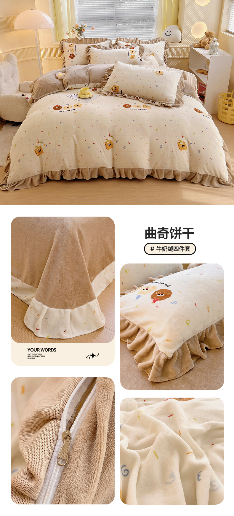 找底底家纺 2024新款牛奶绒印花四件套 曲奇饼干