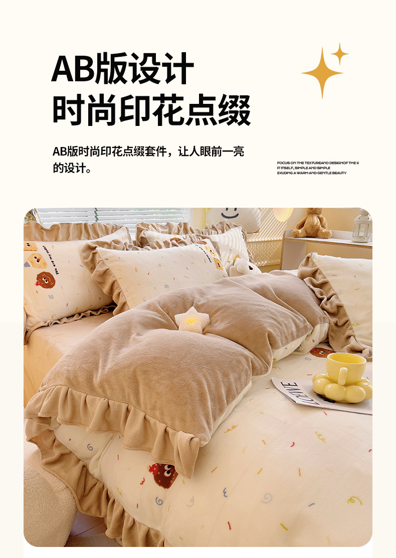 (总)找底底家纺 2025新款加厚床盖款双面绒A类印花款牛奶绒四件套(日销50单客户,在优惠5元),草莓熊,花妖,焦糖布丁熊,梨花落,奶糖小镇,巧克力布丁,圣诞派对,红格苹果猫,小樱桃,紫蔻