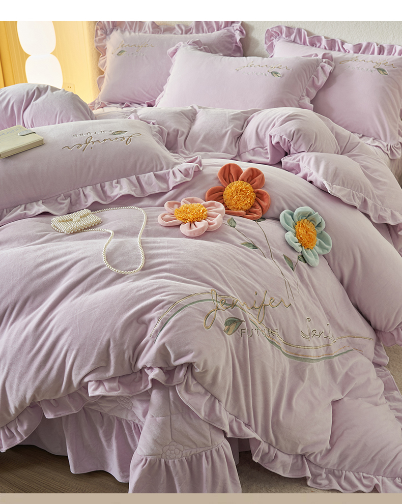 2024新款向阳花开宝宝绒刺绣四件套 温馨紫