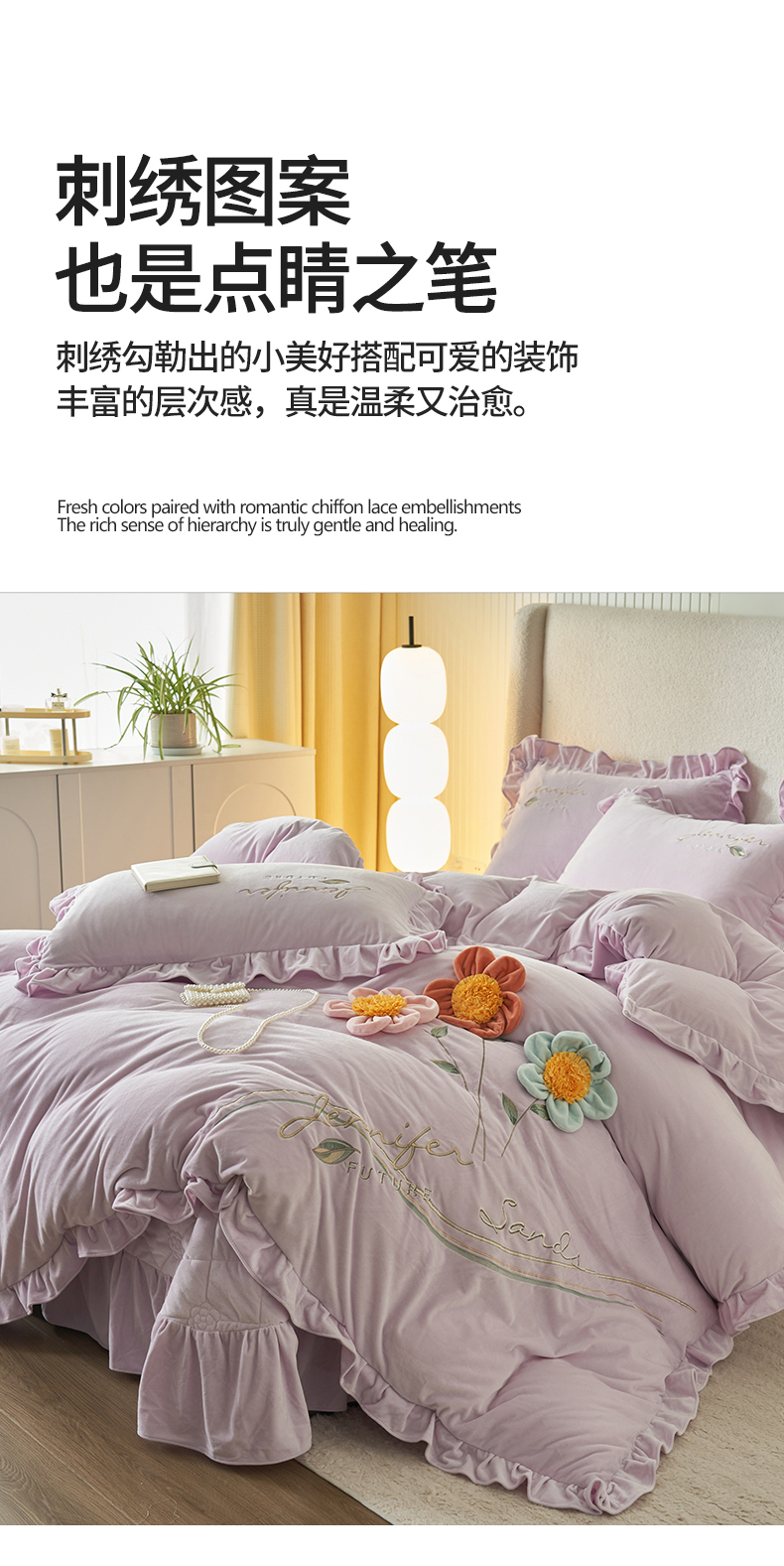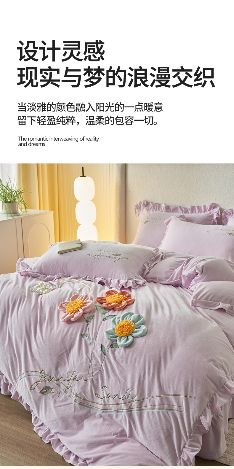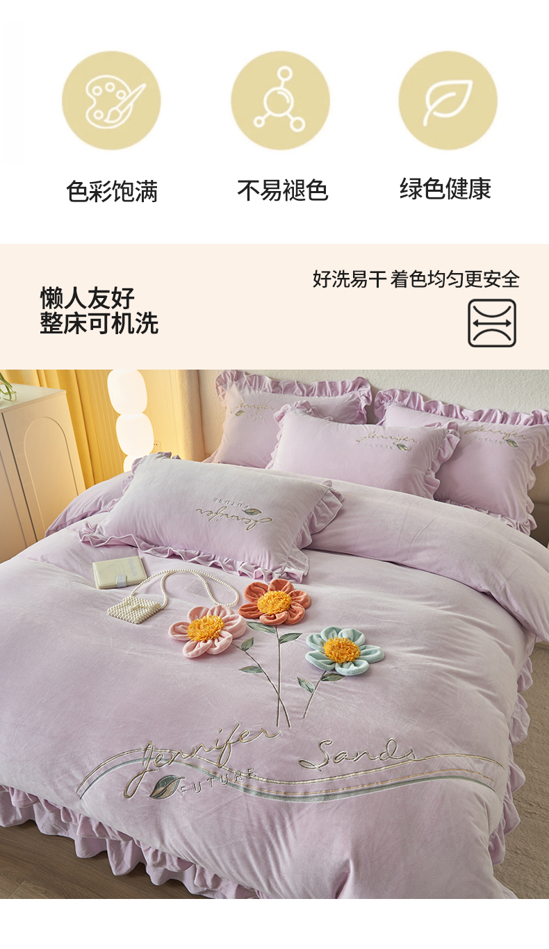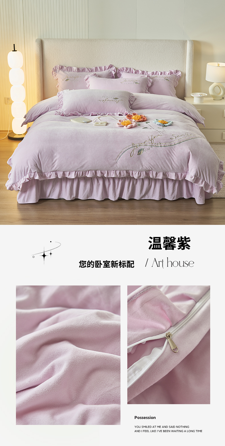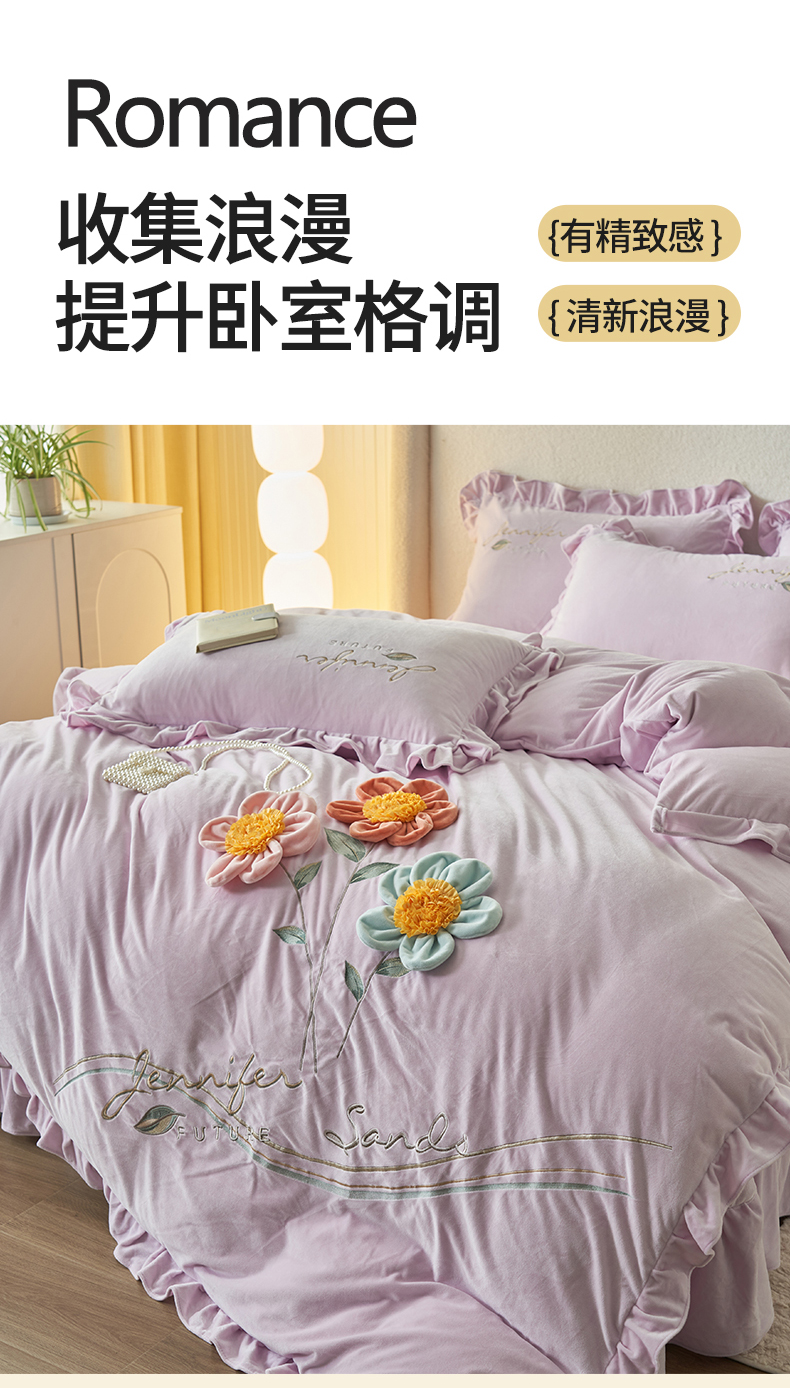 商品名称:2024新款向阳花开宝宝绒刺绣四件套 温馨紫