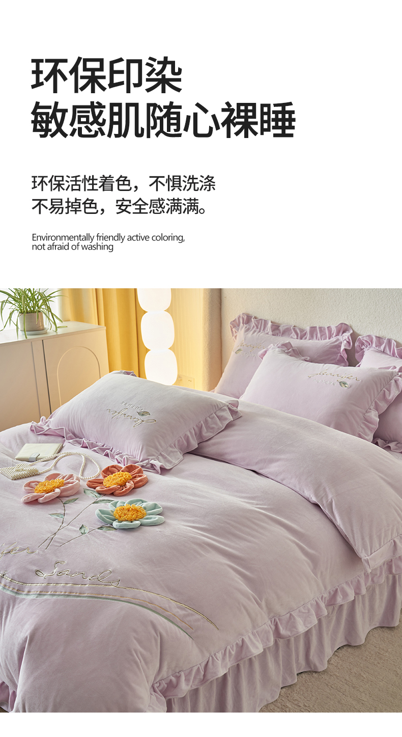 (总)恒爱 2022秋冬水晶绒翩翩花舞夹棉床裙四件套,大红色,豆沙红,橄榄绿,公主粉,桔色,咖啡色,孔雀绿,拉菲红,罗兰紫,玫红色,美人玉,米白色,米驼色,抹茶绿,浅灰色,紫色