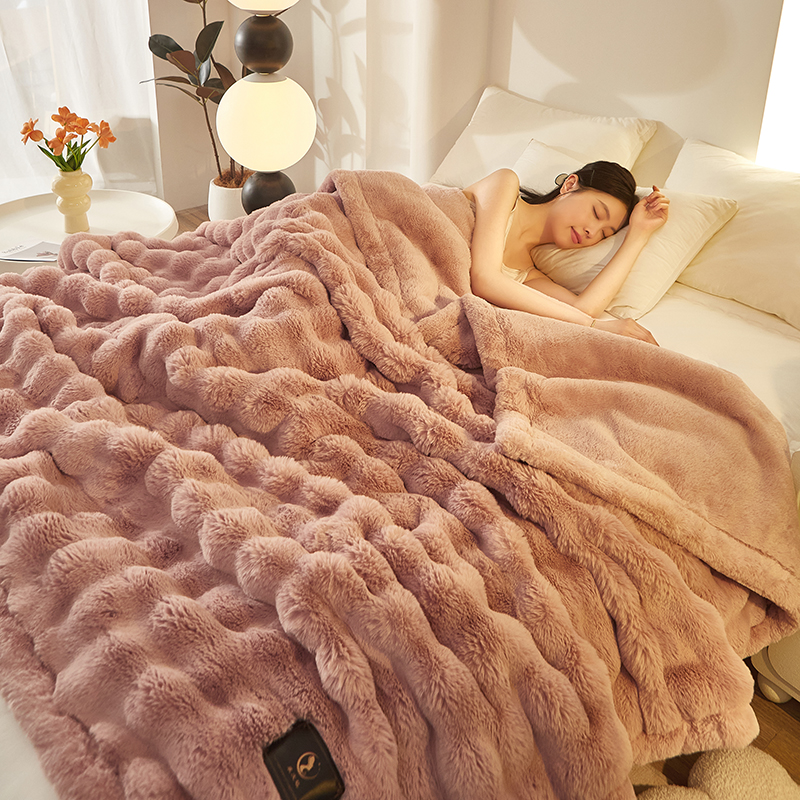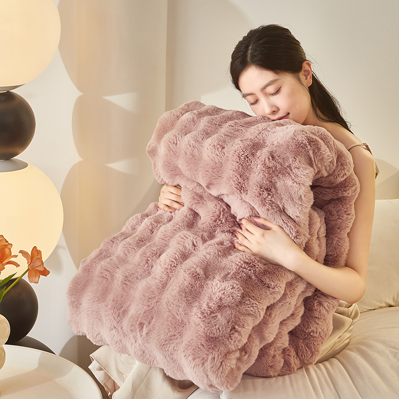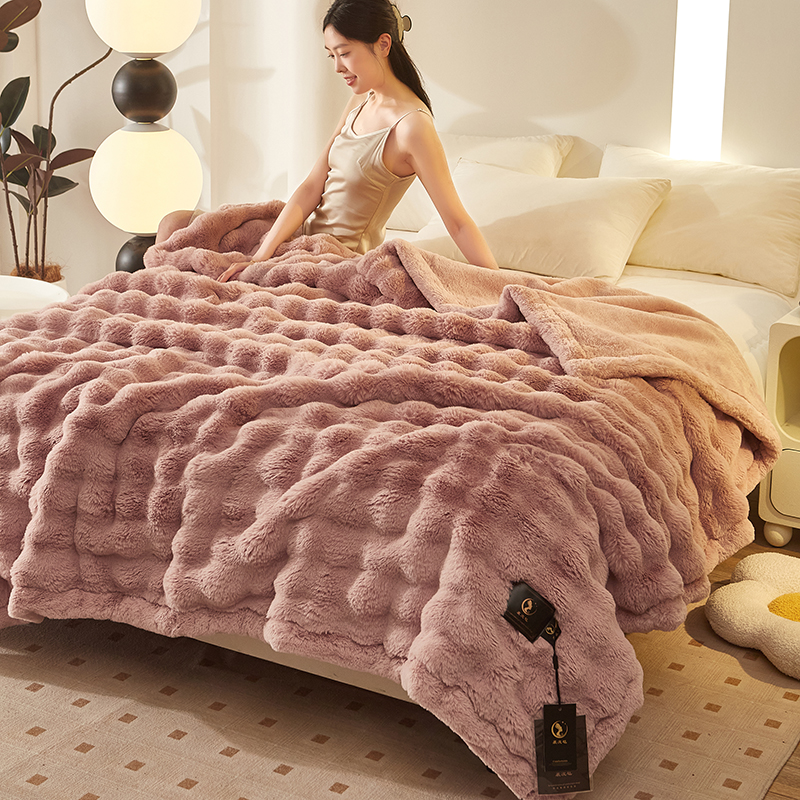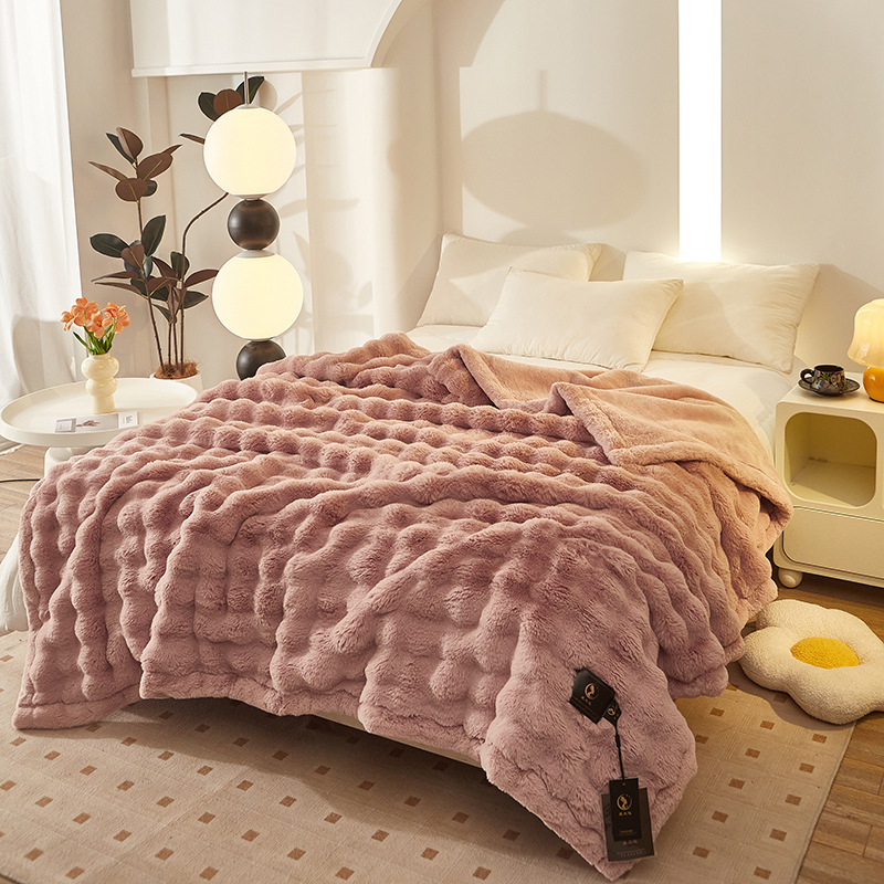 尚品凤凰 2025新款亲肤舒适加厚保暖貂绒兔毛泡泡毛毯 泡泡-樱花粉