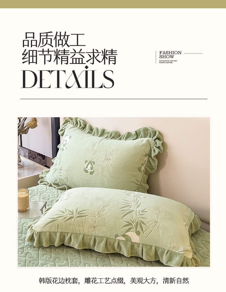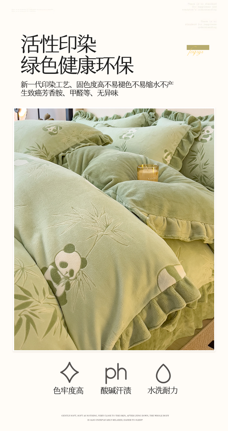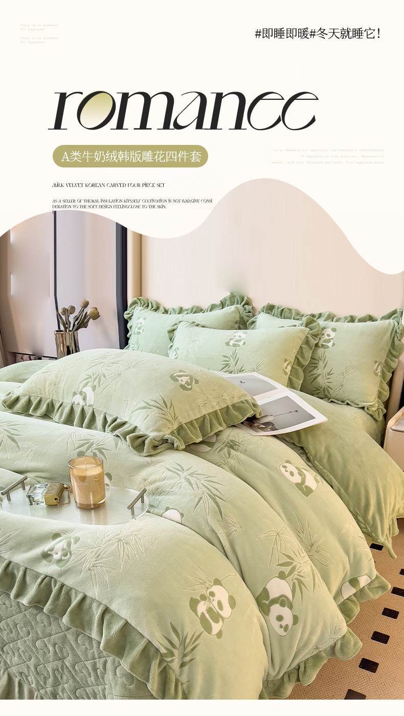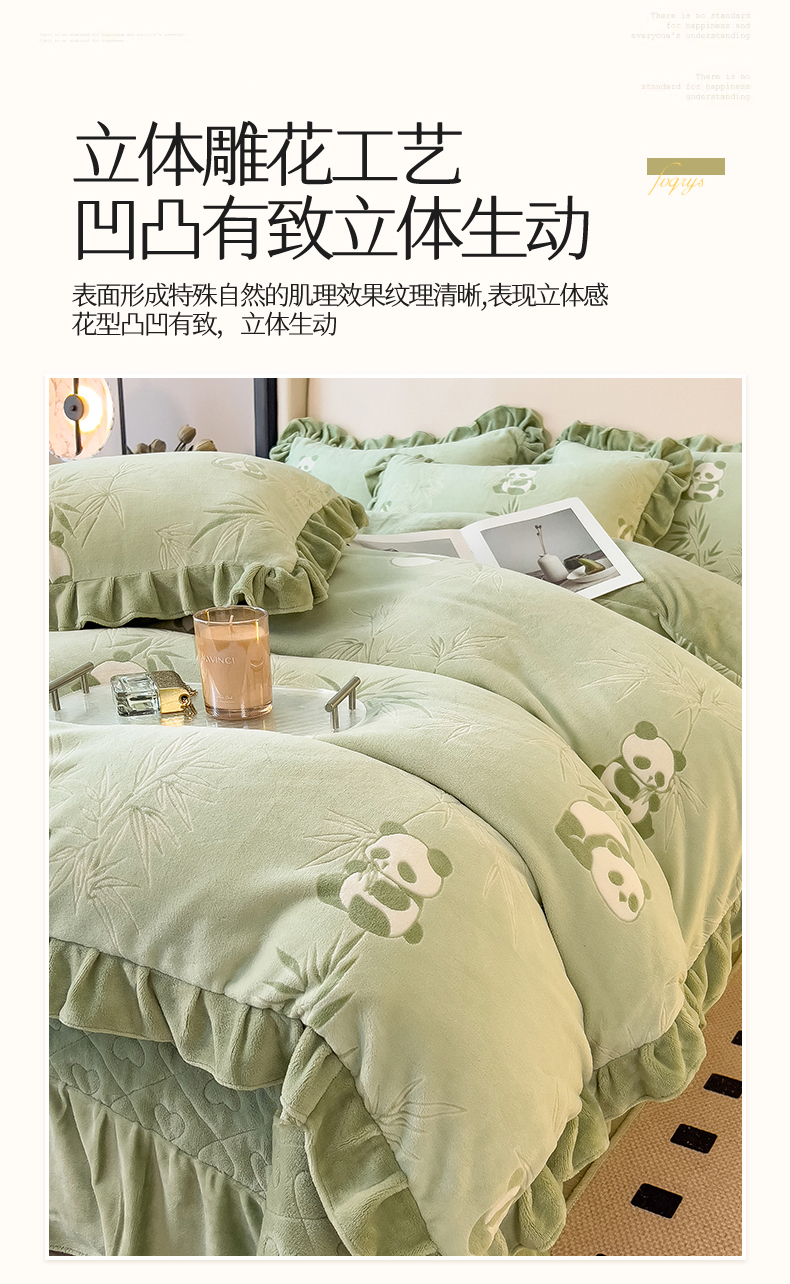 商品名称:2024新品A类牛奶绒韩版雕花四件套 熊猫-绿