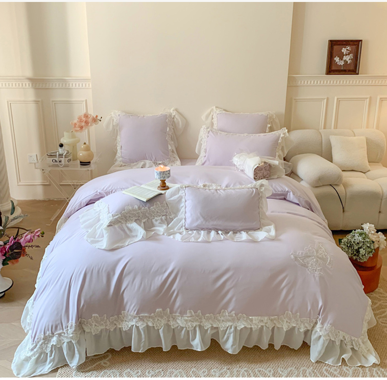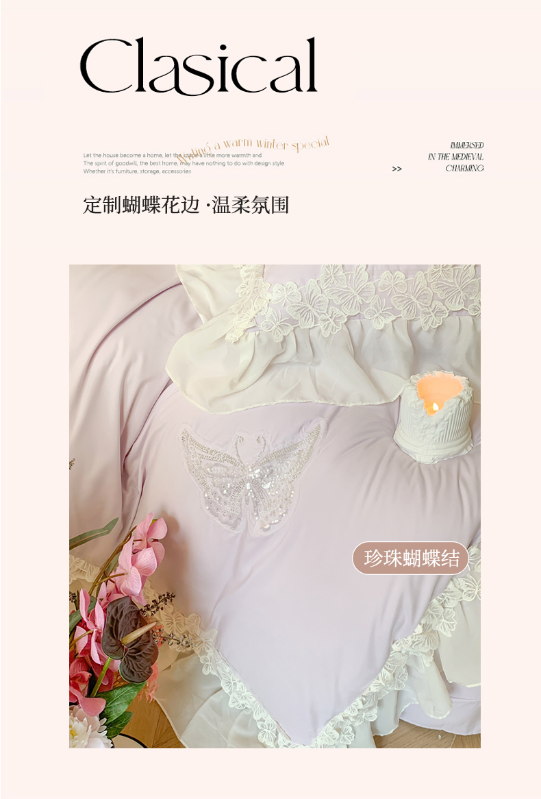 商品名称:吾欢心 2025新款糯小棉立体蝴蝶花边四件套-蝶恋花系列 蝶恋花紫
